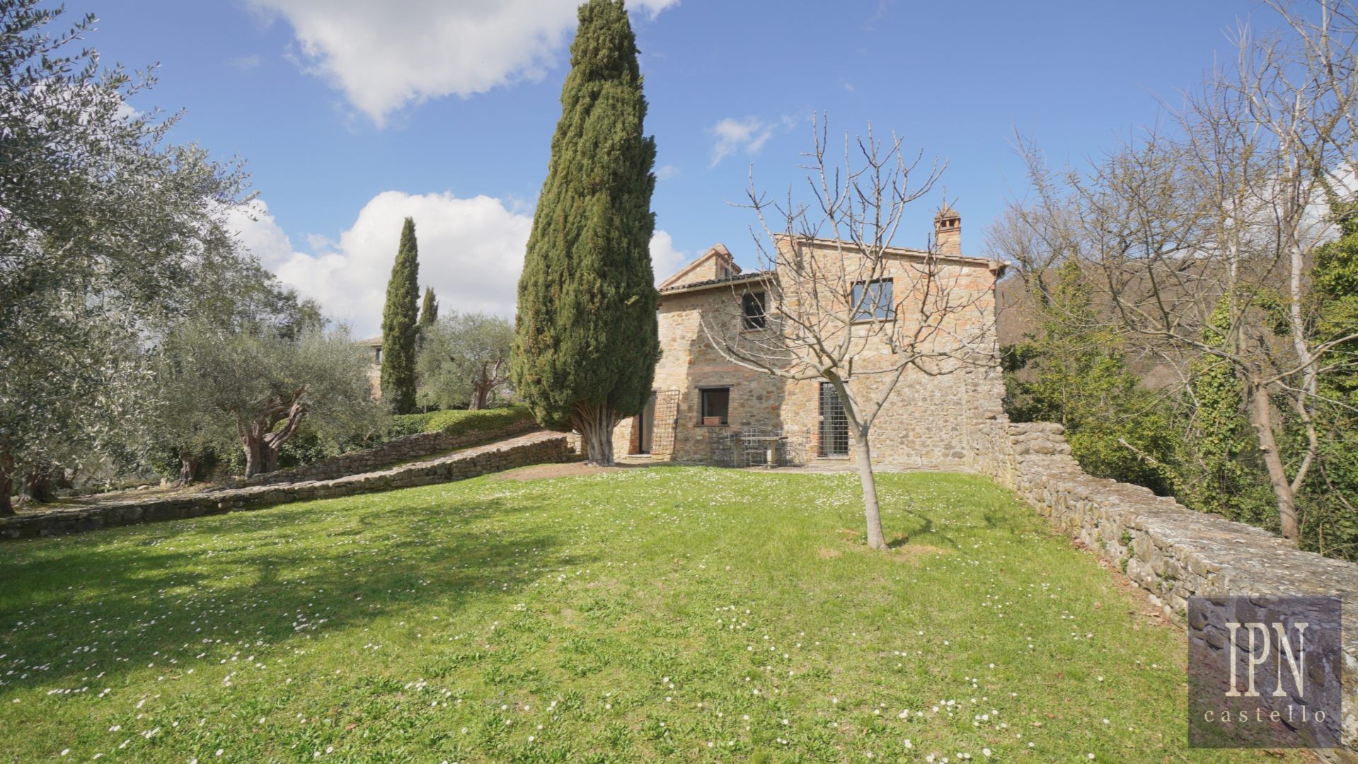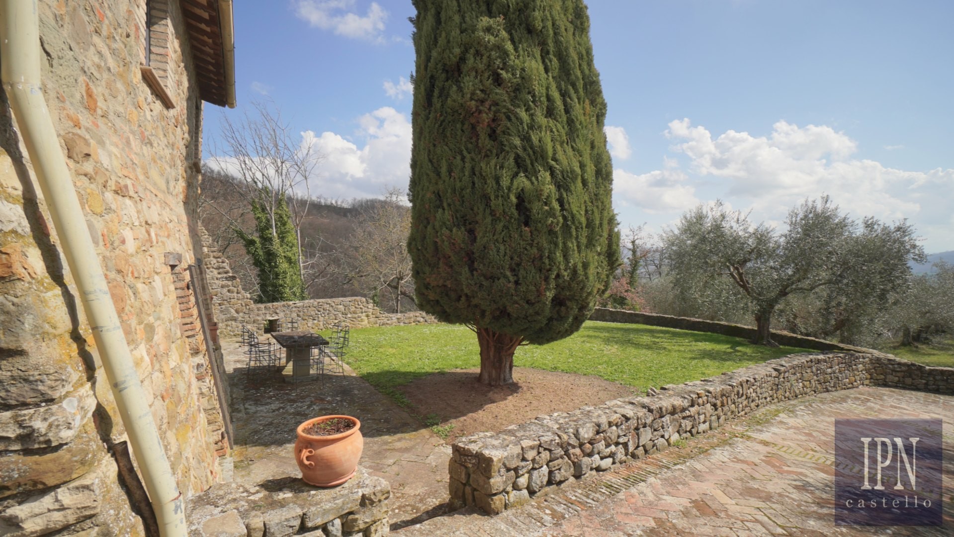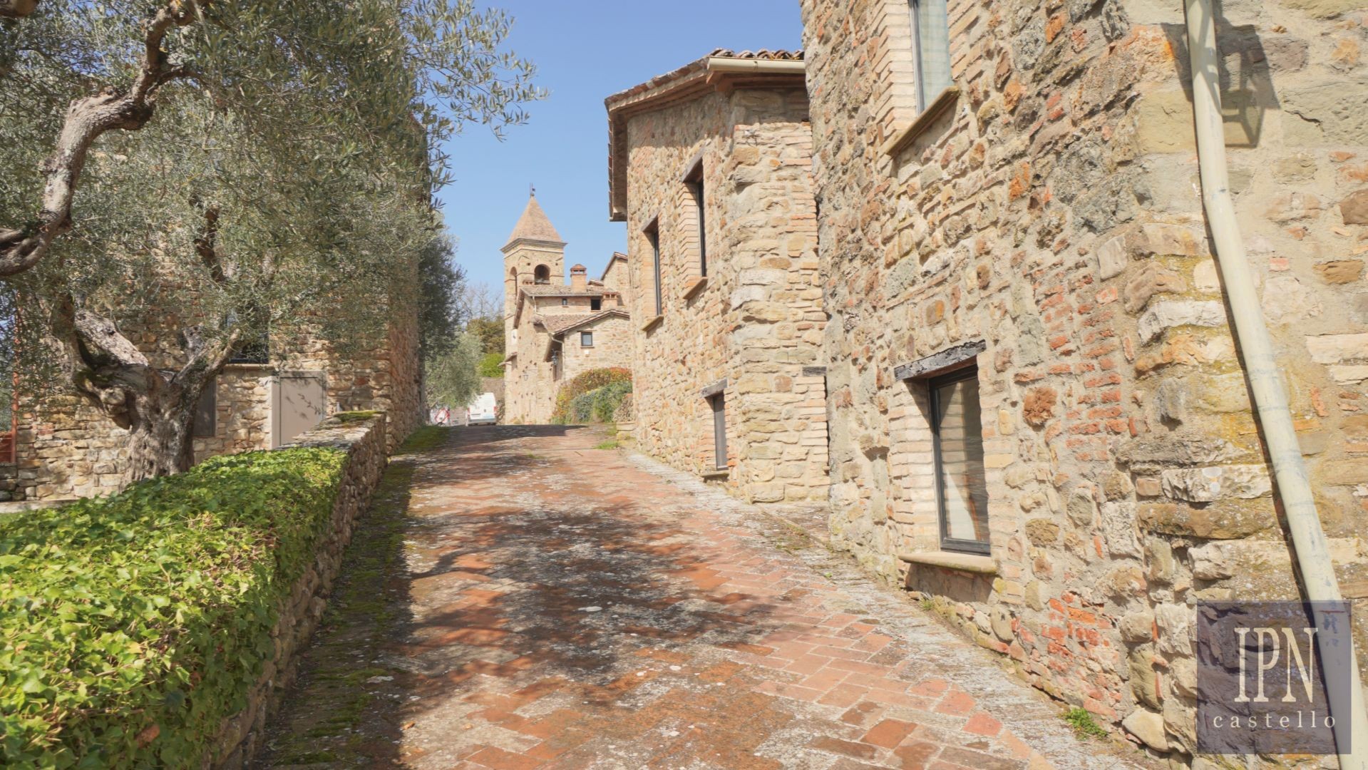 Dom dysponuje również dwoma prywatnymi przestrzeniami zewnętrznymi: ogrodem z przodu oraz drugim ogrodem z tyłu, z bezpośrednim dostępem do odrestaurowanego kościoła. Dodatkowo mieszkańcy mają dostęp do wspólnego basenu i kortu tenisowego w obrębie borgo.