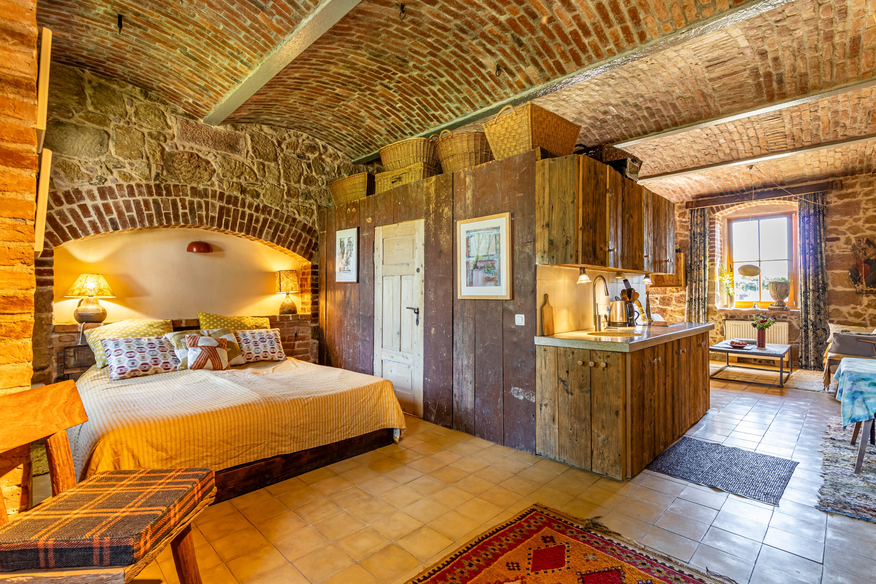 Pieczołowicie odnowiony zajazd z XVIII w. urządzony w stylu rustykalnym – z prywatnym salonem, klimatyczną kuchnią, tarasem i stylową sypialnią z ponad 200 letnimi oryginalnymi lustrami i kredensami. Liczy ponad 200 m² powierzchni i jest miejscem w którym każdy fan sztuki i designu od wejścia poczuje się jak Alicja w Krainie Czarów – wnętrze utrzymane w nieco eklektycznym klimacie po bliższym przyjrzeniu powala swoją spójnością i dopracowaniem.