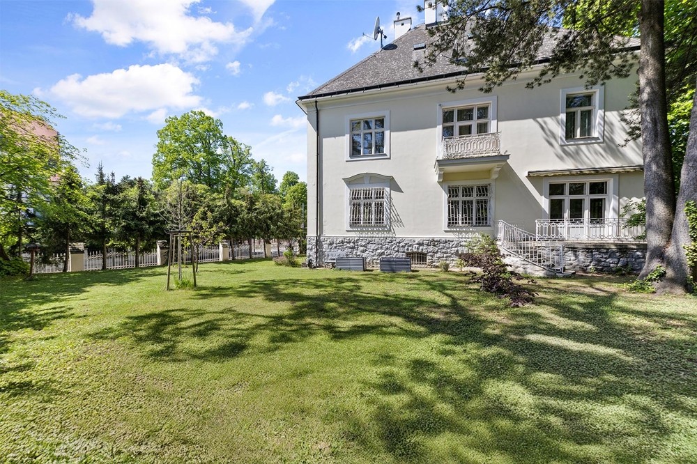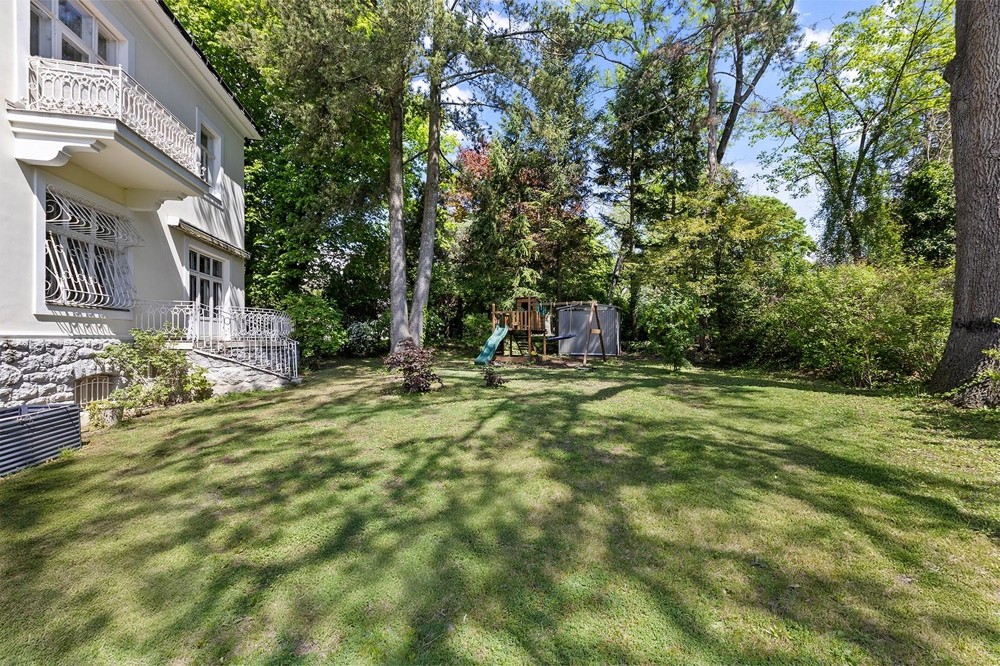 Ogród w stylu parkowym z dojrzałymi drzewami zapewnia miejsce do relaksu w absolutnej ciszy. Przestronność działki jest rzadko spotykana w Wiedniu. Nieruchomość obejmuje także pełną piwnicę oraz garaż na dwa pojazdy.
