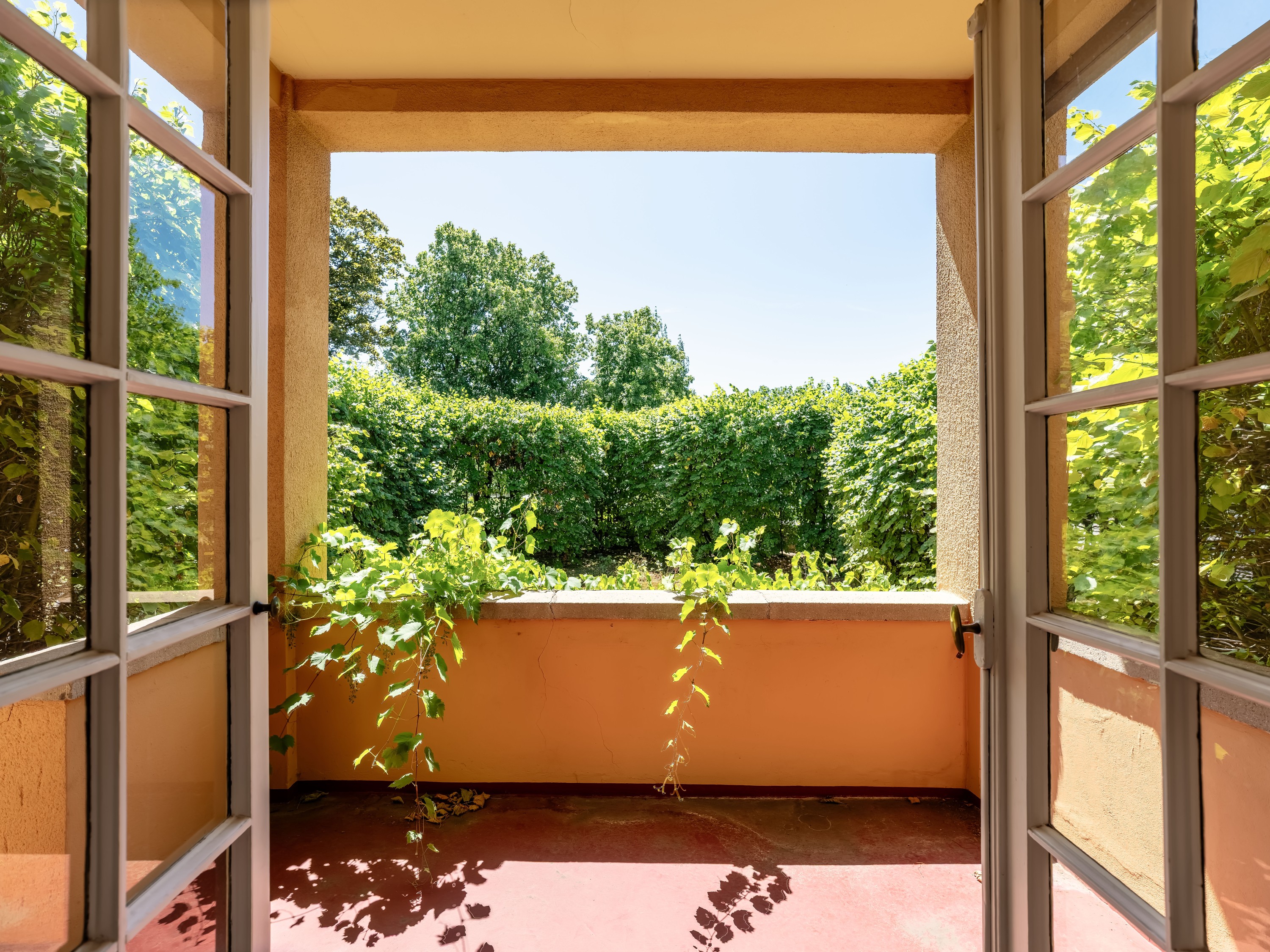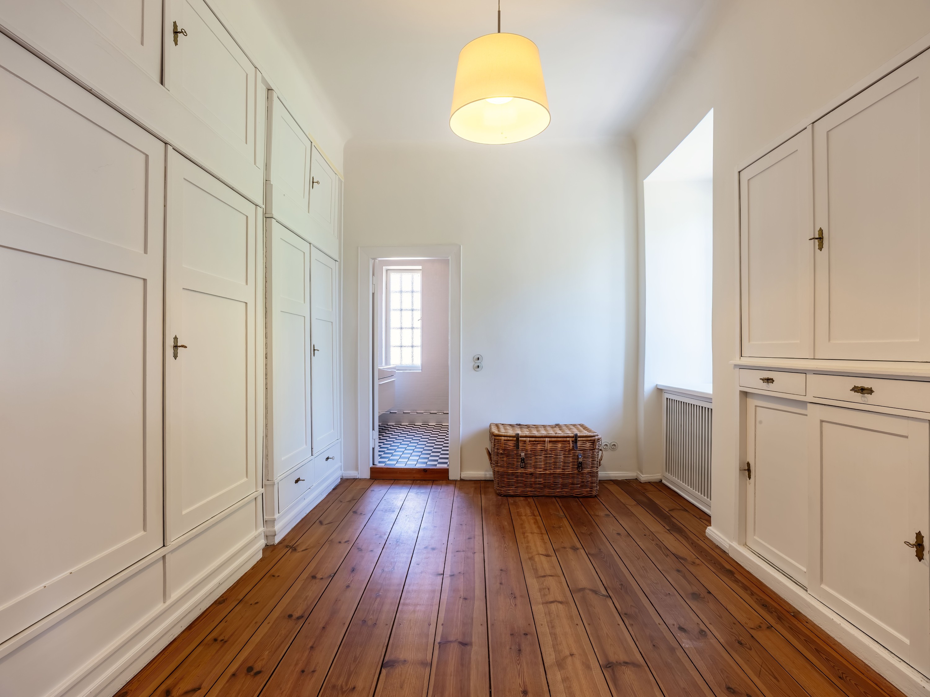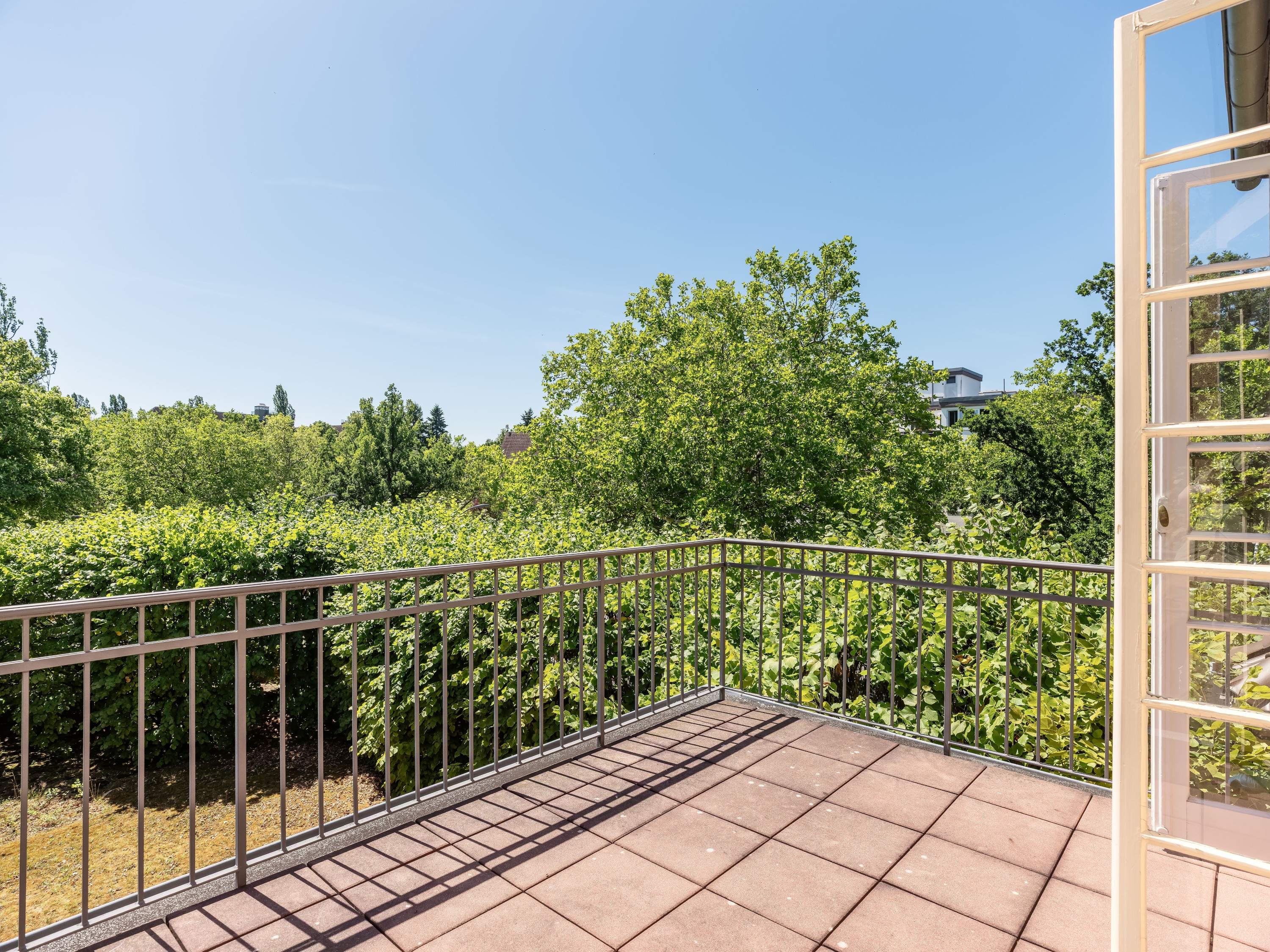 Wyjątkowym atutem nieruchomości jest mieszkanie dla gości z osobnym wejściem. Dziedziniec oferuje miejsce na cztery miejsca parkingowe oraz podwójny garaż. Chroniony ogród, z piękną podwójną pergolą z lipami skierowaną na południe, został uwieczniony w książce o historycznych ogrodach Berlina.