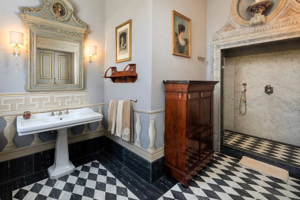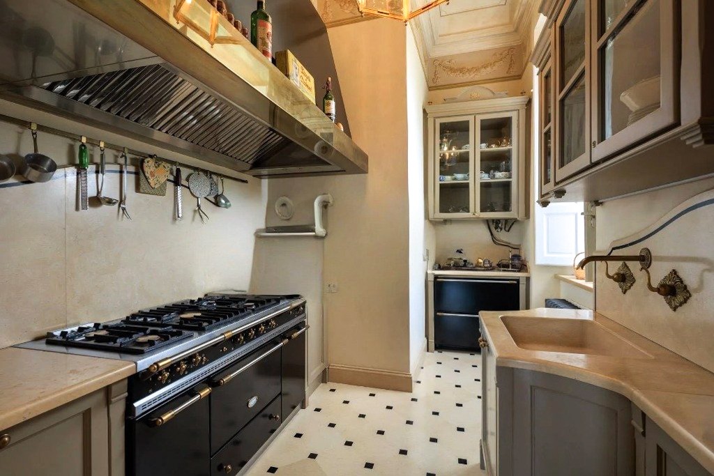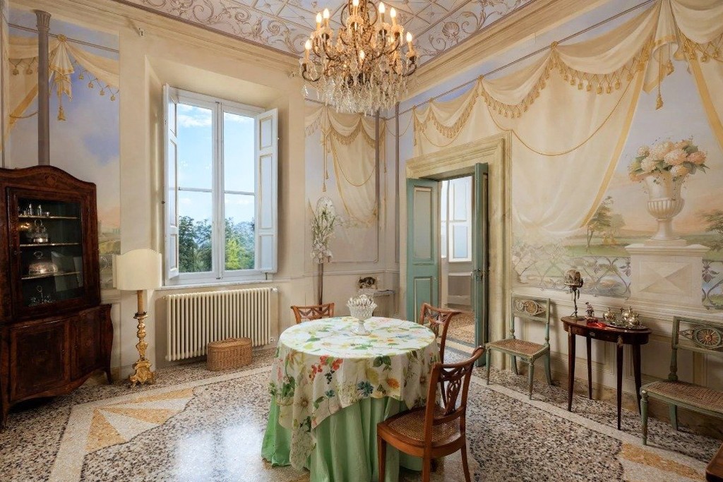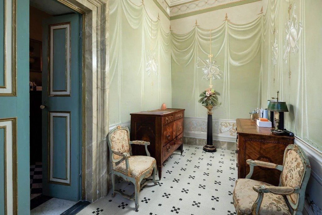 Na parterze w całości zachowano historyczny układ pomieszczeń; przestrzenie gospodarcze i kuchenne zostały odrestaurowane z poszanowaniem ich pierwotnego charakteru. Piano nobile obejmuje ciąg pomieszczeń reprezentacyjnych, salony zdobione freskami, sypialnie oraz prywatne przestrzenie mieszkalne, z wysokimi sufitami, historycznymi detalami i dużą ilością naturalnego światła.