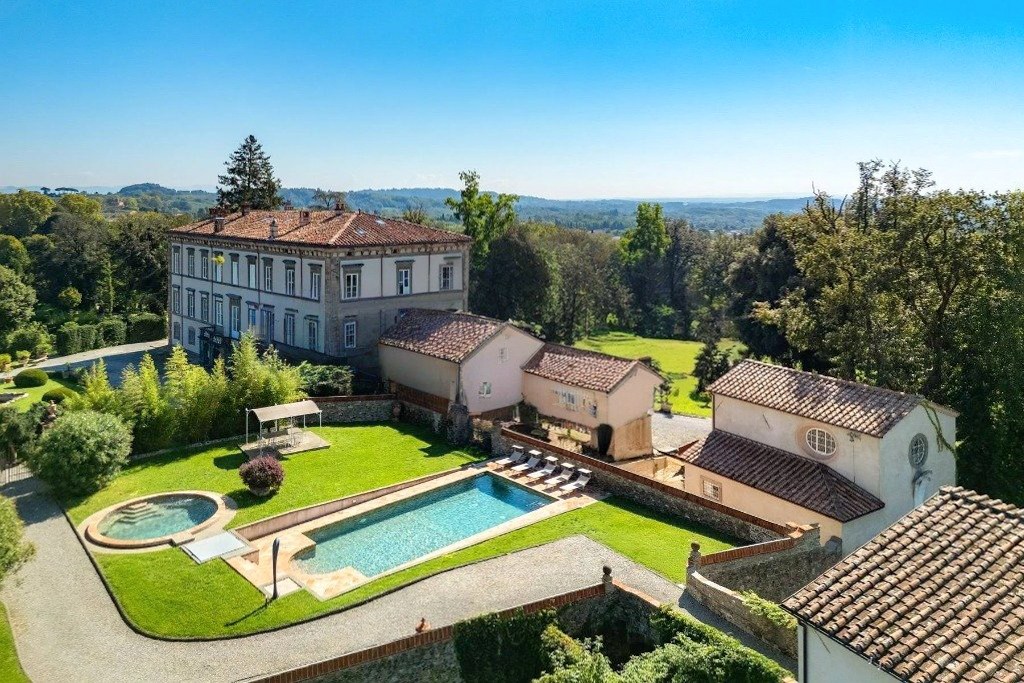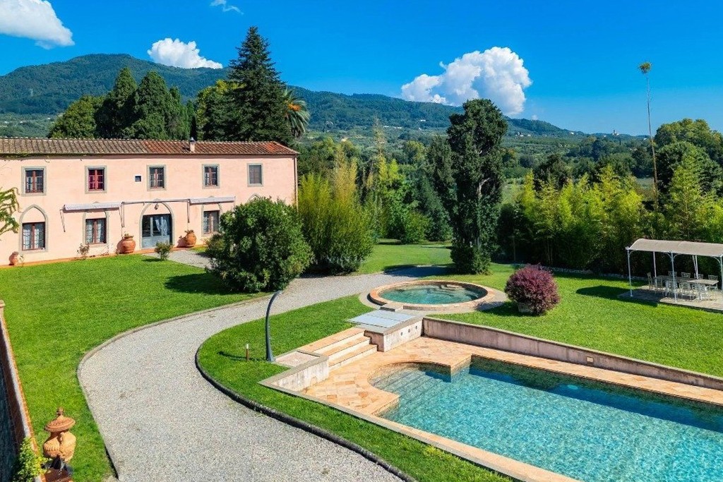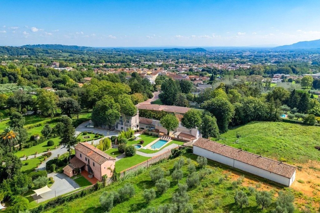 Powyżej Lukki Toskania staje się spokojniejsza i bardziej autentyczna. Widoki sięgają daleko, krajobraz jest uporządkowany, a cisza nie stanowi jedynie dekoracji. Villa Teodoro sięga XVI wieku; jej najważniejszy rozwój nastąpił w XVIII wieku za czasów rodziny Orsucci. Posiadłość oferuje około 3 200 metrów kwadratowych powierzchni rozmieszczonej na kilku kondygnacjach, w otoczeniu formalnie zaprojektowanego parku o powierzchni ponad sześciu hektarów. Ogród został skomponowany z dużą starannością: żywopłoty z bukszpanu, żwirowe ścieżki, terakotowe rzeźby oraz przemyślane osie widokowe, które naturalnie wpisują budynek w krajobraz. Obok willi znajdują się historyczna oranżeria, dawne miejsca do prania, kaplica z XVIII wieku oraz dwa baseny panoramiczne, które dziś współtworzą charakter całego założenia.