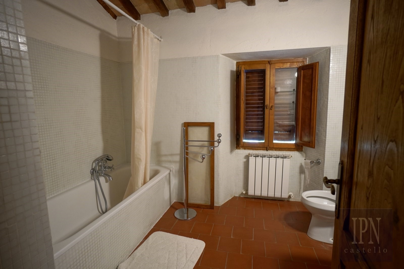 Na pierwszym piętrze znajduje się obszerna trzecia jednostka o powierzchni 155 m², dostępna zarówno przez wewnętrzne schody kamienne, jak i zewnętrzne schody prowadzące na taras. Ta jednostka oferuje przestronną część dzienną z kominkiem i oryginalną kamienną umywalką, kuchnię/jadalnię o powierzchni 38 m² połączoną z panoramicznym tarasem idealnym do letnich posiłków, trzy sypialnie (w tym jedna z łazienką en-suite) oraz dwie dodatkowe łazienki.