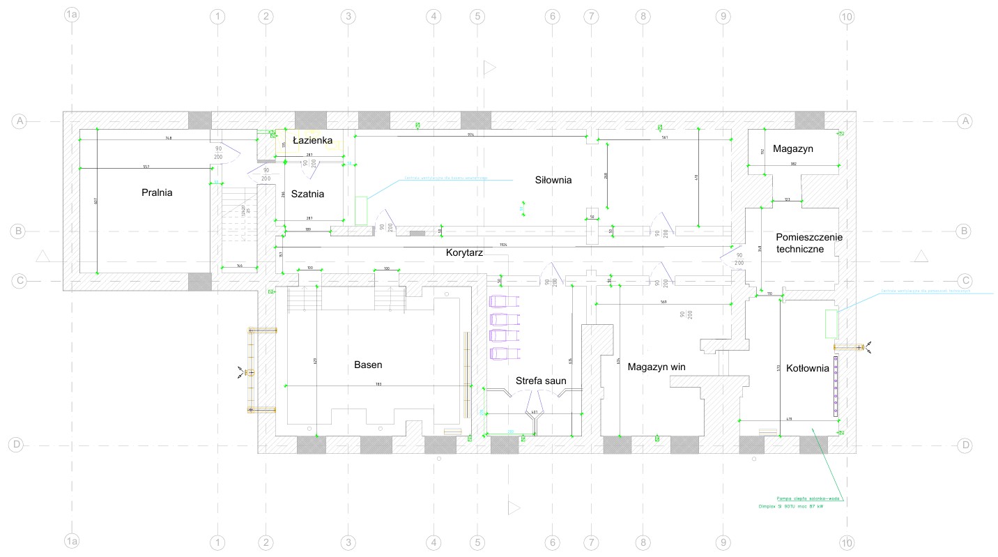 • Piwnica: strefa SPA z sauną, basenem, jacuzzi i pokojami relaksacyjnymi