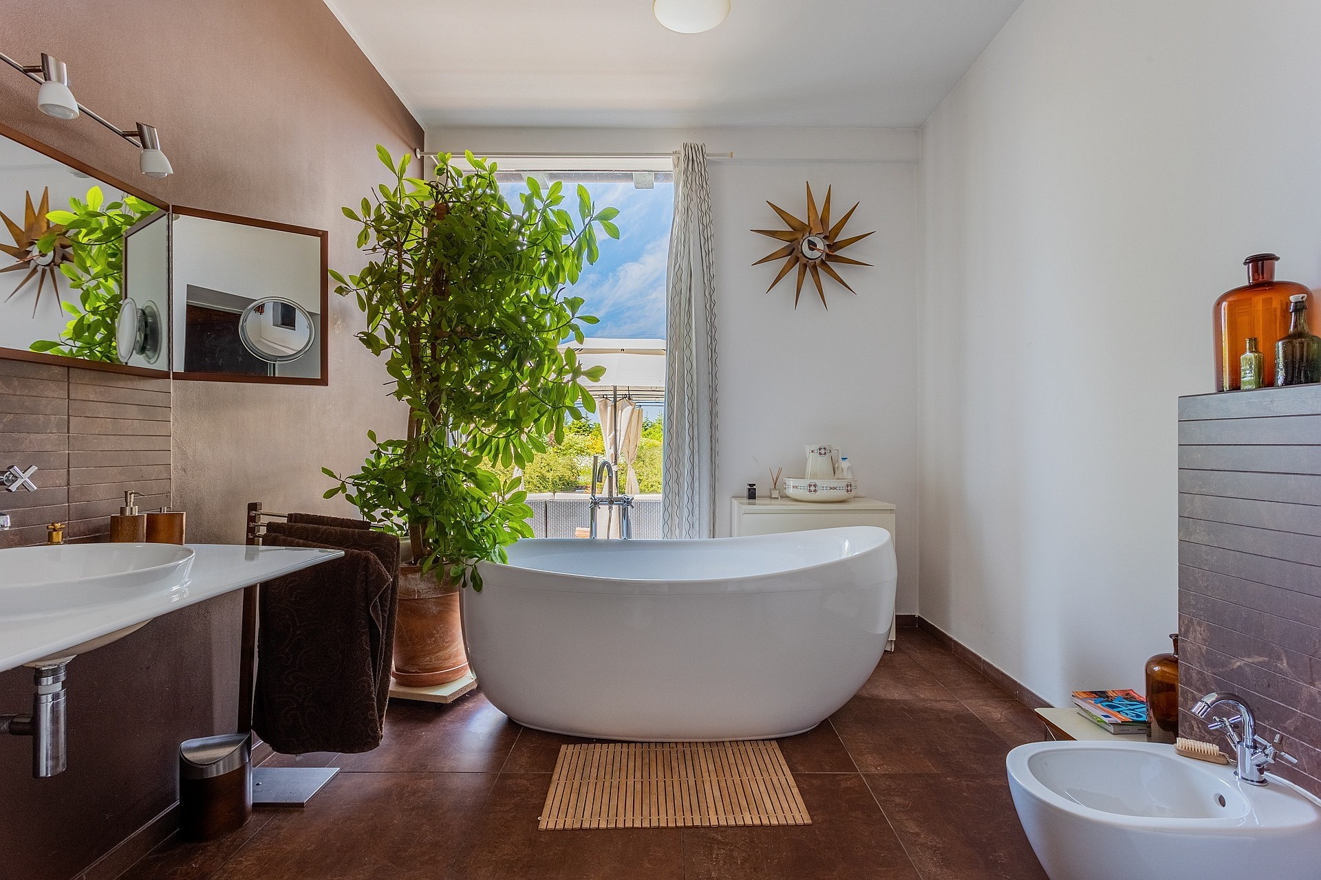 Dom główny to loft w najlepszym tego słowa znaczeniu: otwarta kuchnia z wyspą, strefa wypoczynkowa z kominkiem i dębowymi ławami oraz osobne miejsce na telewizor. Metalowe schody w stylu gdańskim prowadzą na piętro, gdzie mieści się przestronny gabinet z przeszkloną biblioteką i zapierającą dech panoramą całej zatoki. Podłoga wyłożona deskami modrzewiowymi. Z biblioteki wyjście na obszerny taras. Na parterze znajduje się główna sypialnia, niemal w całości przeszklona, z bezpośrednim wyjściem do ogrodu. Łazienka z wolnostojącą wanną w kształcie elipsy, bidetem, WC, dużą umywalką i ogrzewaniem podłogowym tworzy spójną, elegancką całość. Zachowane historyczne detale podkreślają przemysłowy charakter obiektu.