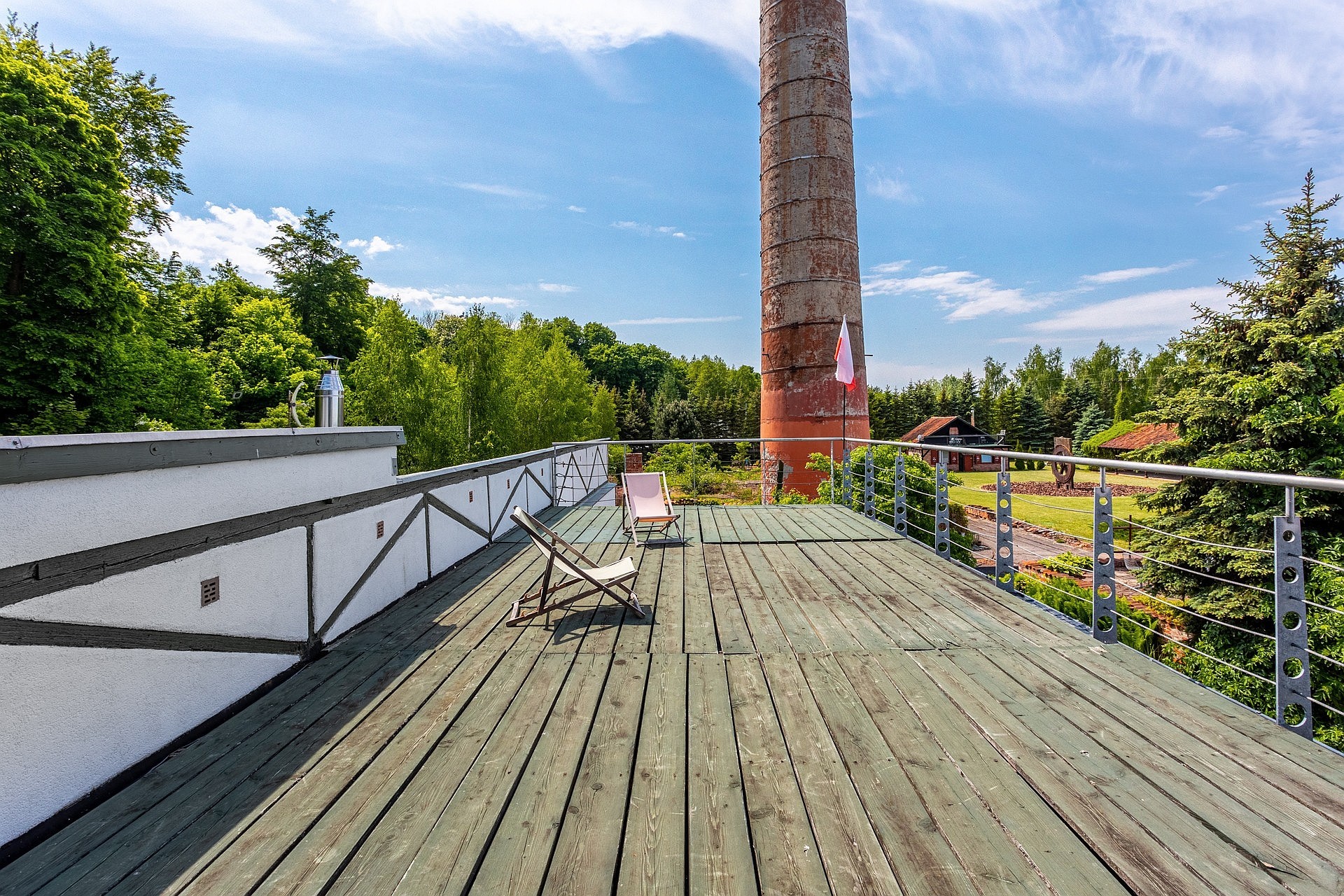 Zabytkowy kompleks dawnej cegielni, przekształcony w wyjątkowy loft oraz osobny całoroczny dom wypoczynkowy. Obiekt przeszedł gruntowną renowację i przebudowę, obecnie pełni funkcję rezydencji rodzinnej. Doskonale nadaje się zarówno na komfortowy dom rodzinny, jak i na kameralną działalność turystyczną lub siedzibę firmy. Posesja jest zagospodarowana: trawniki, krzewy, kwiaty, ogród warzywny i ogrodzony teren z żywopłotem.