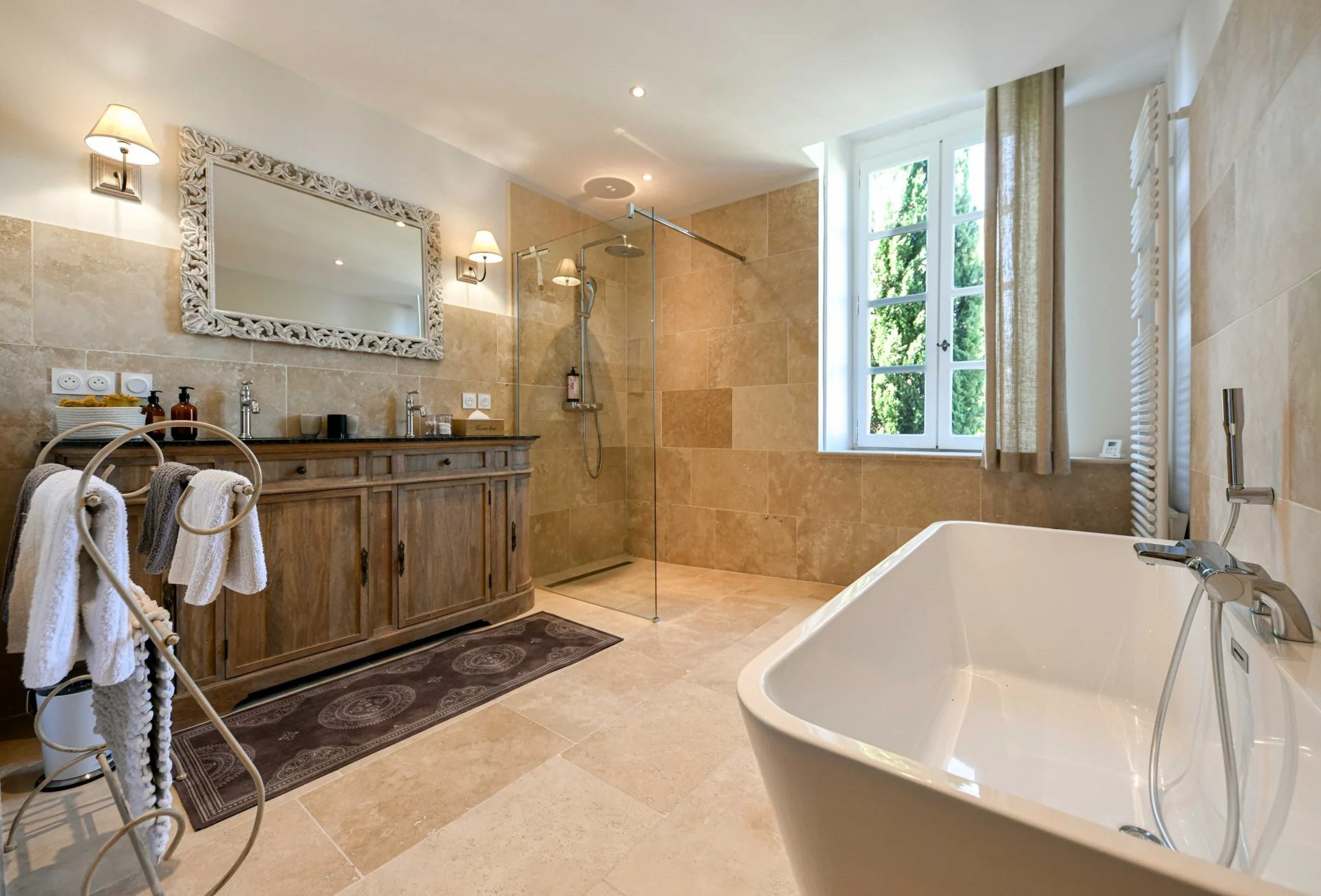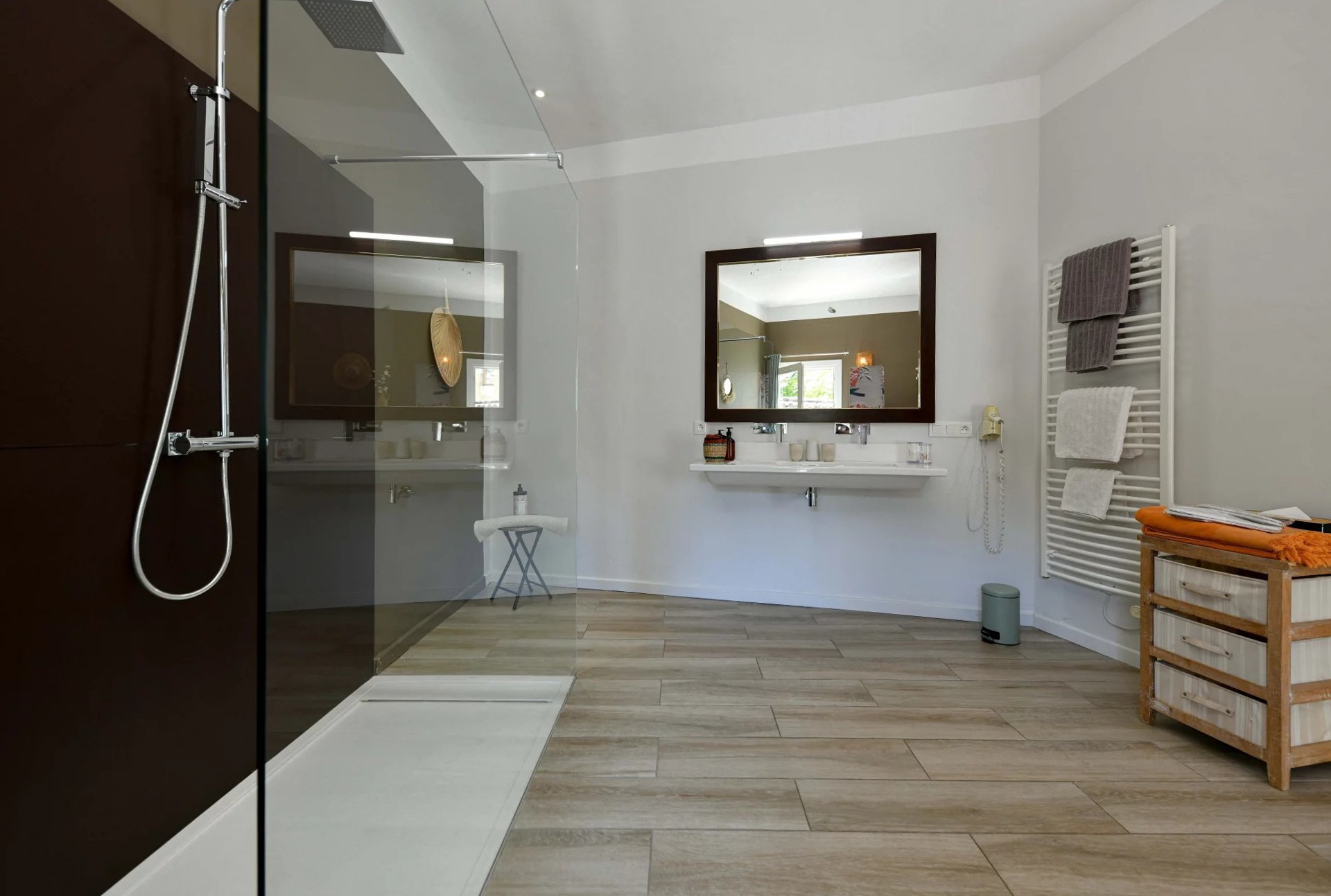 • Dwie dodatkowe suite, jedna z nich z dostępem do tarasu z widokiem na basen, każda z własną łazienką.