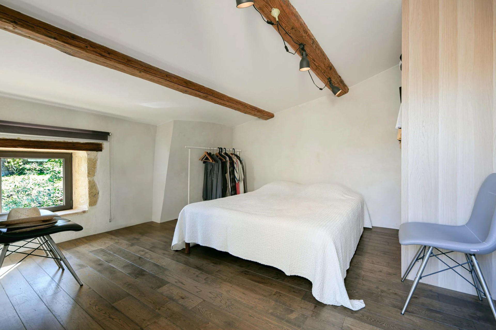 Dawny młyn oliwny przekształcony w dom mieszkalny, położony około 17,5 km od Uzès. Budynek ma dwie kondygnacje i zachowuje charakterystyczne proporcje dawnej architektury przemysłowej.