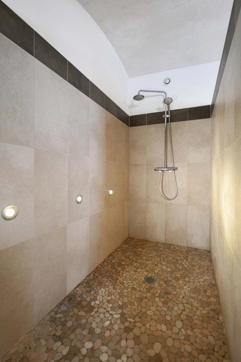 Na piętrze znajduje się otwarta kuchnia z widokiem na salon oraz sypialnia z garderobą. Prywatny taras prowadzi do trzeciej, niezależnej sypialni.