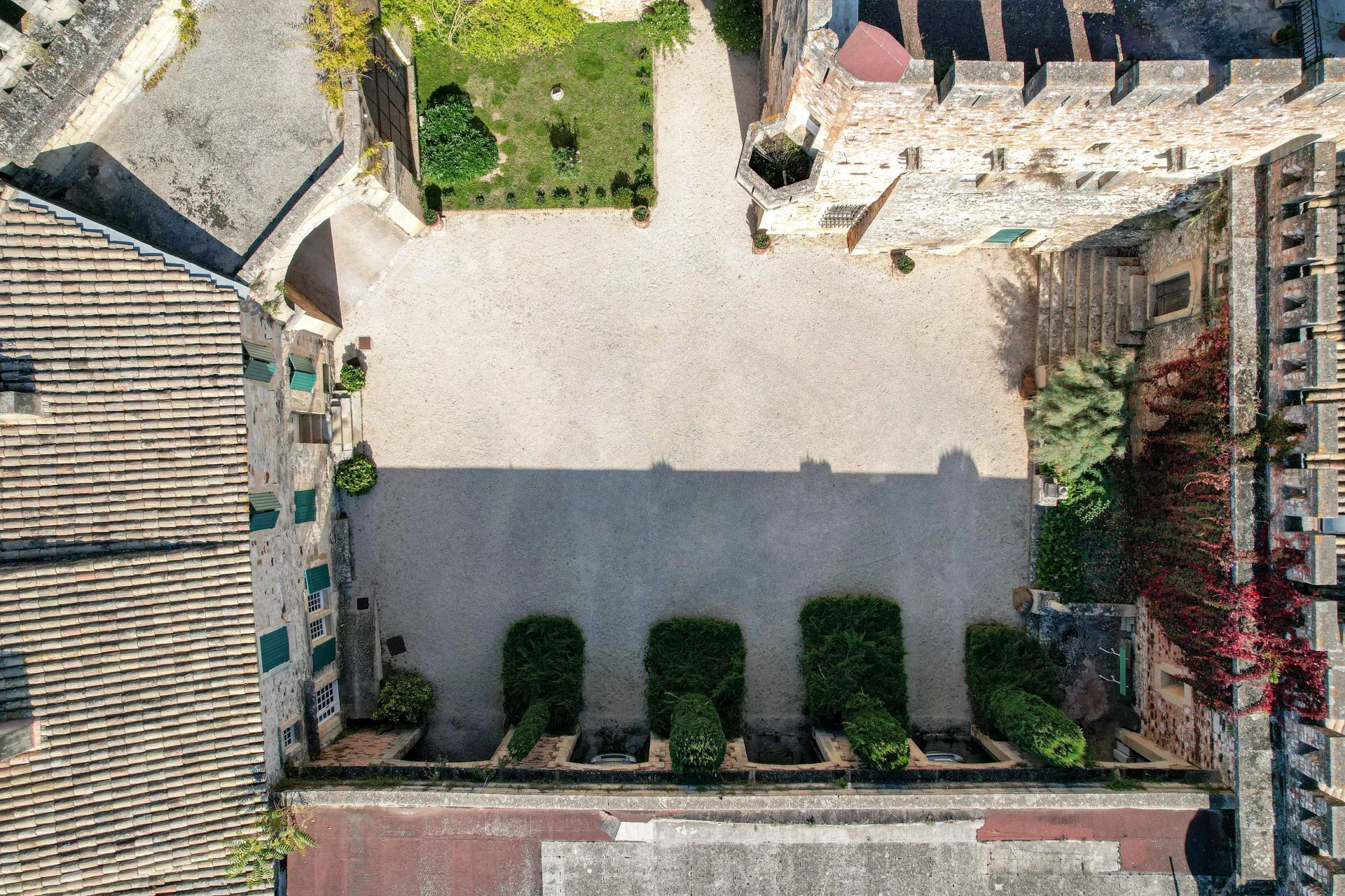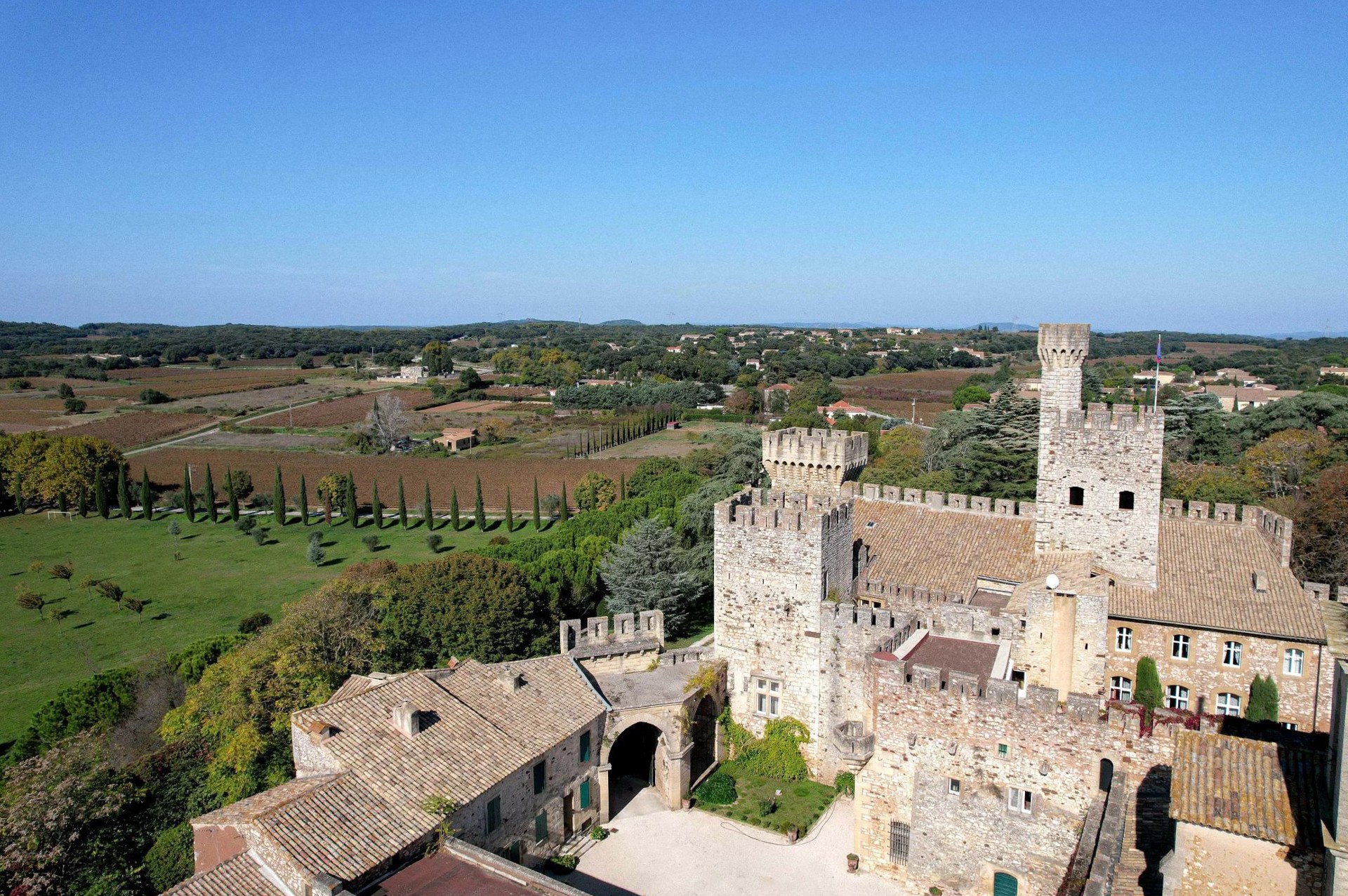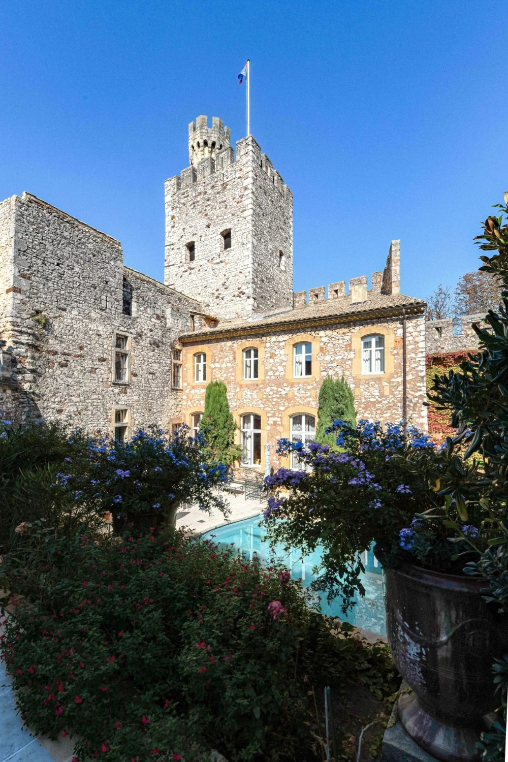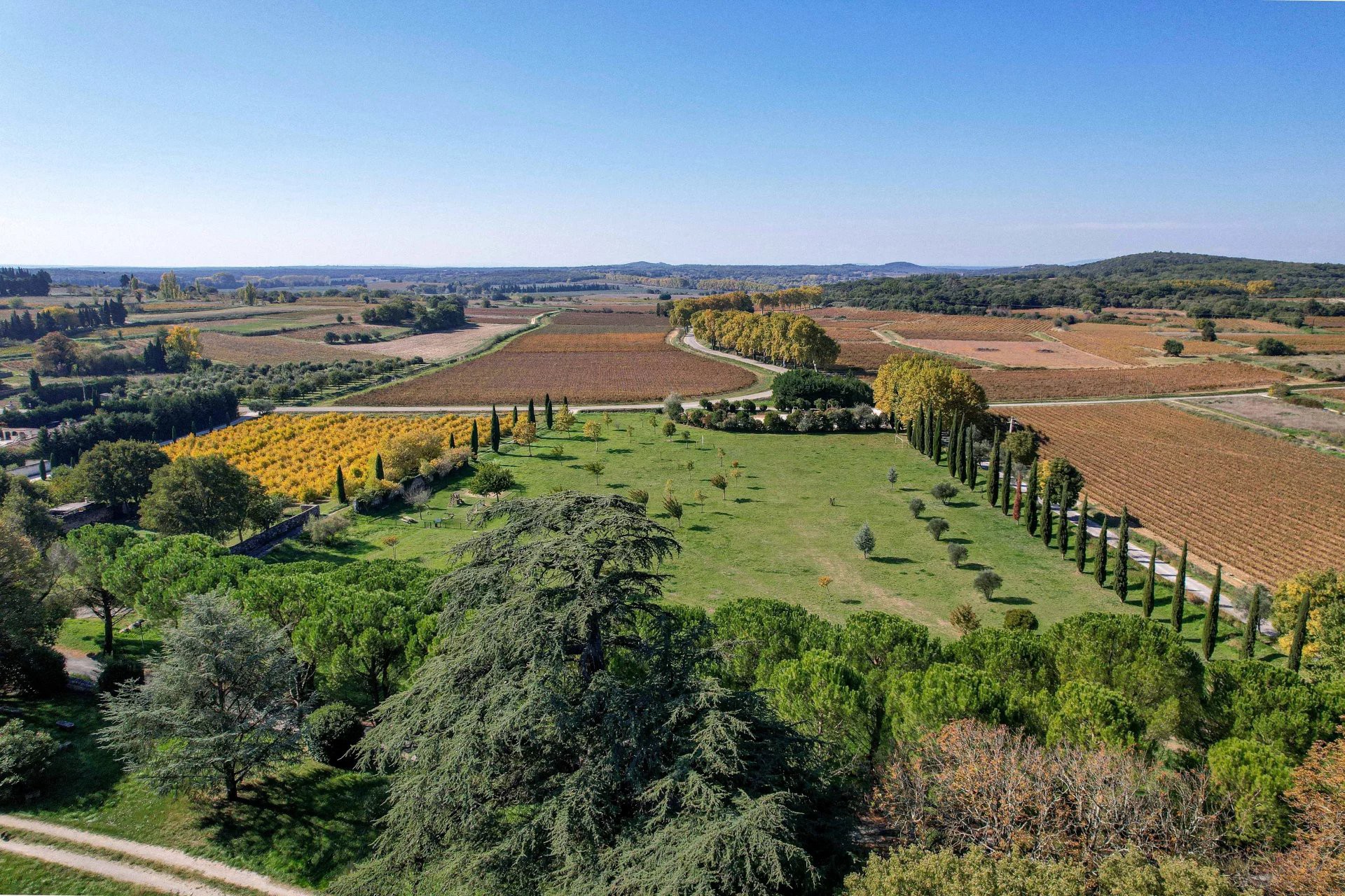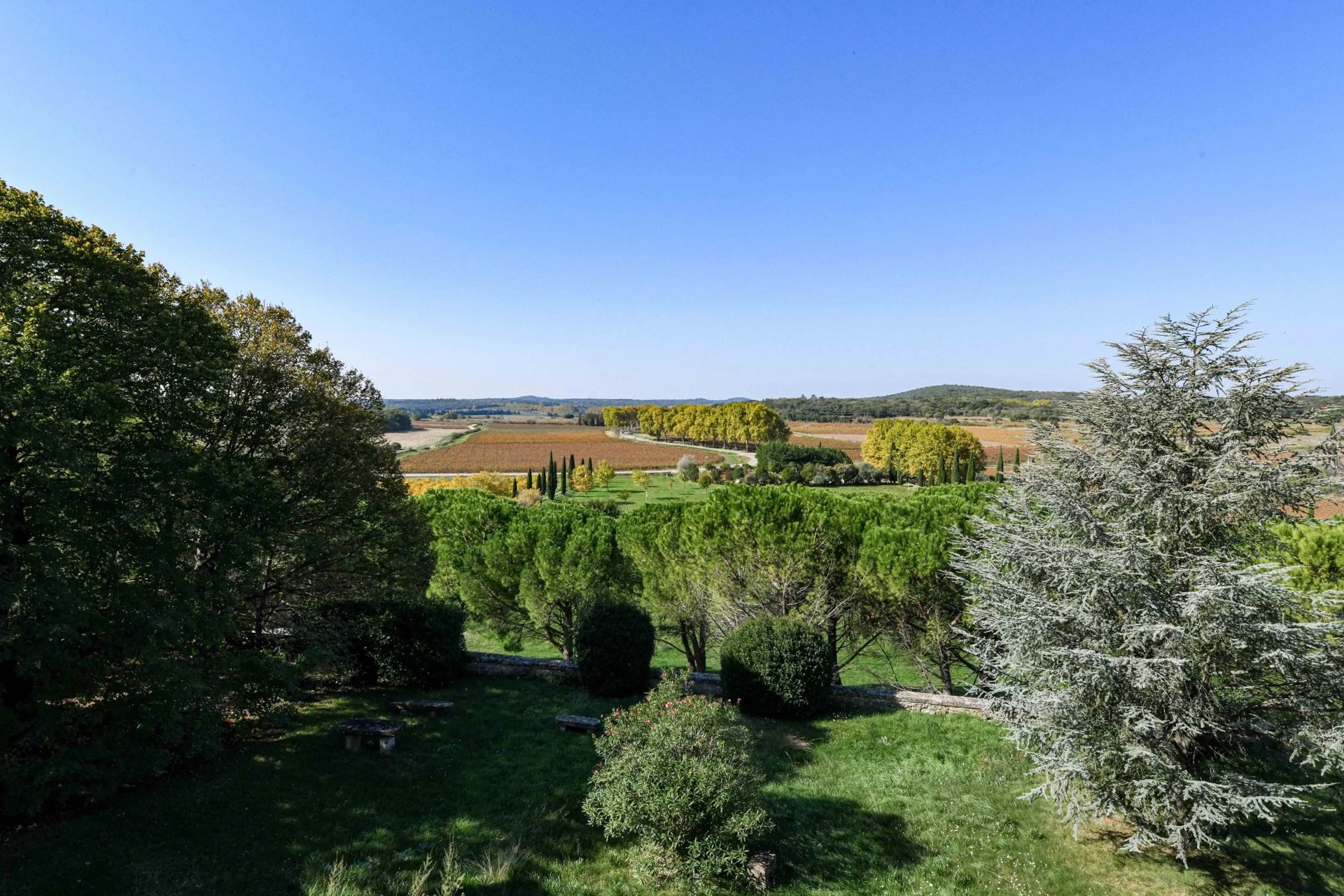 Ogrodzony park zajmuje 1,17 ha, oferując prywatność typową dla takich posiadłości. Z tarasów i wież roztacza się szeroki widok na spokojny krajobraz wzgórz między Uzès a Avignon.