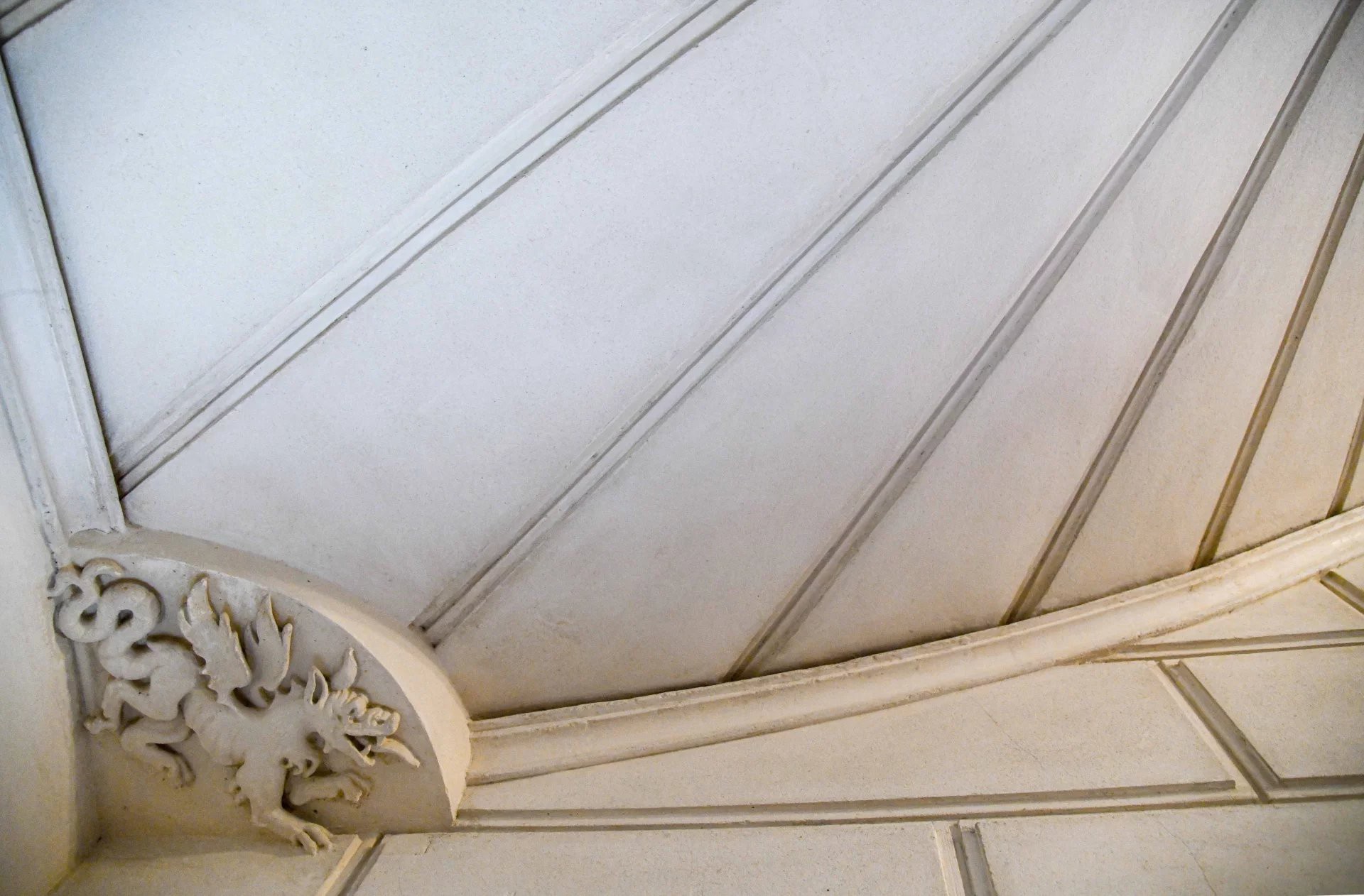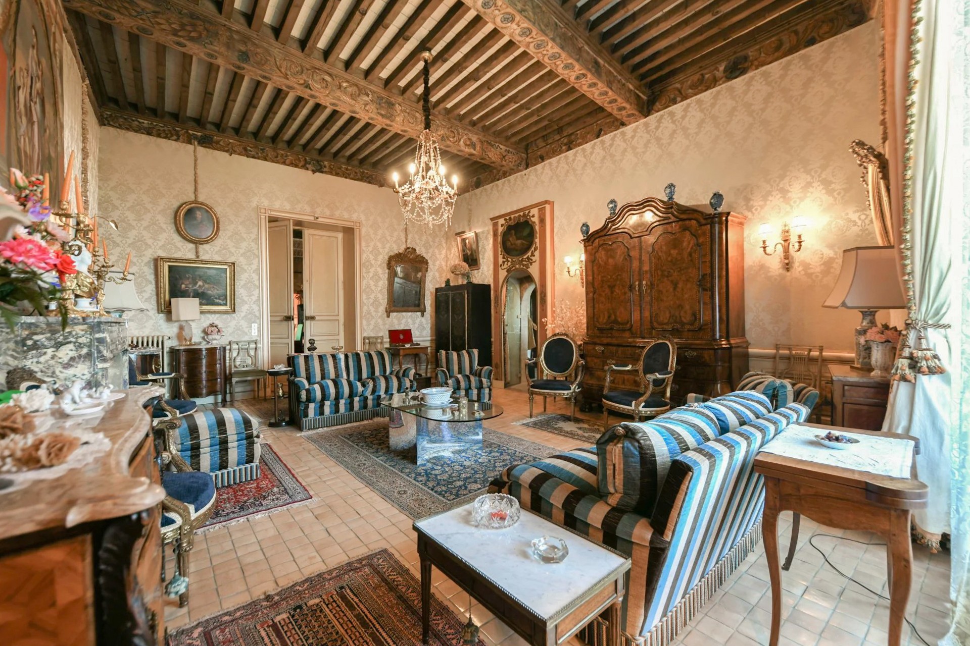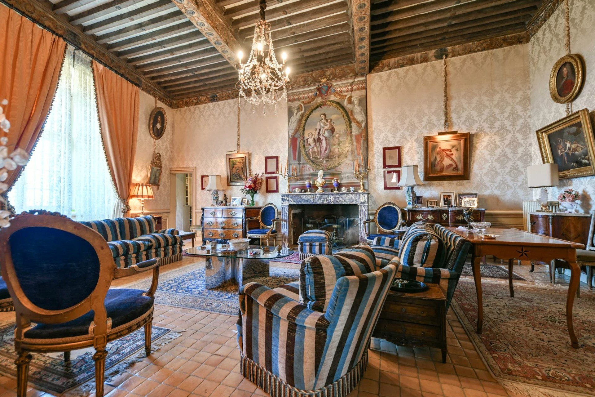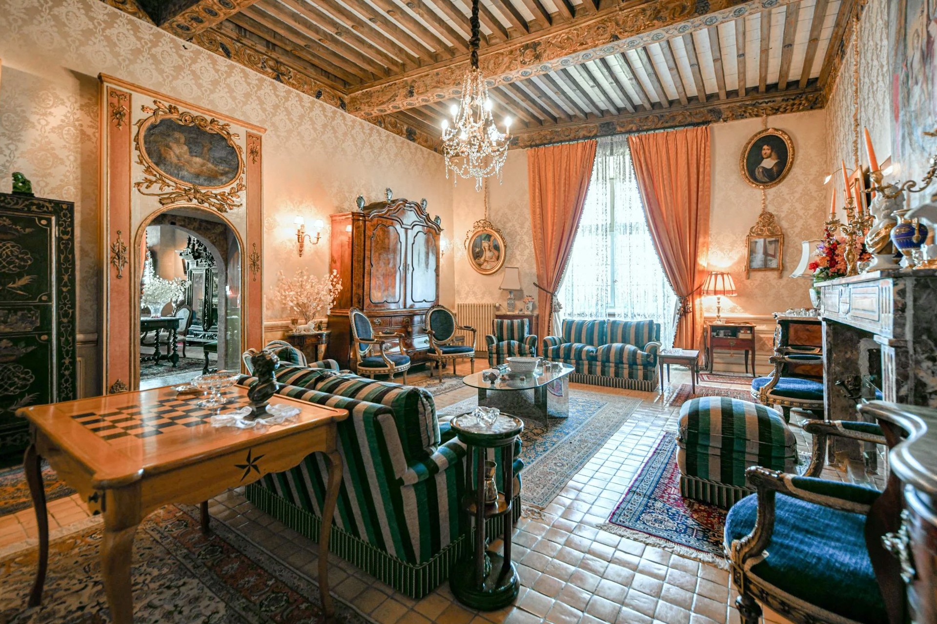 Budynek główny rozciąga się na trzech kondygnacjach. Na parterze przestronny salon z sklepieniem przyciąga oryginalnym sufitem z XVII wieku. Wytworne schody prowadzą na piętro, gdzie harmonijnie rozmieszczone są reprezentacyjne pomieszczenia: dwa salony z wysokimi oknami, jadalnia z kominkiem i biblioteka. Z długiego korytarza dostępna jest główna apartamentowa suite o powierzchni 100 m² z widokiem na park.