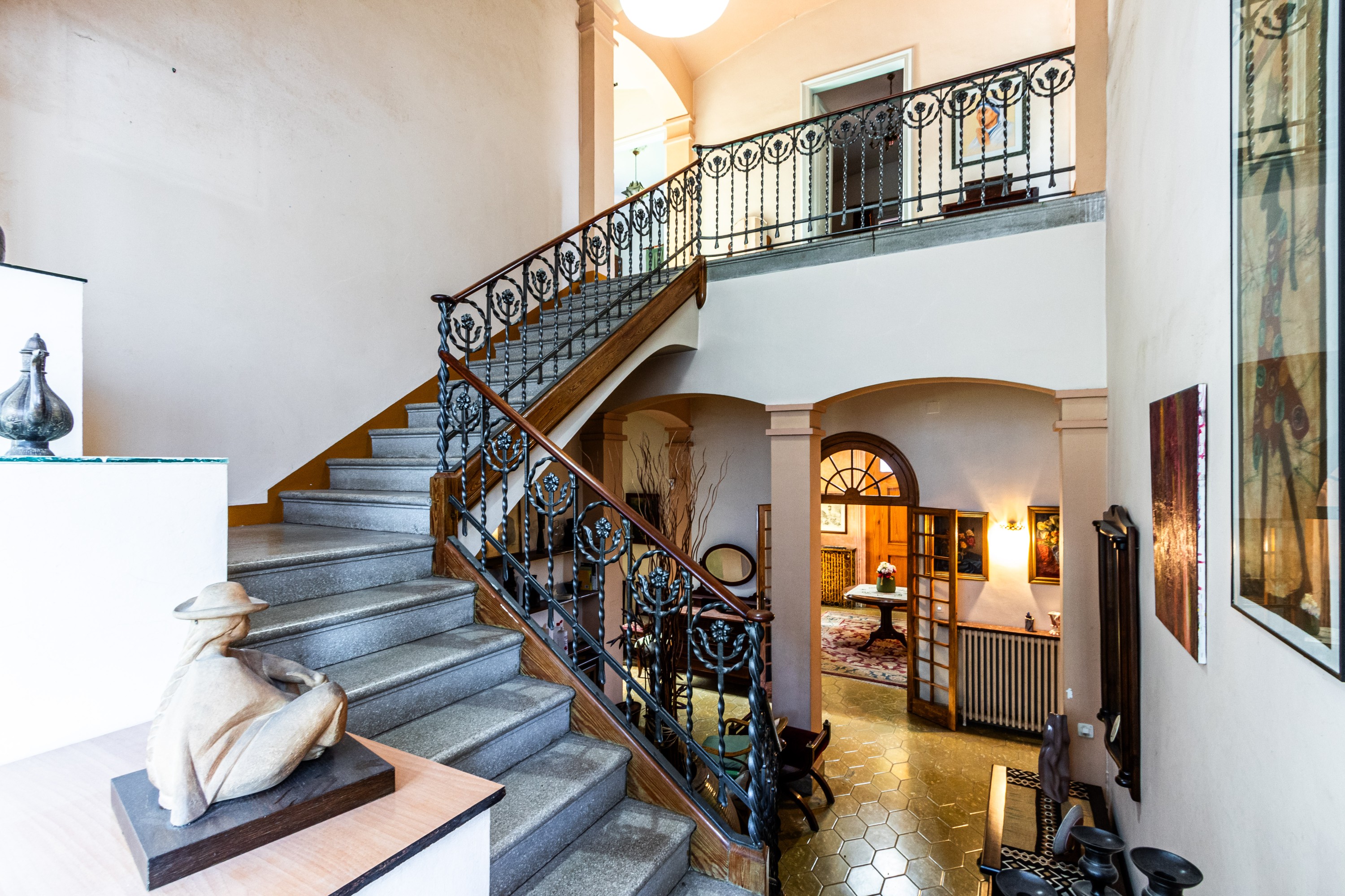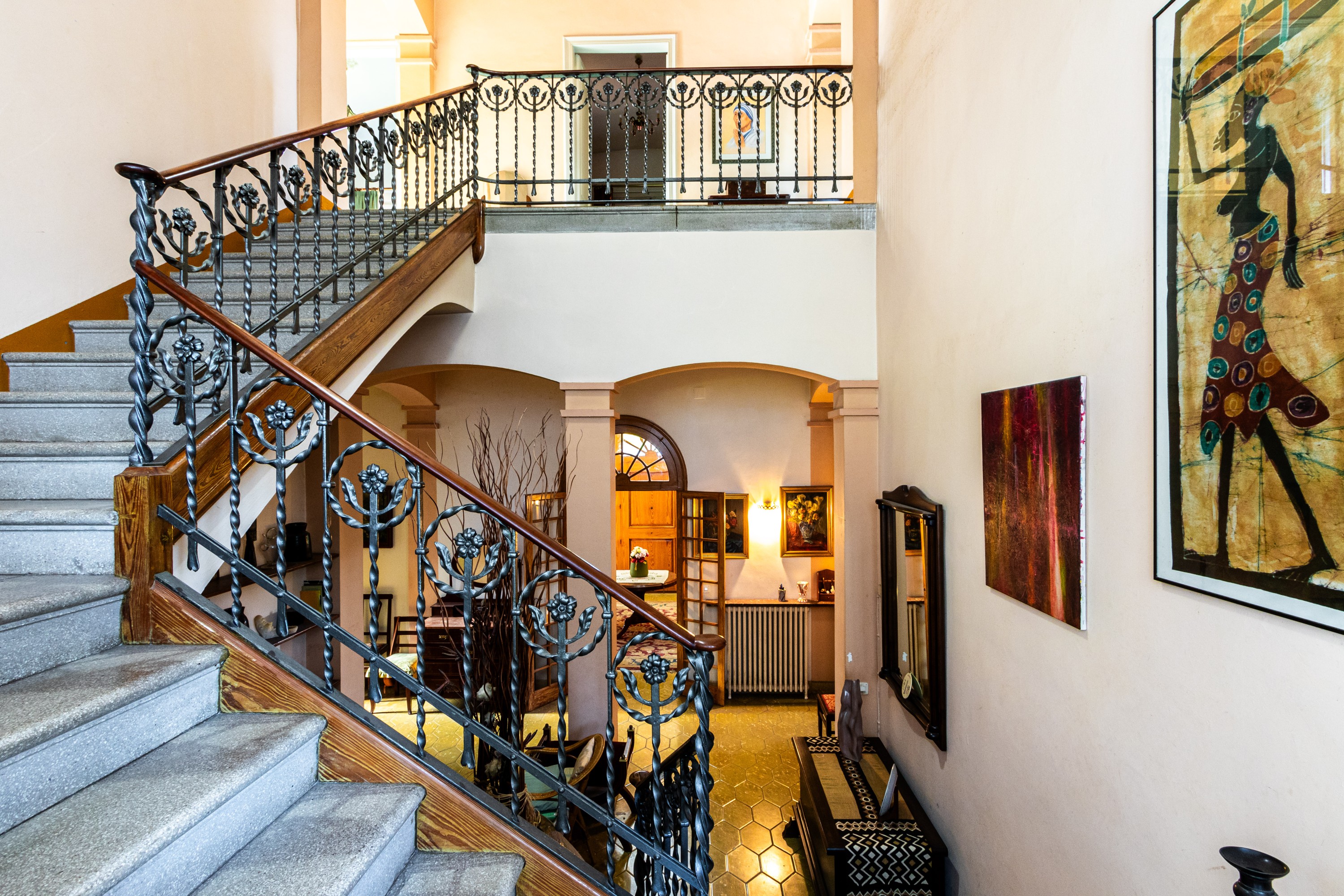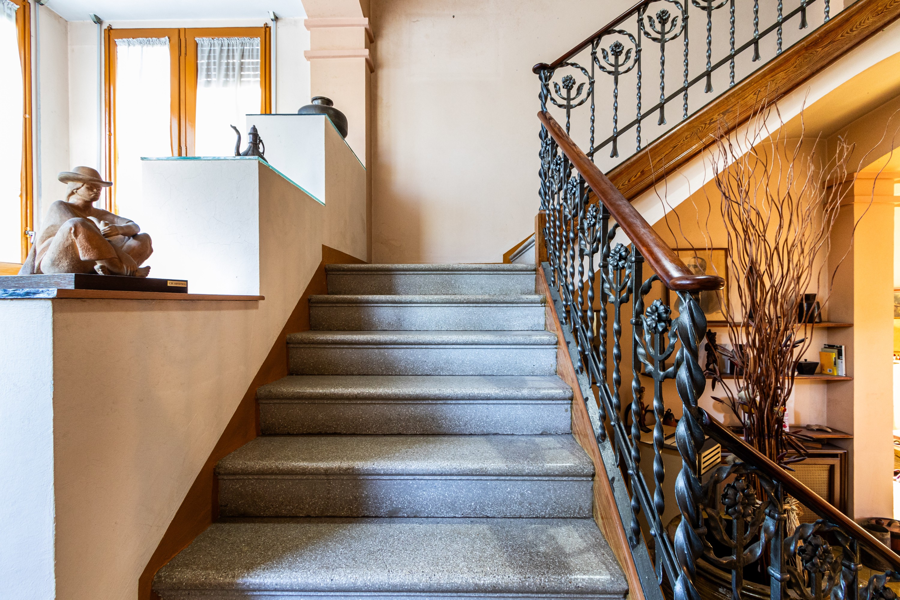 Działka o powierzchni 5.119 m² obejmuje ogrody, basen wymagający remontu oraz strefę rekreacyjną. Ekspozycja południowo-zachodnia zapewnia naturalne światło przez cały dzień. Willa posiada balkony, tarasy oraz garaż wykuty w zboczu z prywatnym dostępem. Zachowano wiele oryginalnych elementów z początku XX wieku.