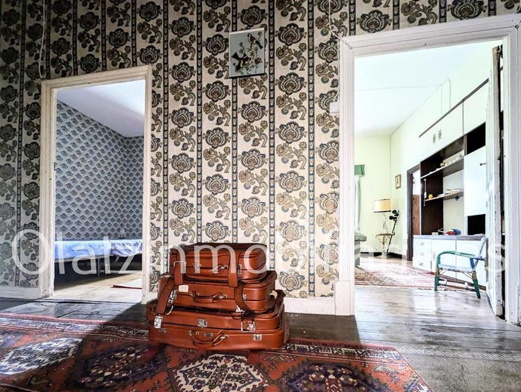 Działka o powierzchni 1.442 m² łagodnie opada ku czystej rzece. Własna studnia z wodą źródlaną i oryginalny kamienny zegar słoneczny podkreślają historyczną wartość nieruchomości. Dach i stolarka zewnętrzna zostały niedawno odnowione, z poszanowaniem architektonicznego charakteru obiektu.