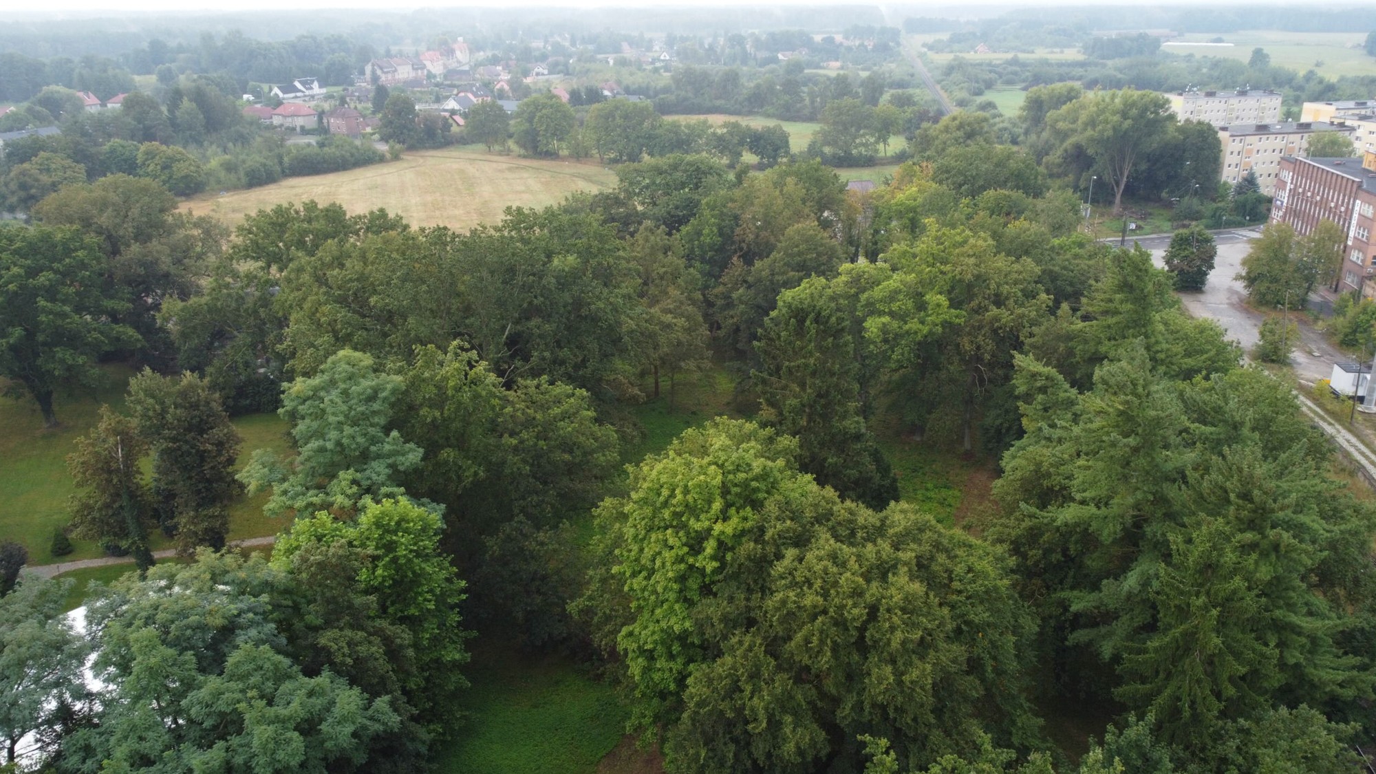 Park położony jest w spokojnej, zielonej okolicy, a jednocześnie blisko centrum i sklepów – idealne miejsce łączące ciszę z wygodnym dostępem do infrastruktury miejskiej. Teren przy bramie wjazdowej jest płaski, natomiast na końcu działki znajduje się wzniesienie porośnięte imponującymi drzewami. W lekkim zagłębieniu znajduje się staw, który podnosi atrakcyjność nieruchomości.