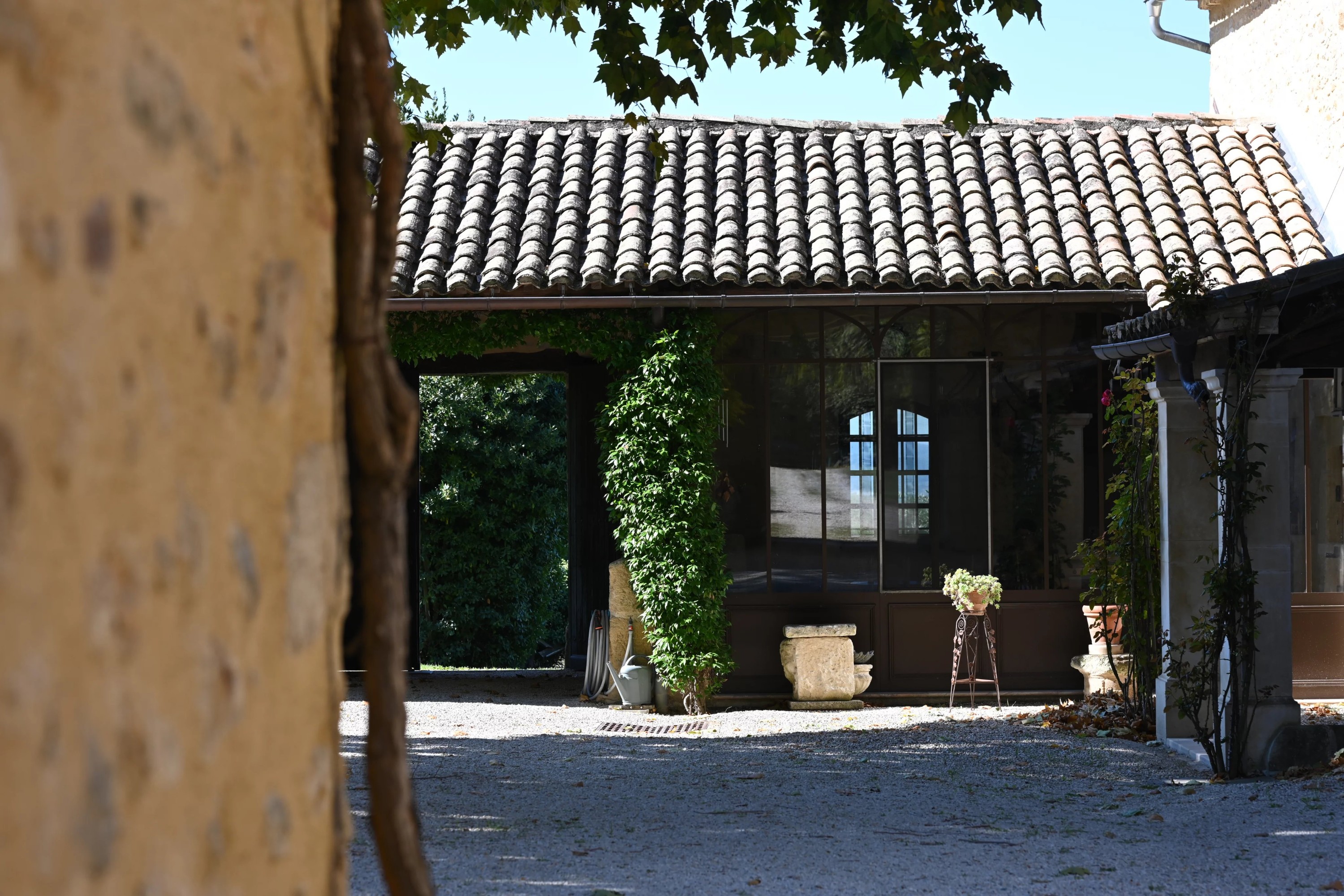 Za bramą wjazdową znajduje się wewnętrzny dziedziniec z platanem.