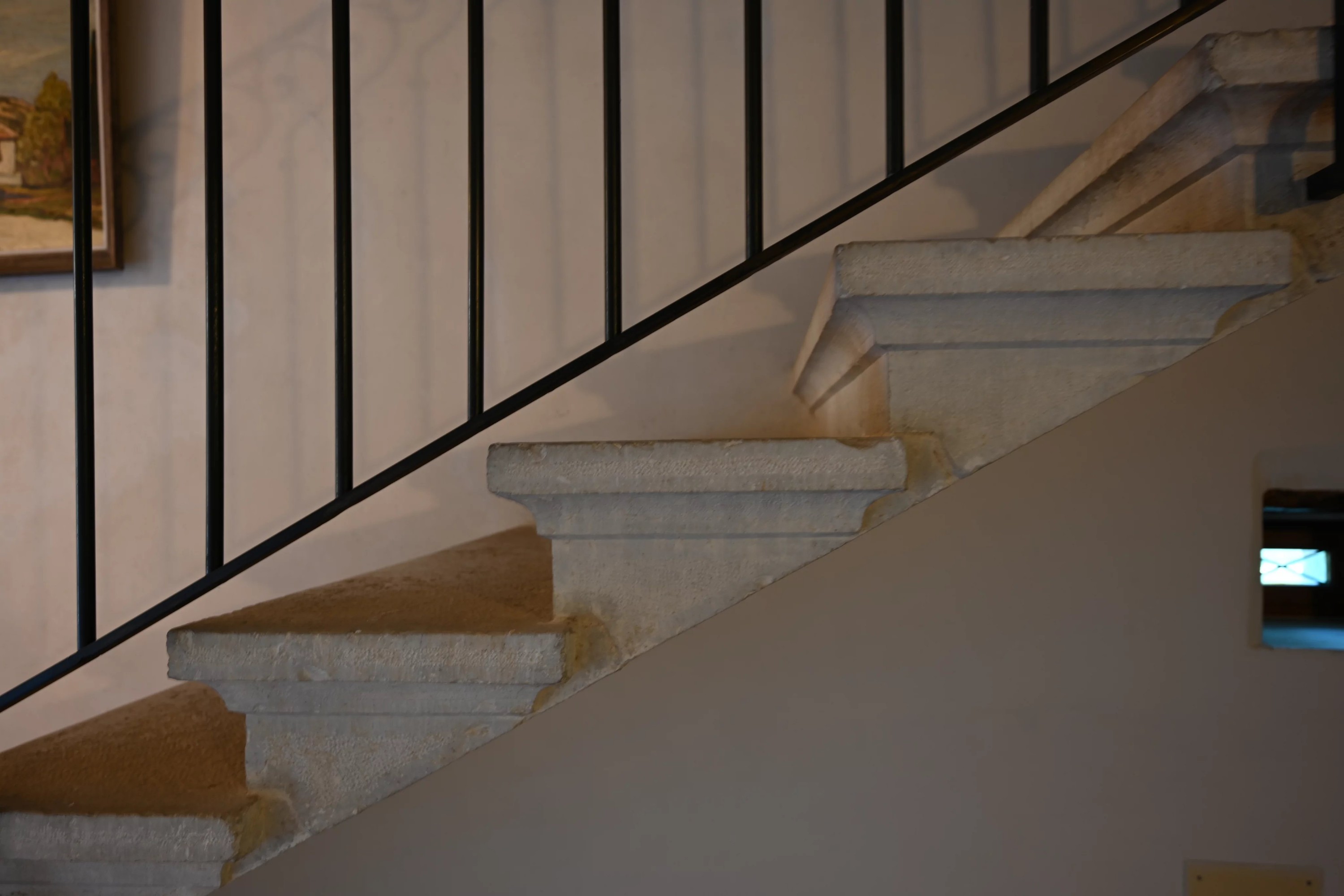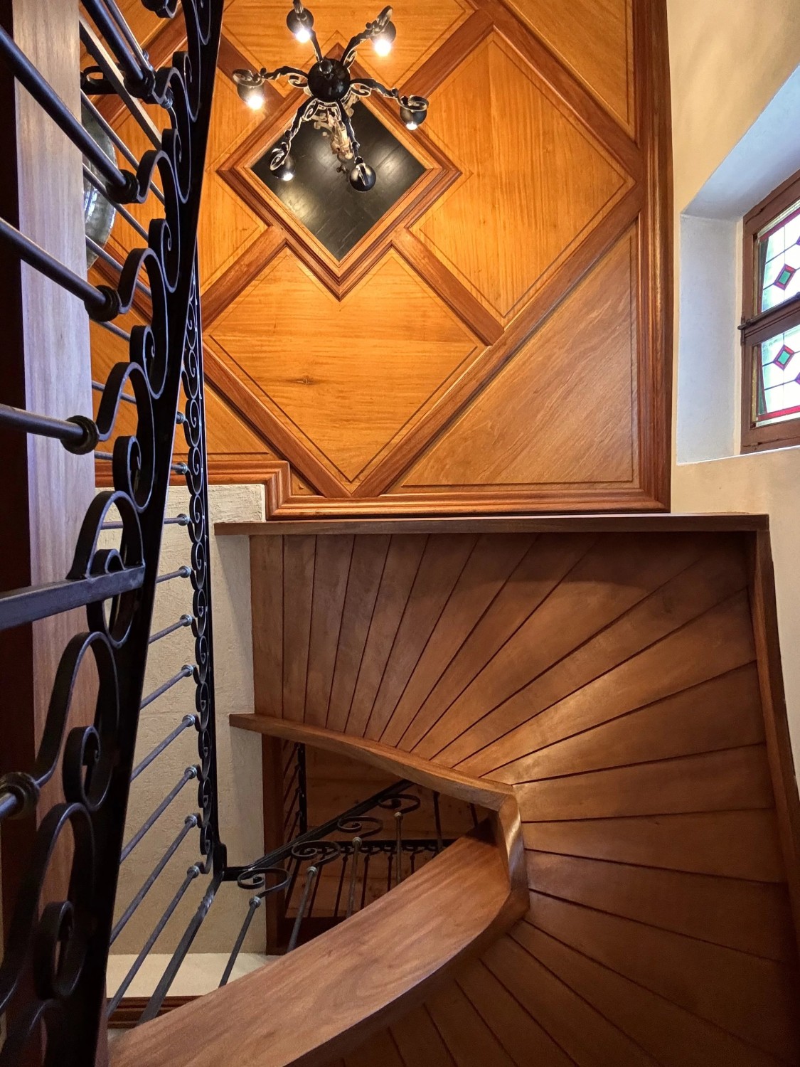 Z holu wejściowego kamienne schody z kutą balustradą prowadzą na wyższe kondygnacje, gdzie znajdują się trzy apartamenty typu suite, z których jeden posiada gabinet i buduar.