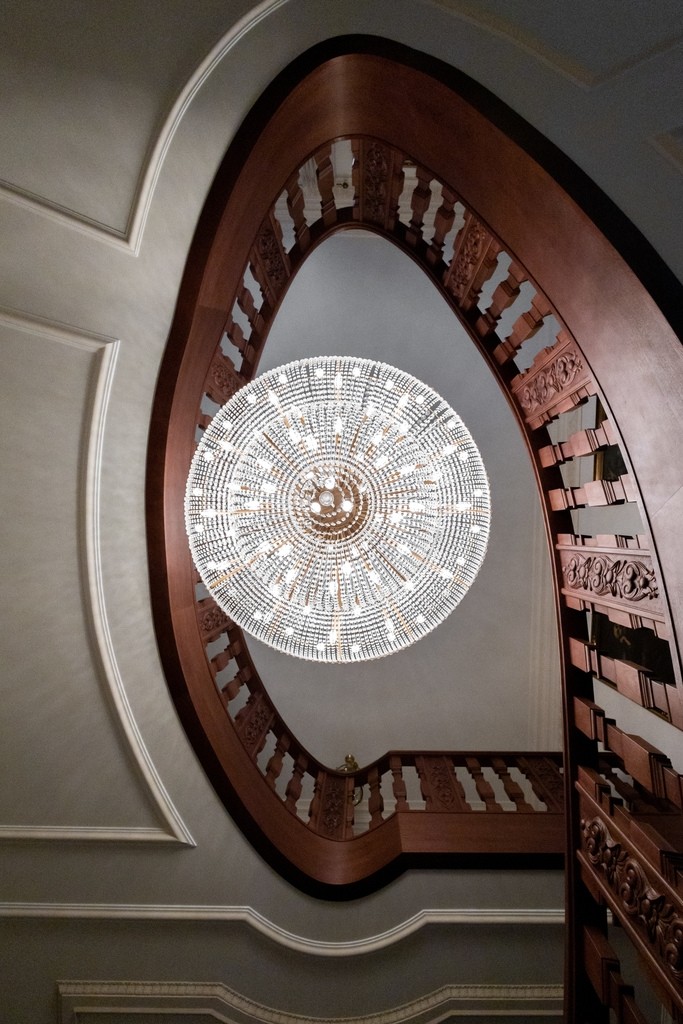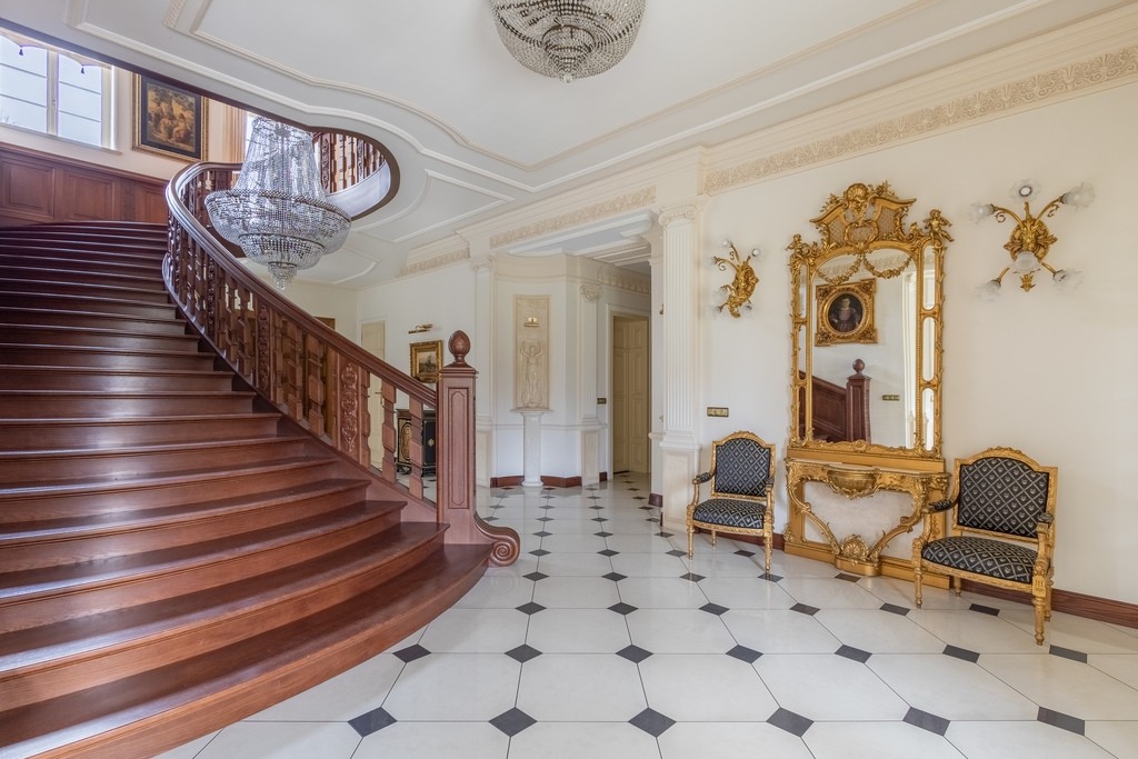 Na parterze znajduje się reprezentacyjny hol, salon kominkowy, salon bilardowy, kino, kuchnia z jadalnią oraz wiele innych pomieszczeń. Na uwagę zasługuje klimatyzowana sala balowa z wyjściem do ogrodu.