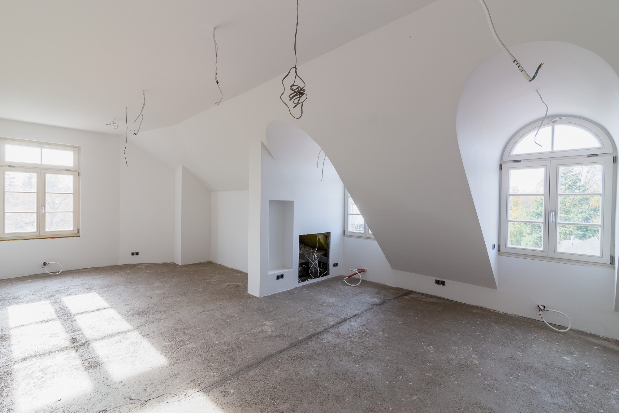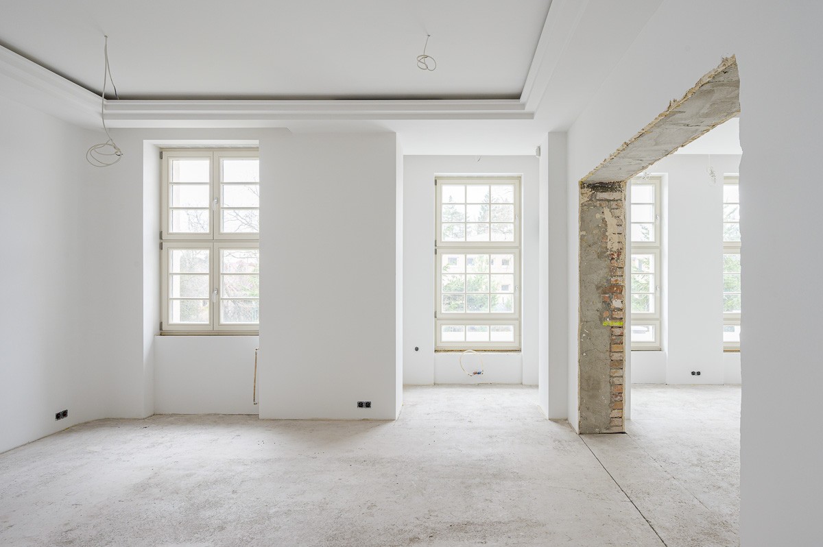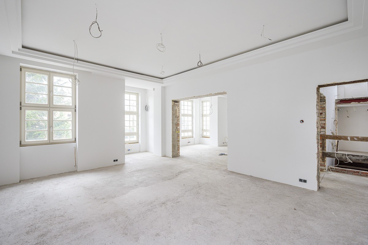 Wnętrza (mimo iż aktualnie pozostają w stanie deweloperskim) zachwycają swoją przestronnością i piękną grą światła utworzoną dzięki rozmyślnemu ustawieniu okien. Na 537 m² powierzchni użytkowej znają się min. 4 sypialnie, 2 gabinety, 2 garderoby, kilkuset metrowa część dzienna w układzie amfiladowym, domowa siłownia z sauną oraz reprezentacyjny hol z miejscem na masywne wachlarzowe schody.