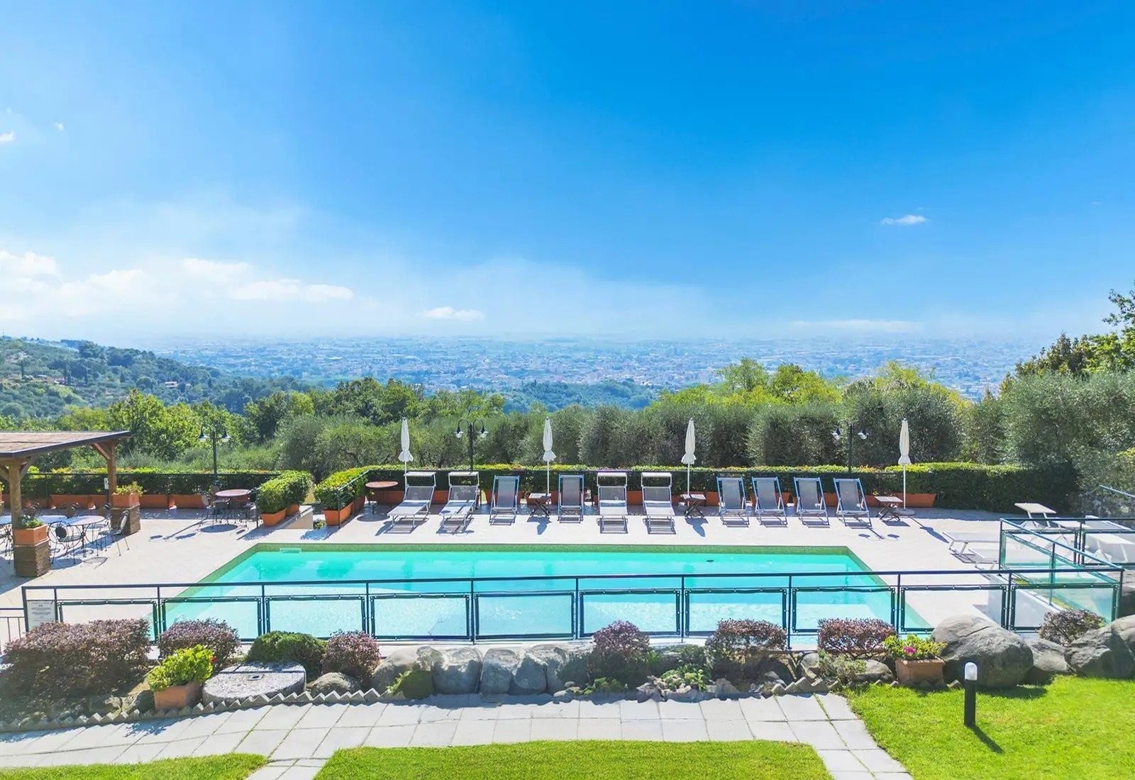 Montecatini Terme leży u stóp nieruchomości i słynie z uzdrowisk z okresu Belle Époque oraz architektury secesyjnej. Miasto oferuje pełną infrastrukturę lokalną oraz połączenia kolejowe. Florencja – 50 km, Lukka – 35 km, Pistoia – 15 km, Pisa – 60 km. Lotnisko we Florencji (Peretola) – 55 km, międzynarodowe lotnisko w Pizie – 65 km. Willa łączy prywatność, zapewnioną przez topografię i prywatny dostęp, z łatwym dostępem do sieci toskańskich miasteczek na wzgórzach.