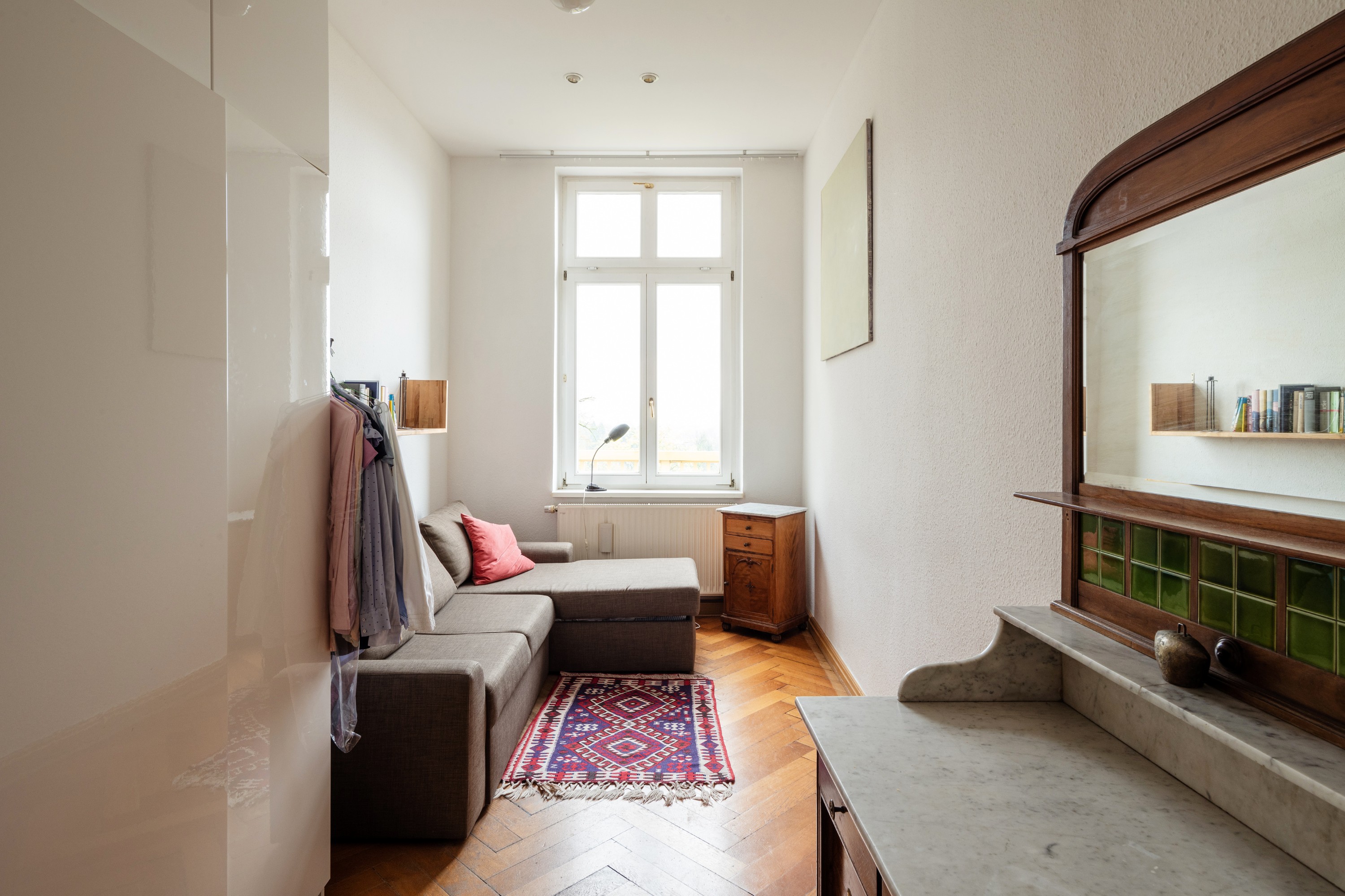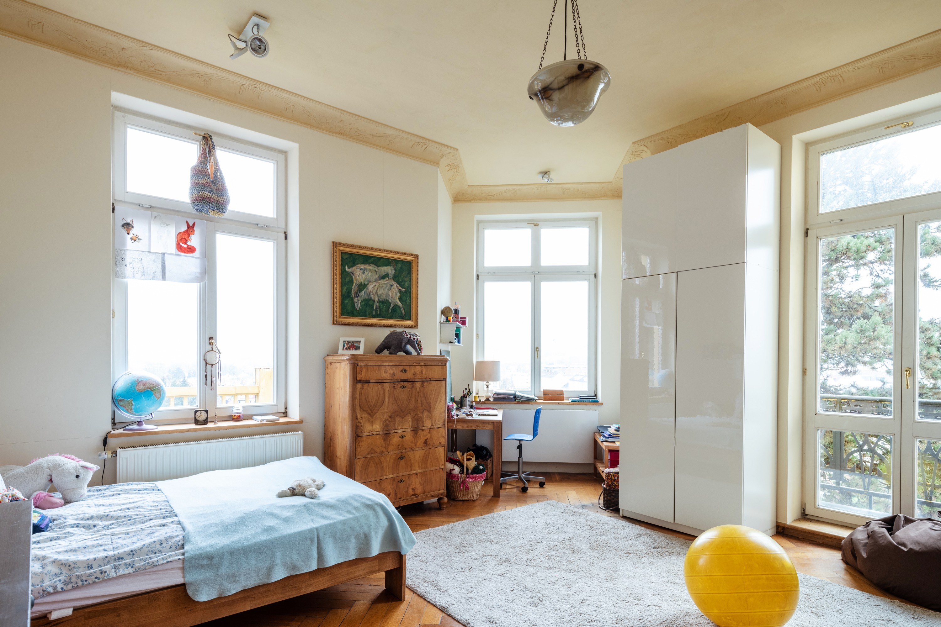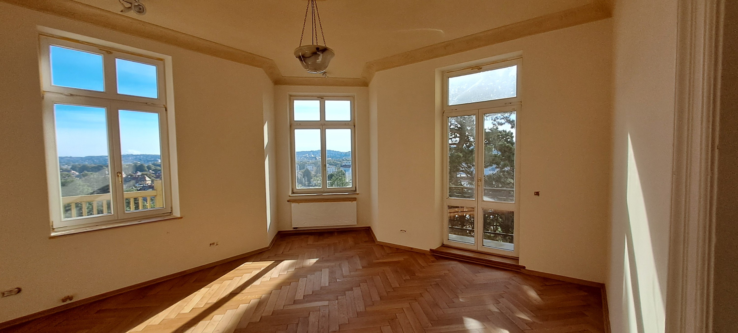 Oferowany na sprzedaż apartament znajduje się na trzecim piętrze i dysponuje około 171 m² powierzchni mieszkalnej (około 187 m² wraz z tarasami i balkonami, liczonymi w 50%). Od 2012 roku, a ponownie z pracami zaplanowanymi na 2026 rok, nieruchomość była starannie modernizowana z poszanowaniem oryginalnej struktury budynku. Zachowano historyczne elementy, takie jak stiukowe sufity, dębowe parkiety, oryginalne drzwi i wysokie pomieszczenia, uzupełniając je nowoczesnymi rozwiązaniami, w tym potrójnymi szybami oraz zmodernizowanym systemem ogrzewania.