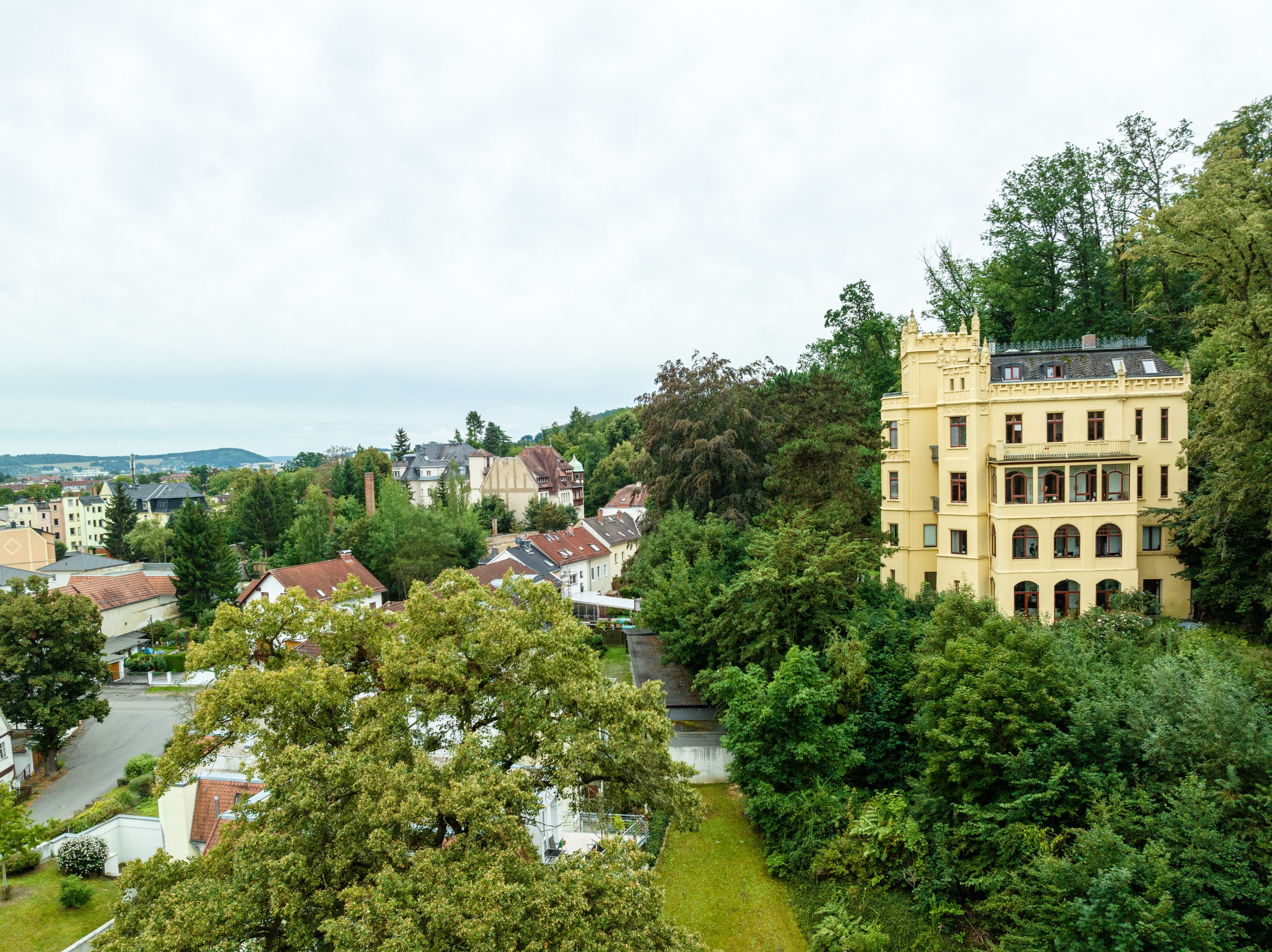 Villa Brehme to wyjątkowy budynek historyczny z 1897 roku, rozbudowany w latach 1910–1915. Położona na wzniesieniu, na skraju miejskiego lasu, willa oferuje imponujące widoki na miasto Gera oraz bezpośredni dostęp do terenów zielonych i rekreacyjnych.