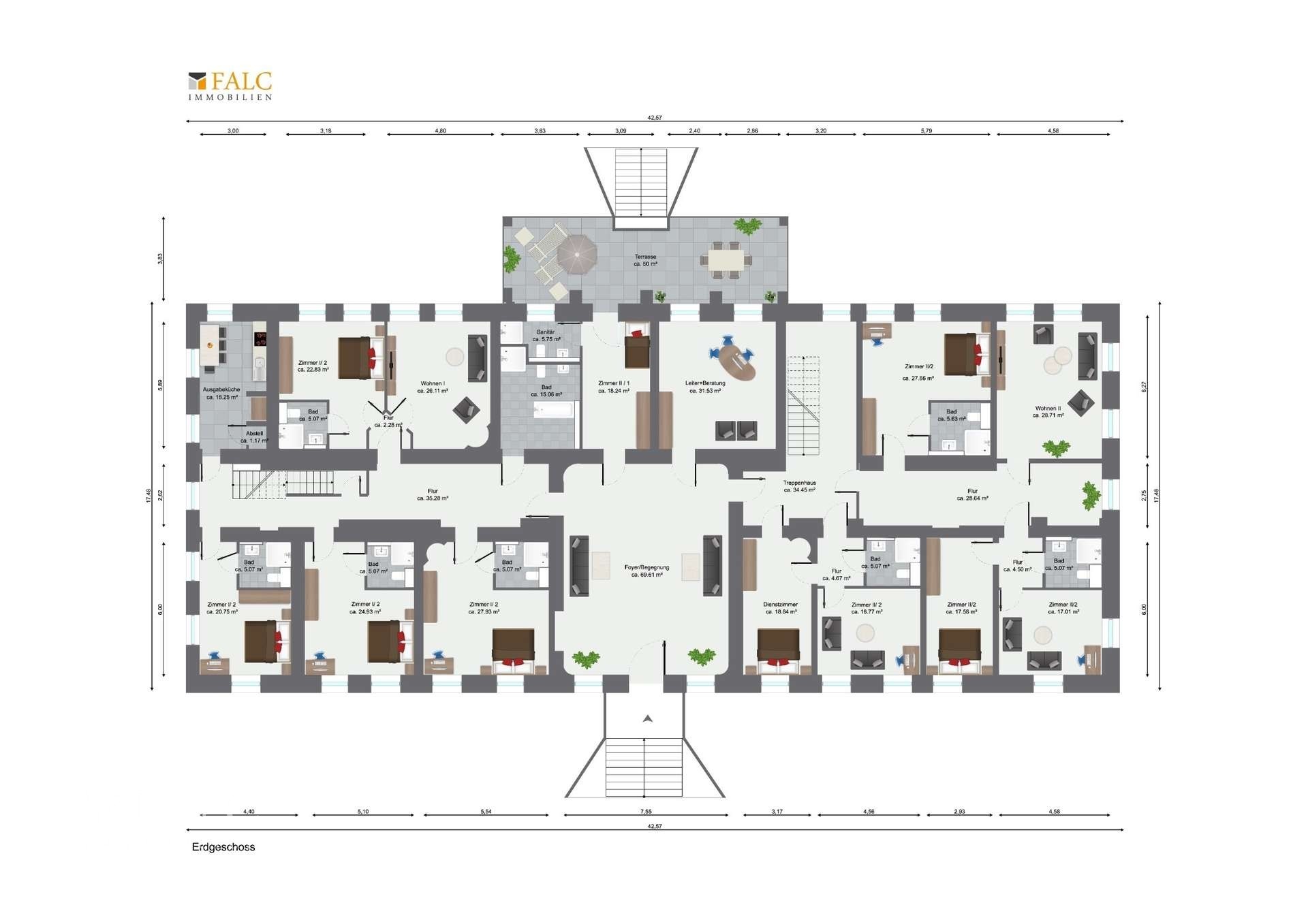 Układ pomieszczeń umożliwia różne sposoby wykorzystania: rezydencja prywatna, siedziba firmy, hotel, miejsce na wydarzenia lub placówka edukacyjna. Duża kuchnia w piwnicy nadaje się do celów gastronomicznych lub obsługi kilku jednostek mieszkalnych.