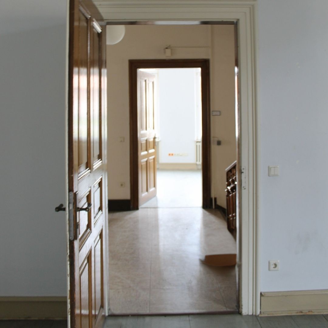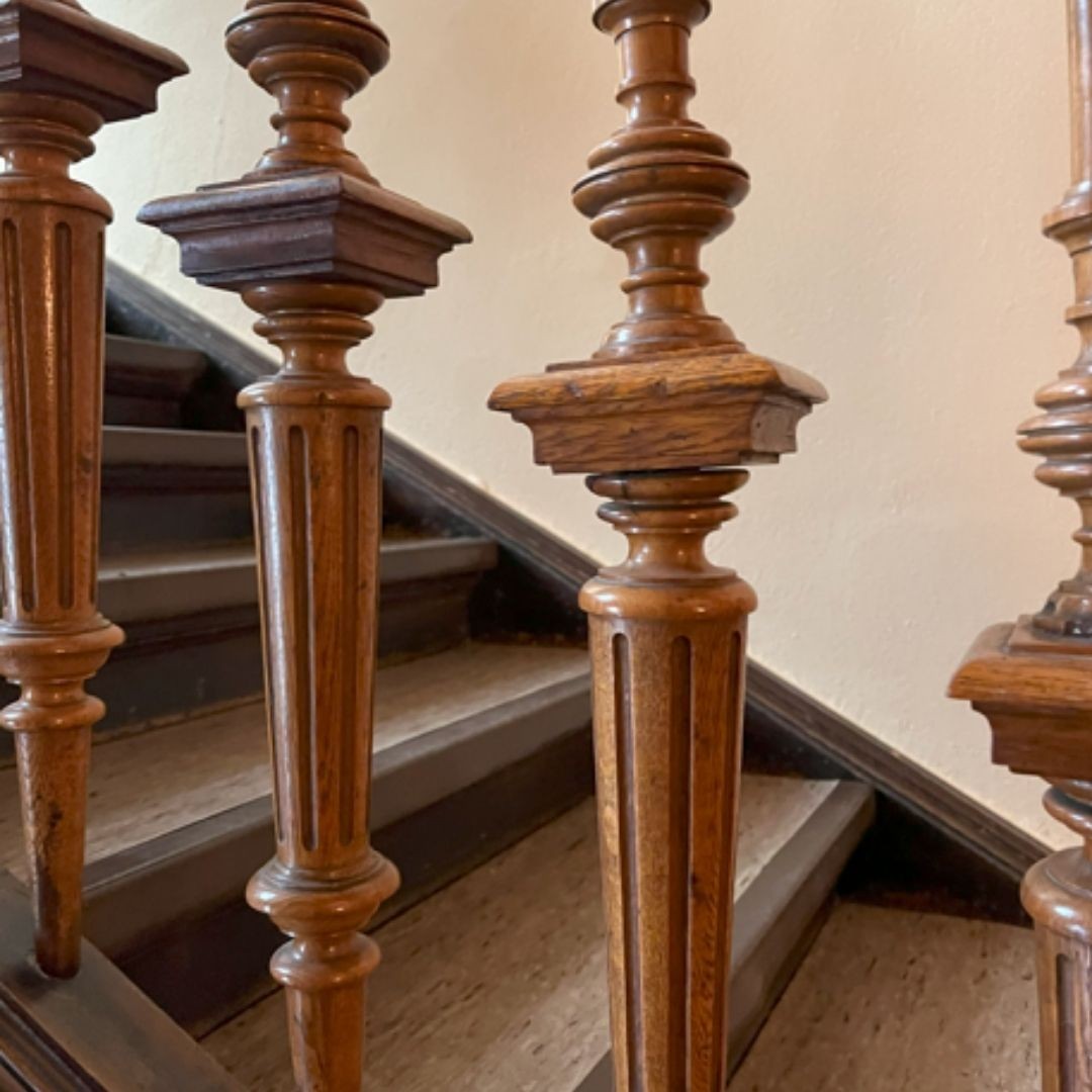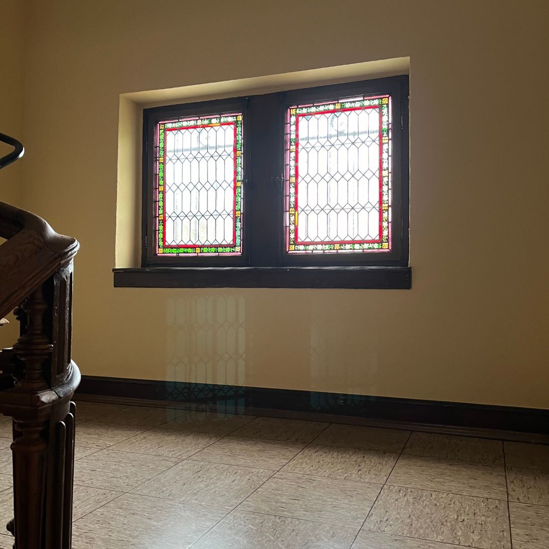 Wnętrze również oddaje dbałość o szczegóły: portal z łukiem i świetlikiem, historyczne drewniane schody, oryginalne okna z ręcznie malowanymi szybami oraz altan wychodzący na ogród nadają wnętrzom charakteru i autentyczności.