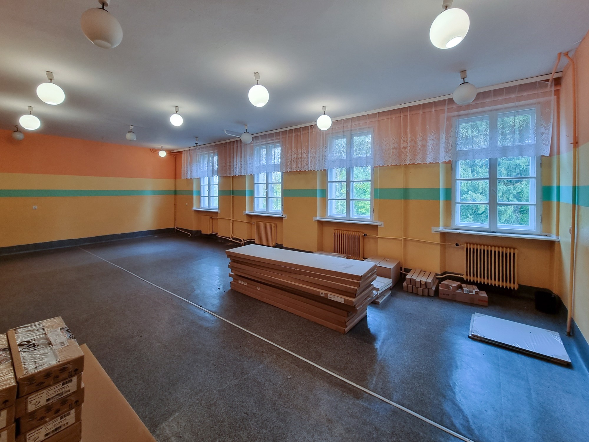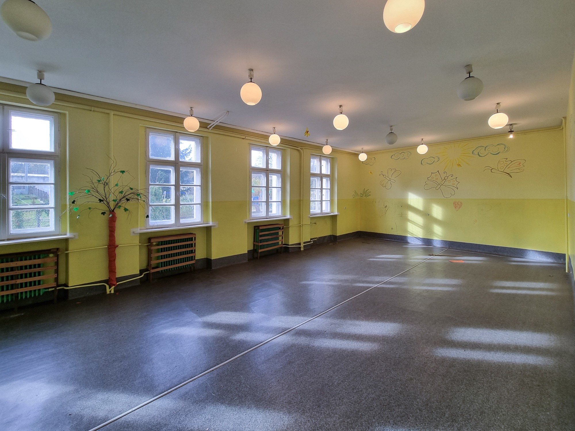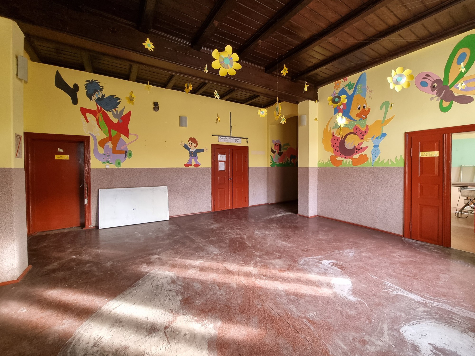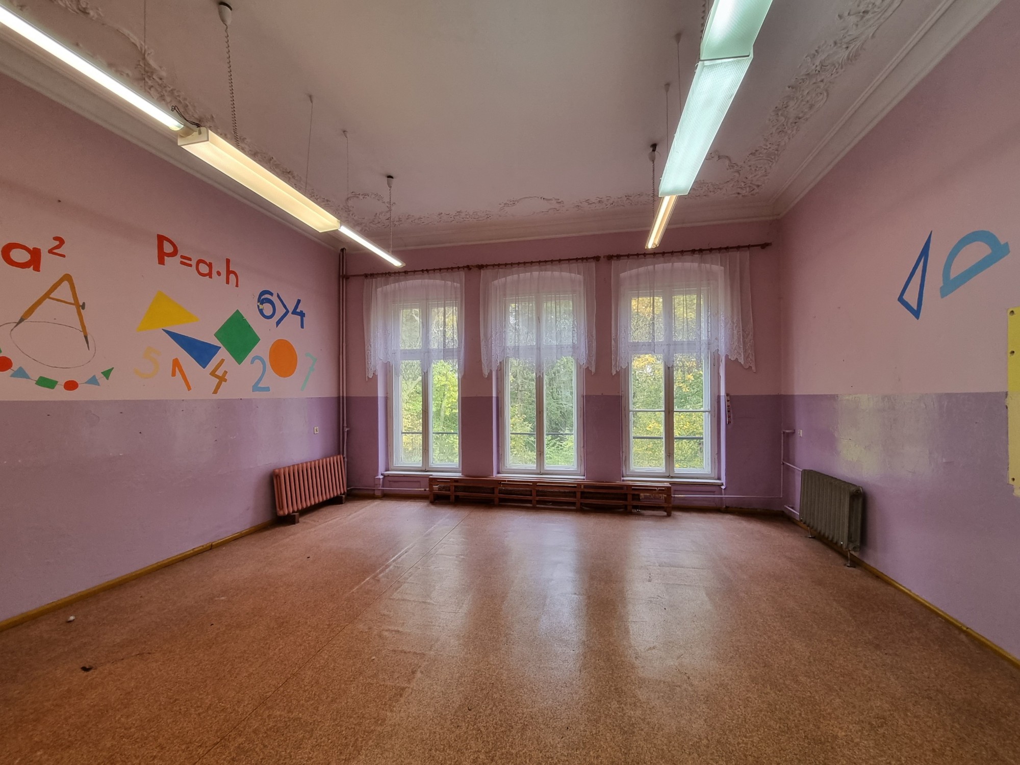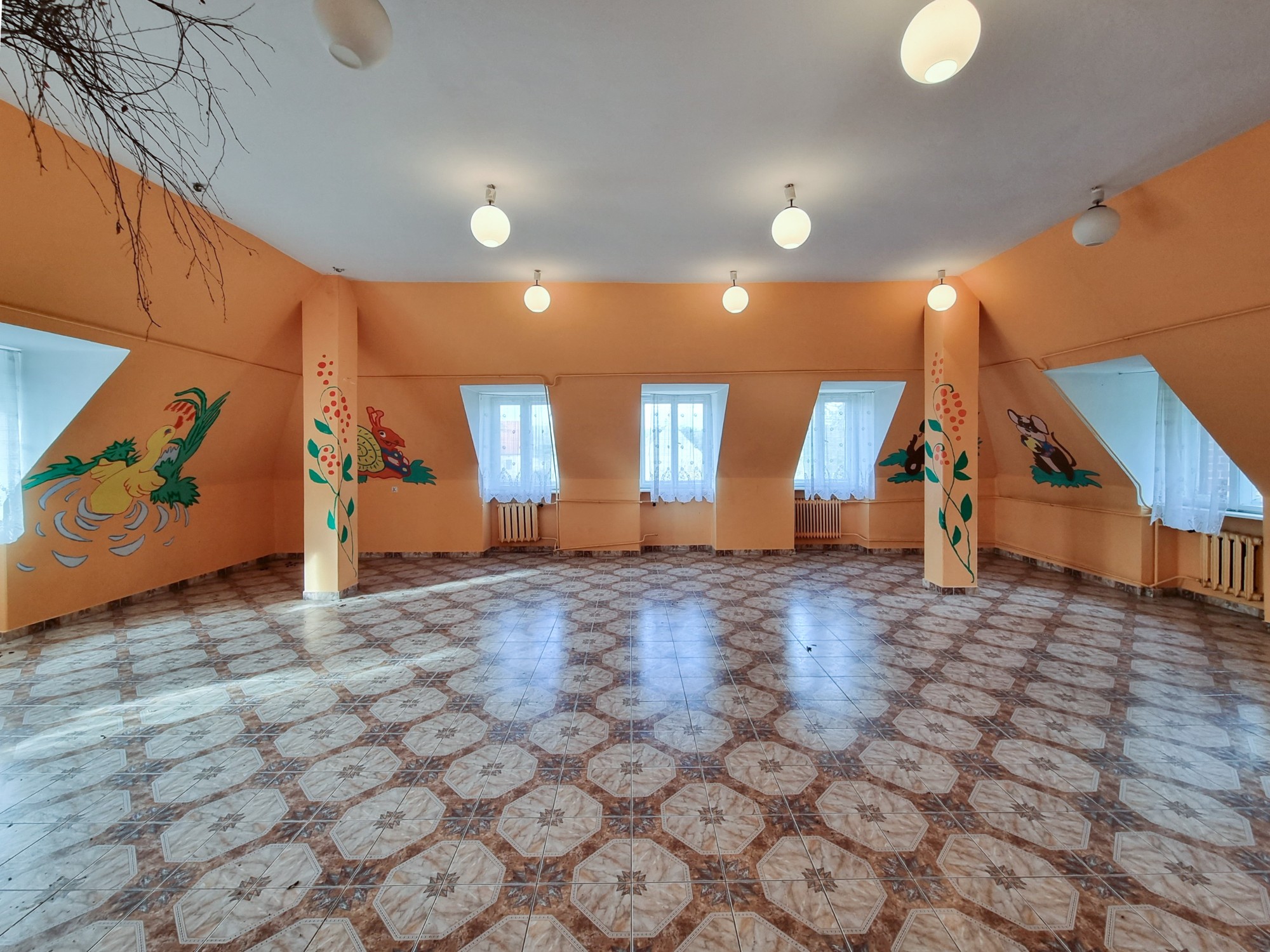 14 pomieszczeń o powierzchni: 10,72m², 48,34m², 11,74m², 9,77m², 14,68m², 57,57m², 47,8m², 20,18m², 31,4m², 19,82m², 36,37m², 25,92m², 12,9m², 56,36m², klatka schodowa - 17,60m² korytarze - 58,52m², wiatrołap - 4,5m²