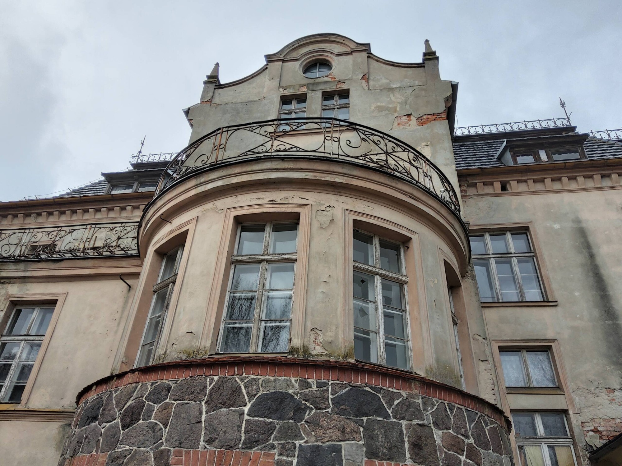 • Pałac osadzony na podmurówce z cegły i kamienia polnego.