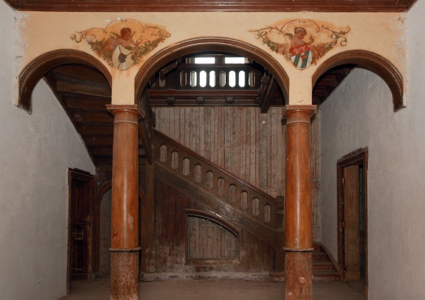 Pałac jest z dobrze zachowanymi oryginalnymi detalami, charakterystycznymi dla epoki secesyjnej typu: żelazne okucia, wykończenia drewnianych schodów, kolumny z malowidłami, ozdobne wykończenia sufitów, ściany licowane blokami granitowymi. Pokrycie dachu-dachówka karpiówka, kopuły wież i ich wykończenia wykonane z miedzi. Należy także wspomnieć o tym, że nieruchomość dysponuje obszernym podjazdem bezpośrednio pod wejście główne z obu stron.
