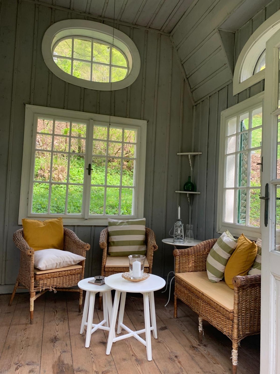 W ogrodzie znajduje się historyczna altana z XIX wieku, dwa domki ogrodowe oraz drewniany, zadaszony pawilon. Prywatna piwnica na wino oferuje idealne miejsce do relaksu lub spotkań na świeżym powietrzu.