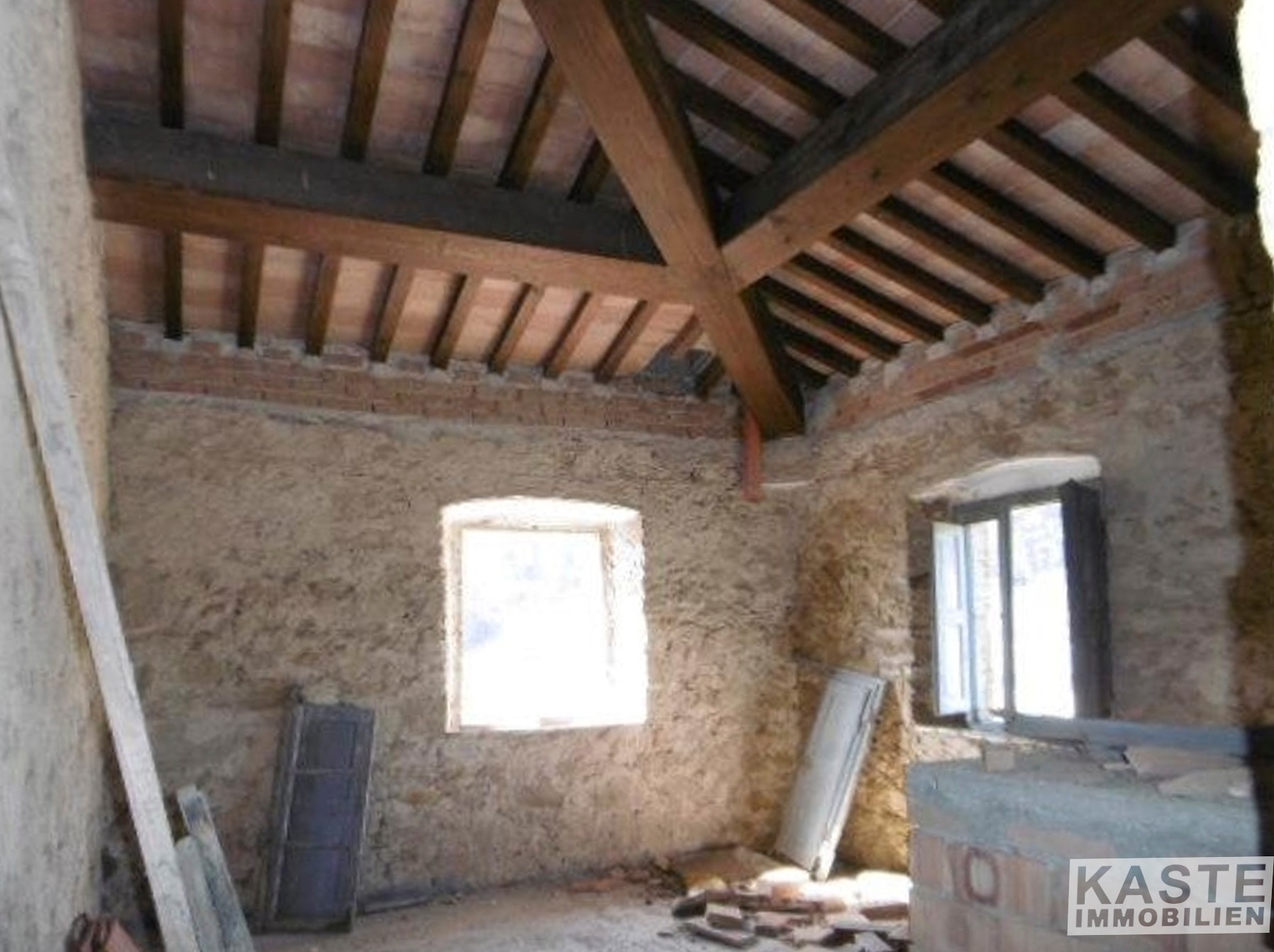 Nieruchomość składa się z 2 budynków: główny budynek ma 350 m² i rozciąga się na 3 piętrach, częściowo odrestaurowany, z oryginalnymi zabytkowymi schodami w dobrym stanie. Rozbudowa oferuje potencjał dla 7 sypialni i 8 łazienek. Został częściowo odrestaurowany i umeblowany typowymi toskańskimi materiałami: Dach z toskańskim gontem i sufity z belkami, ściany wewnętrzne bez tynku.
