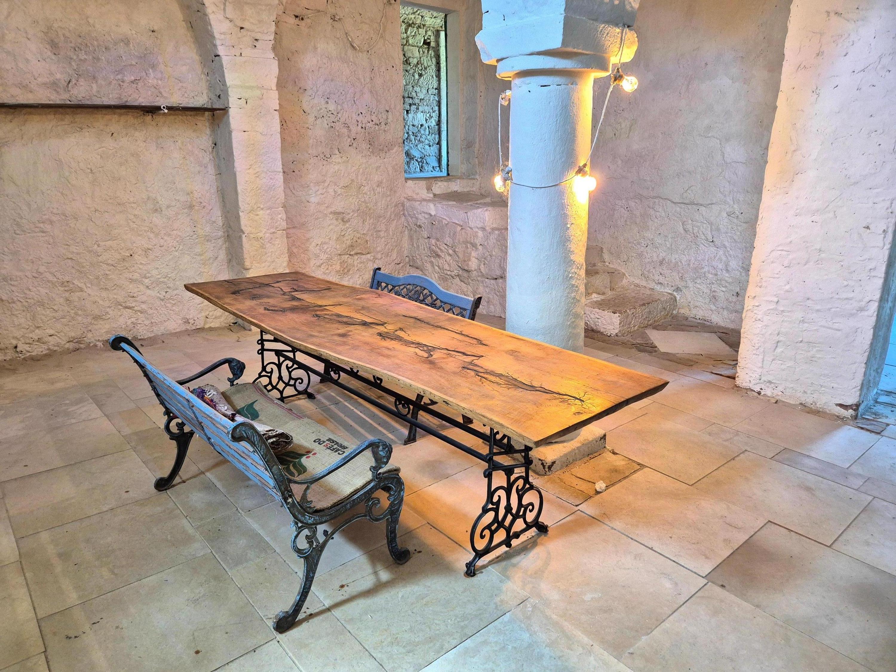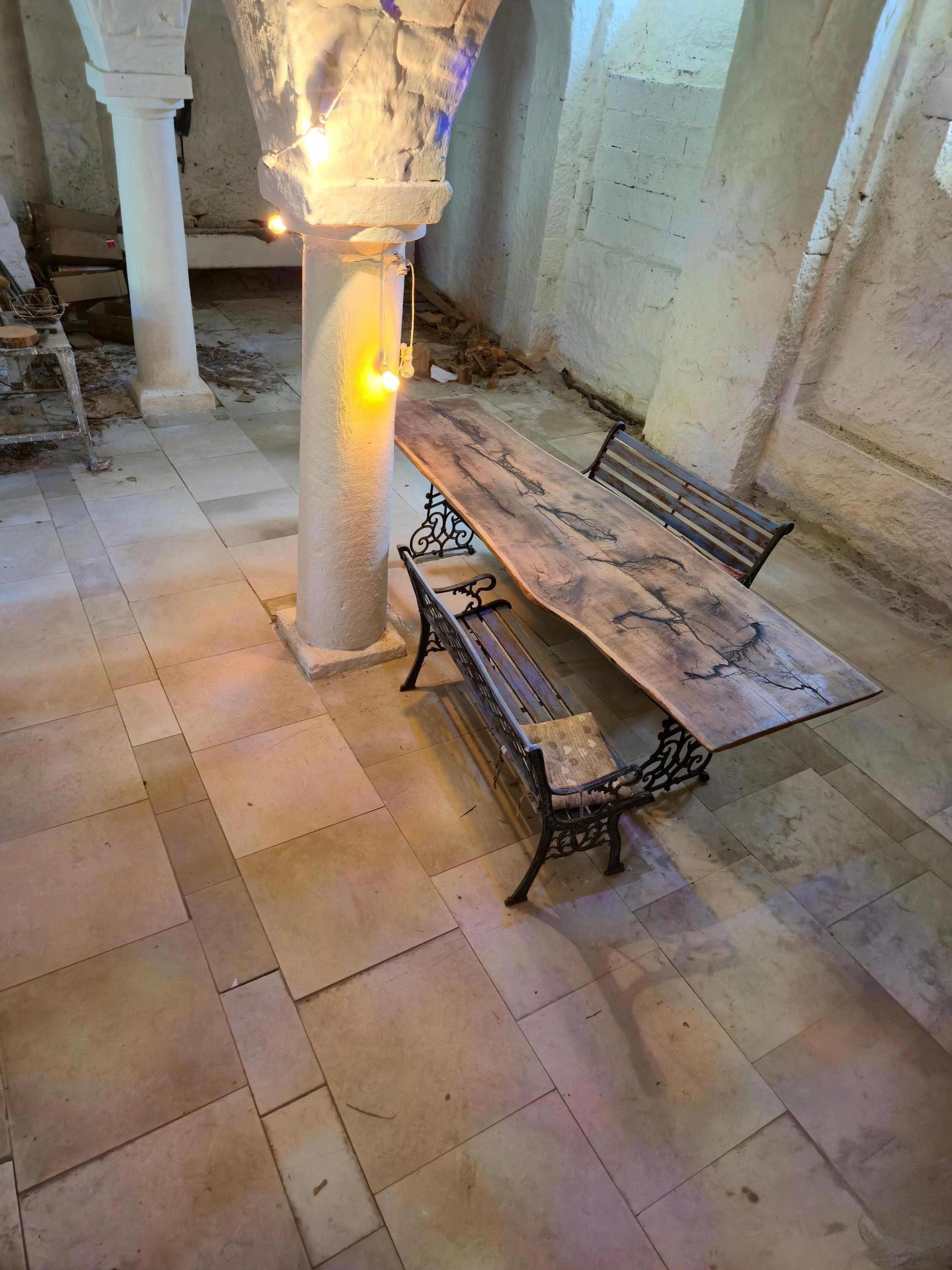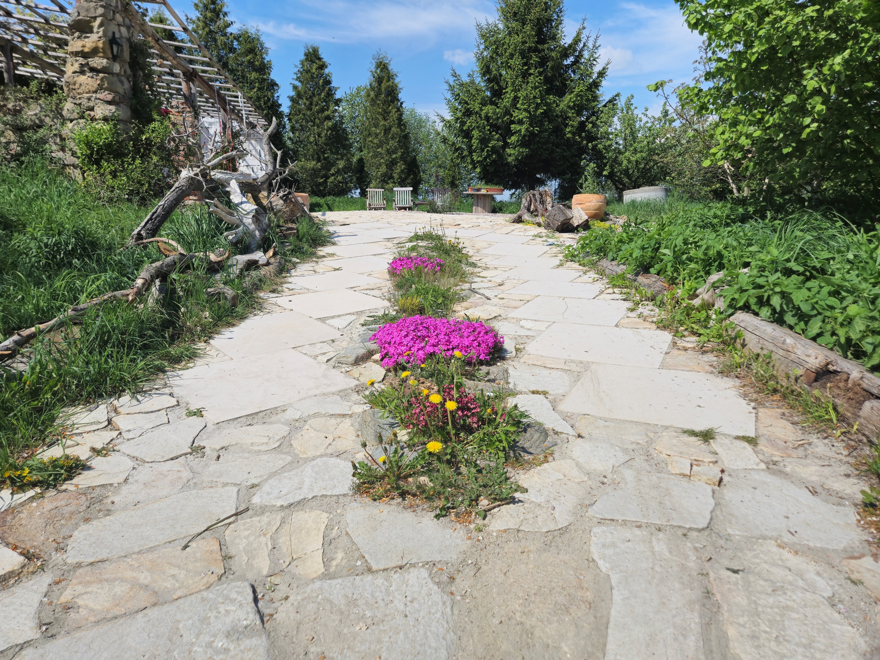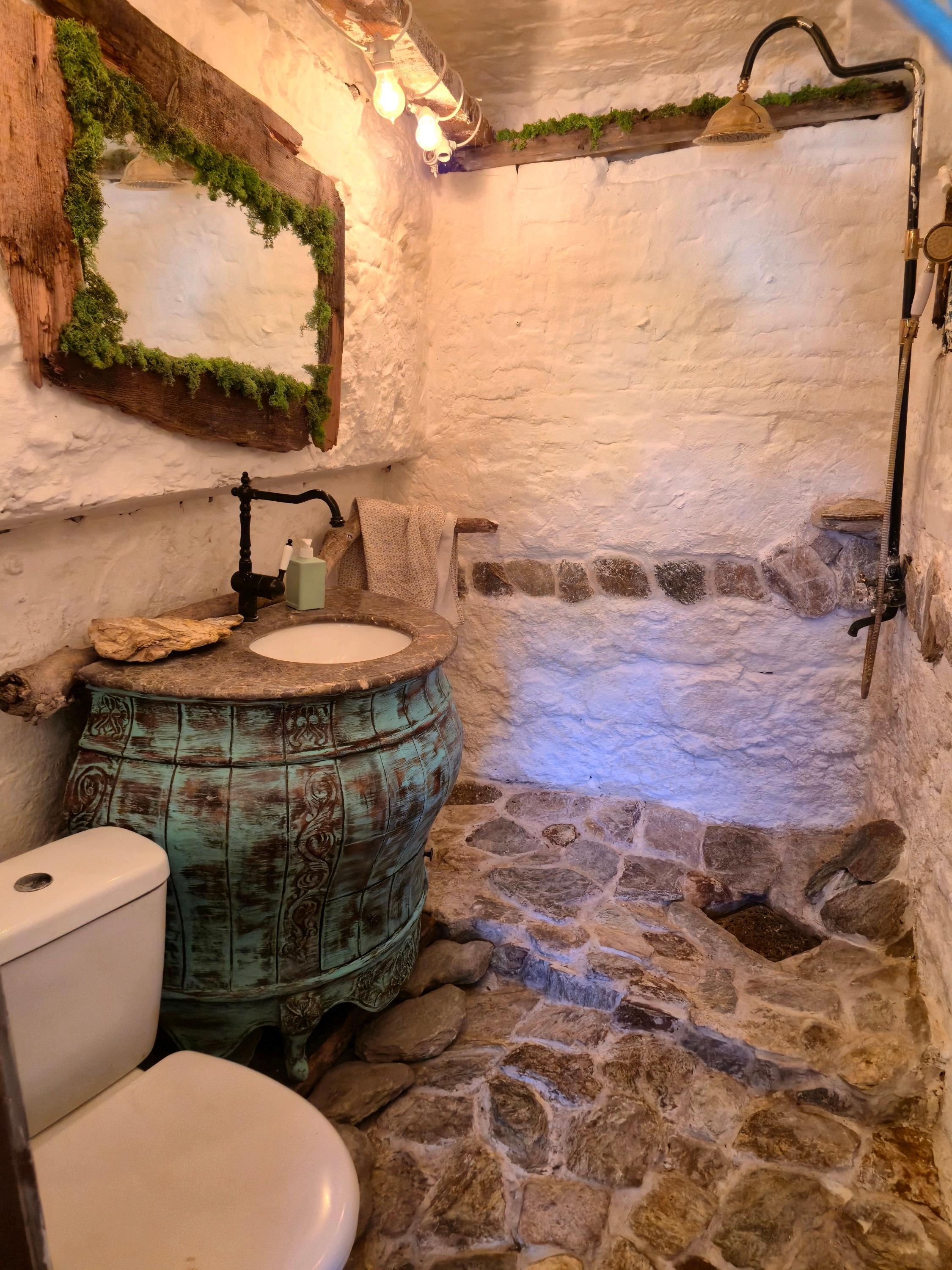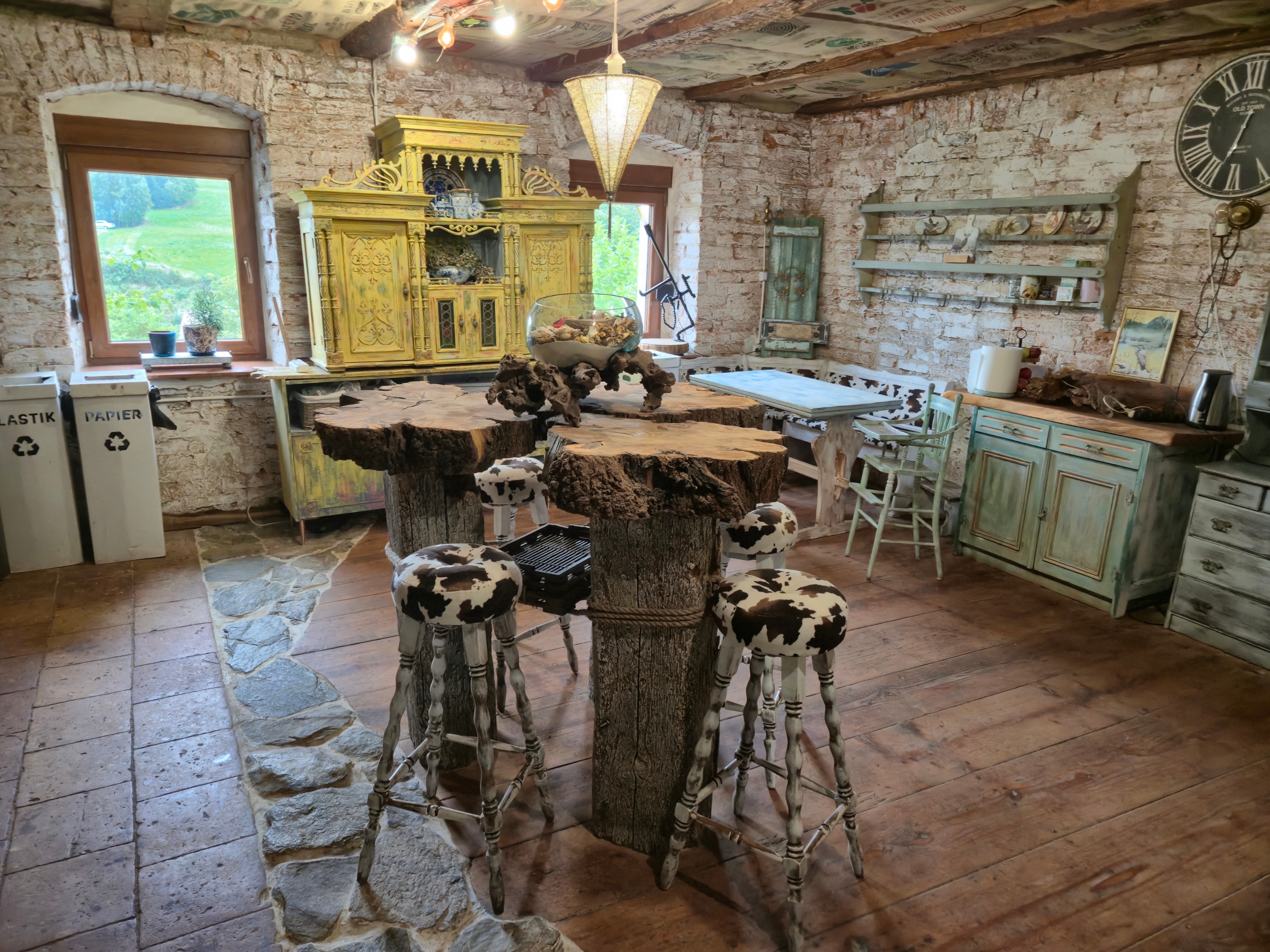 Na posesji znajduje się również stajnia z oryginalnymi sklepieniami krzyżowymi – obecnie w trakcie renowacji z przeznaczeniem na salon kominkowy i strefę SPA. Obok domu znajdują się nastrojowe kamienne ruiny, które pełnią funkcję patio – idealne miejsce do wypoczynku.