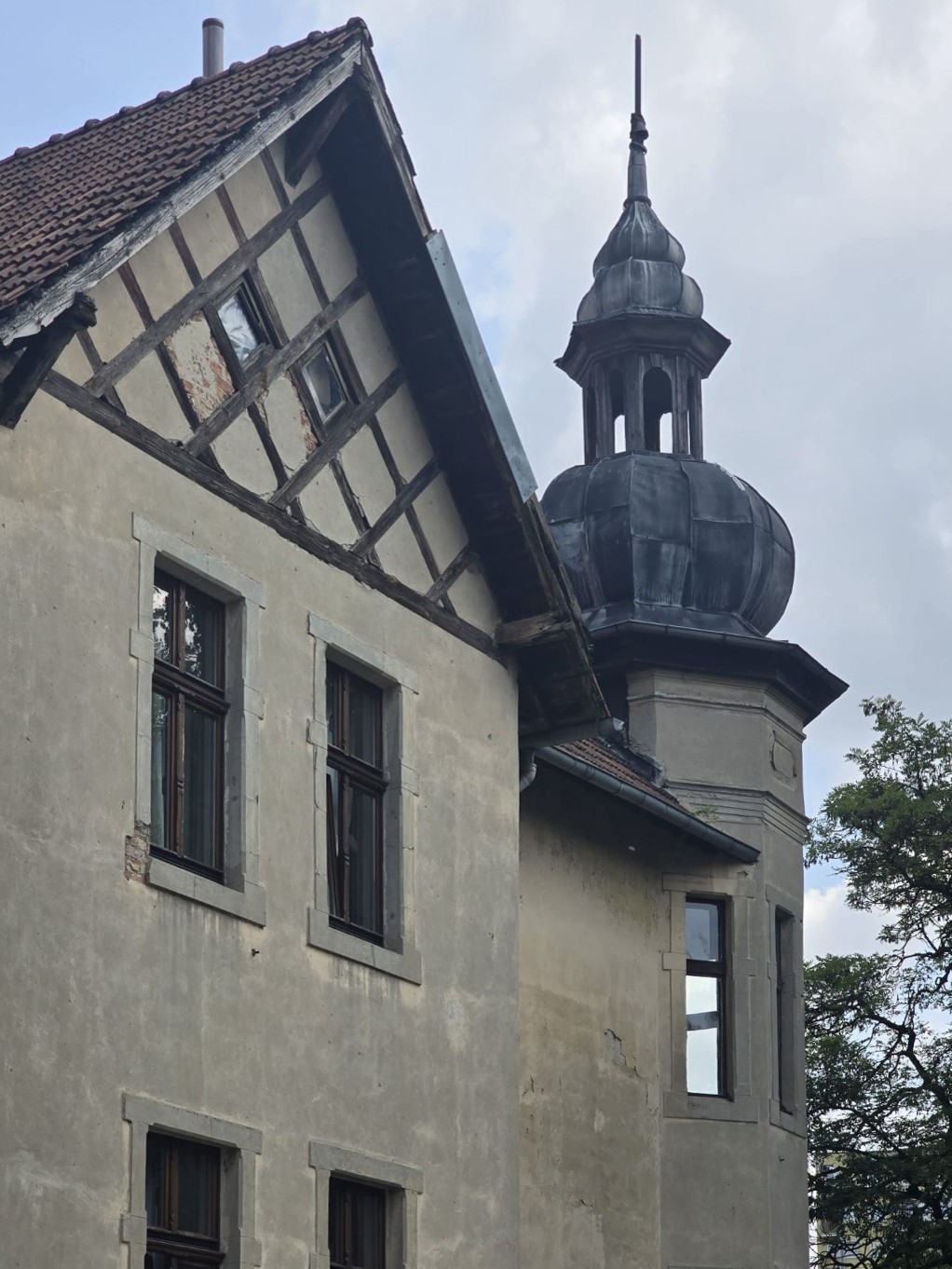 Budynek posiada także strych z ogromnym potencjałem i charakterystyczną wieżyczką . (wysokość w najwyższym punkcie strychu to ok. 6m) .