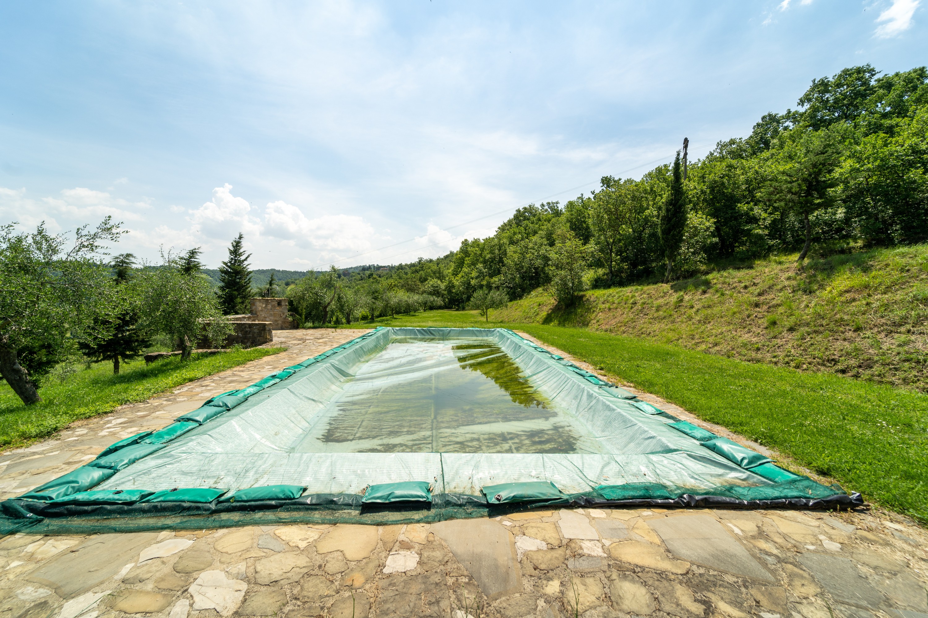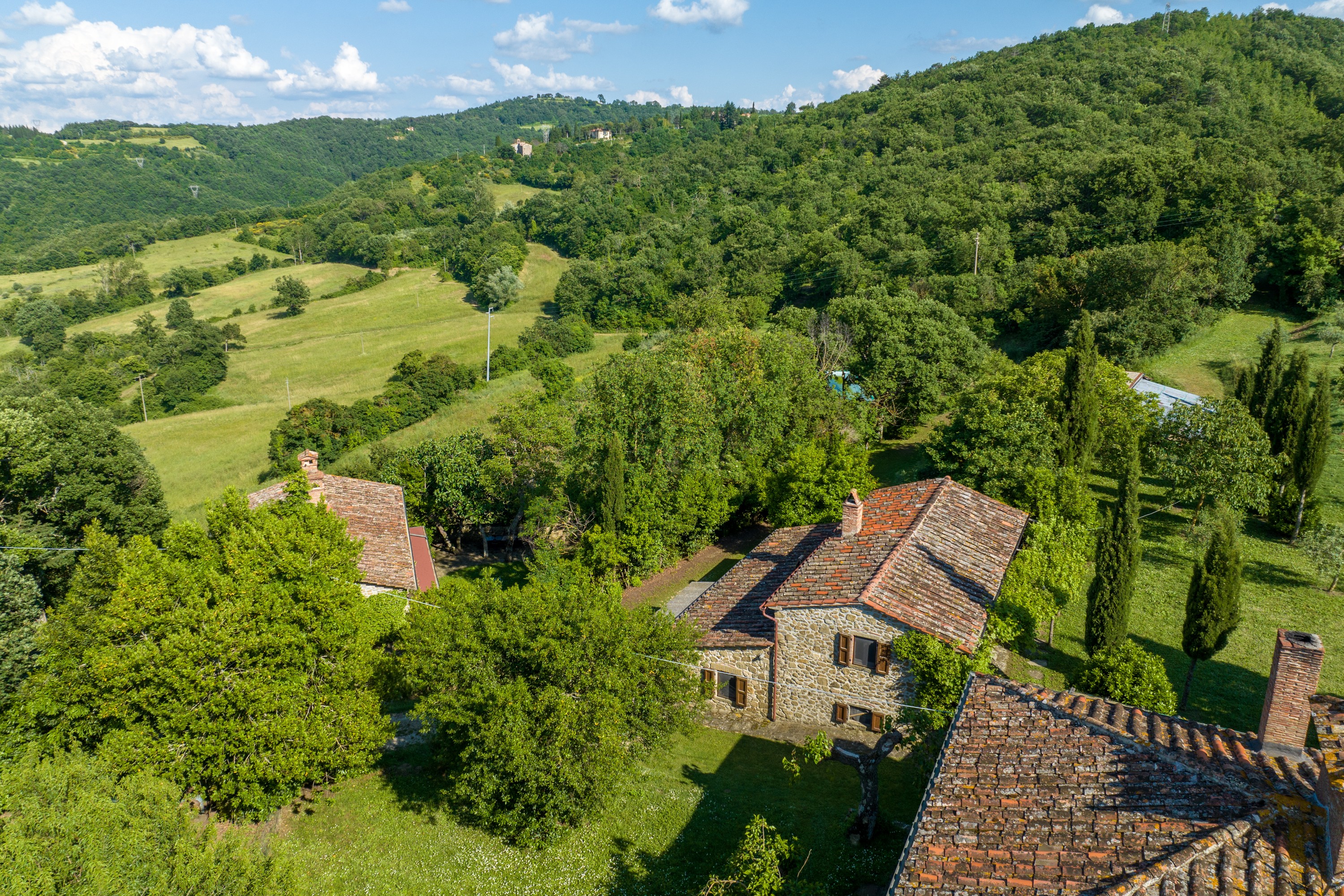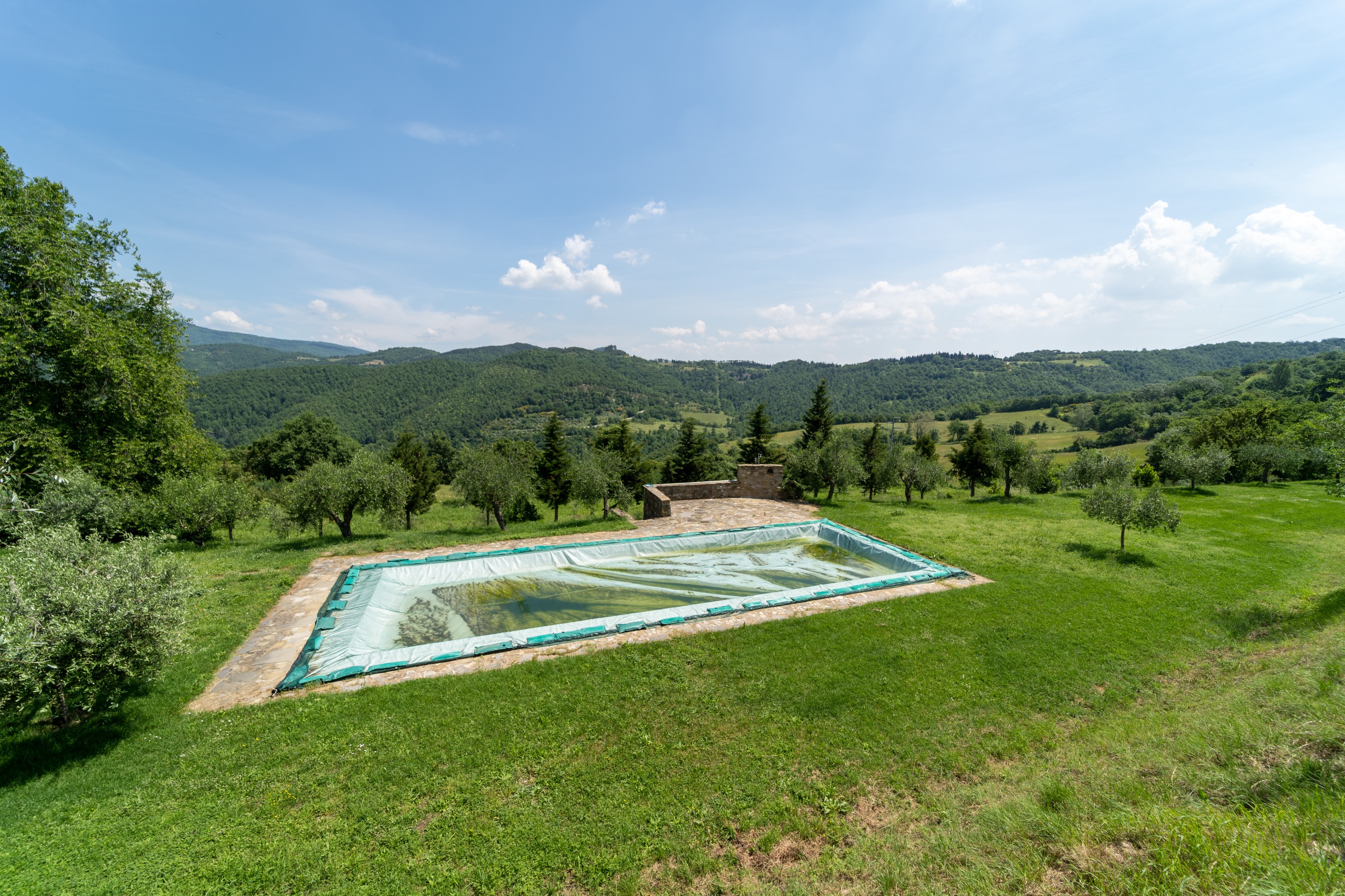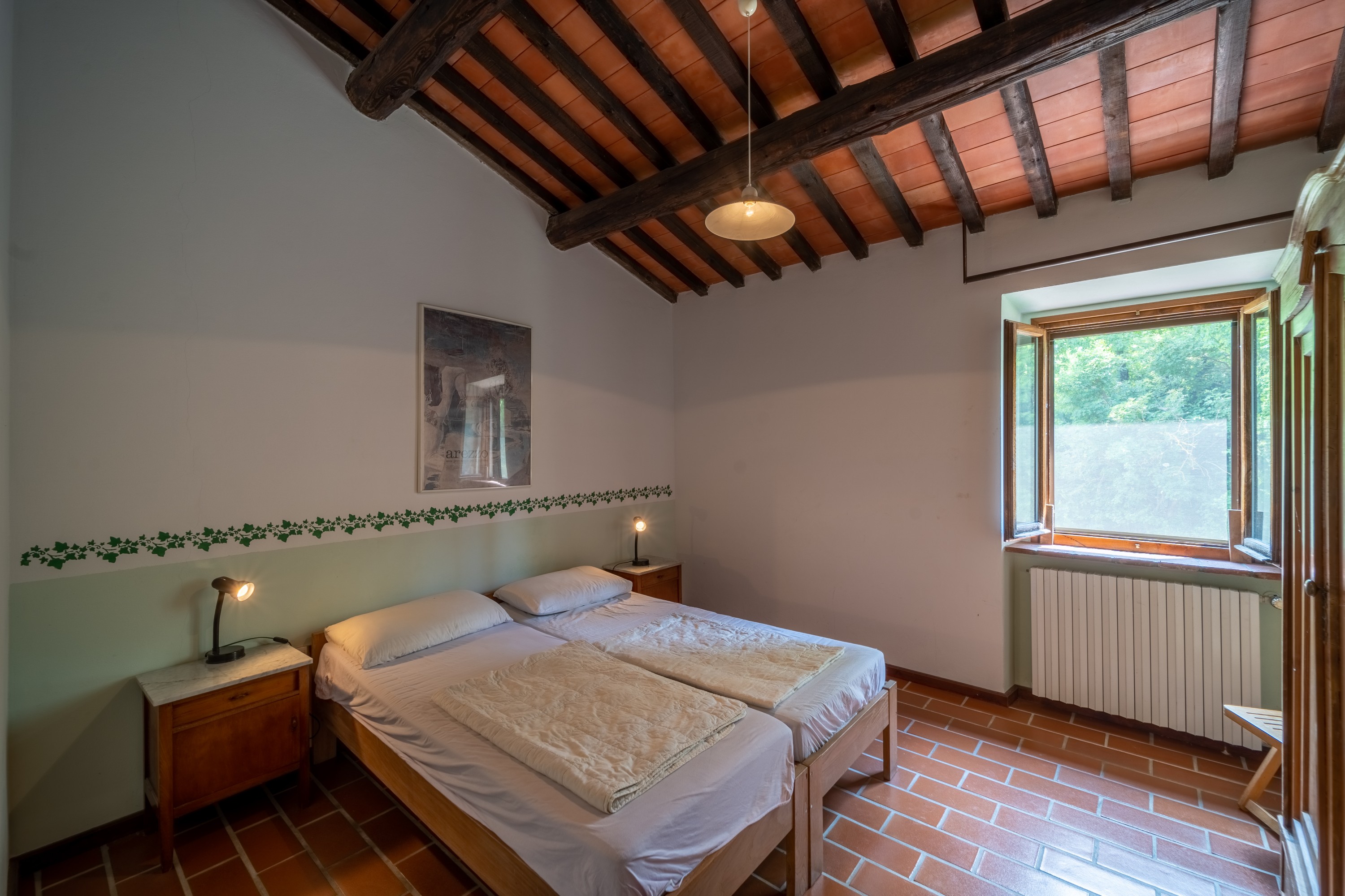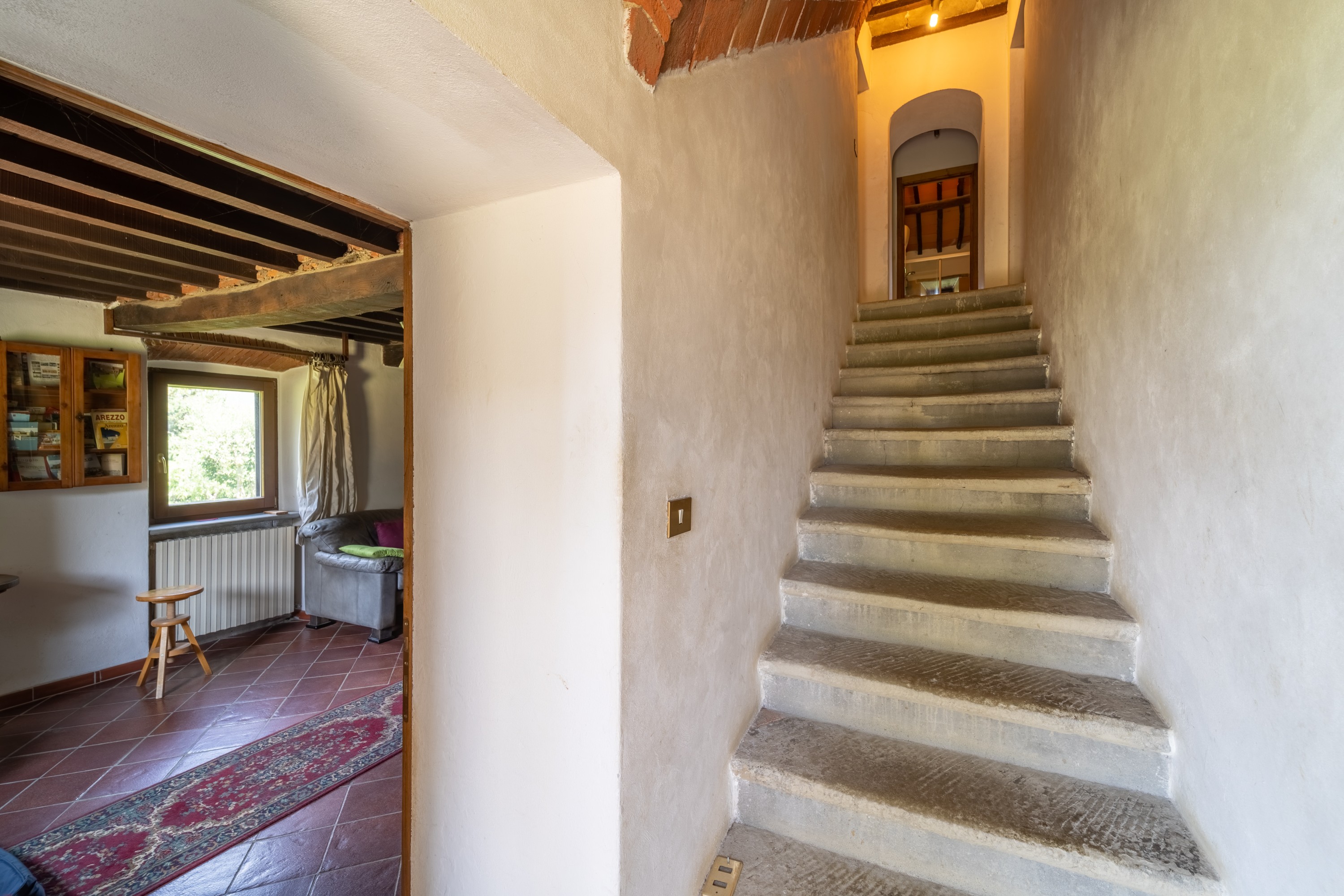 Dom główny ma dwa poziomy. Na parterze znajduje się przestronna kuchnia z jadalnią, salon z kominkiem, gabinet oraz łazienka. Na piętrze są cztery sypialnie i druga łazienka. Dom jest zamieszkały, choć niektóre ulepszenia zwiększyłyby komfort i funkcjonalność. Z okien roztacza się szeroki widok na dolinę Arno.
