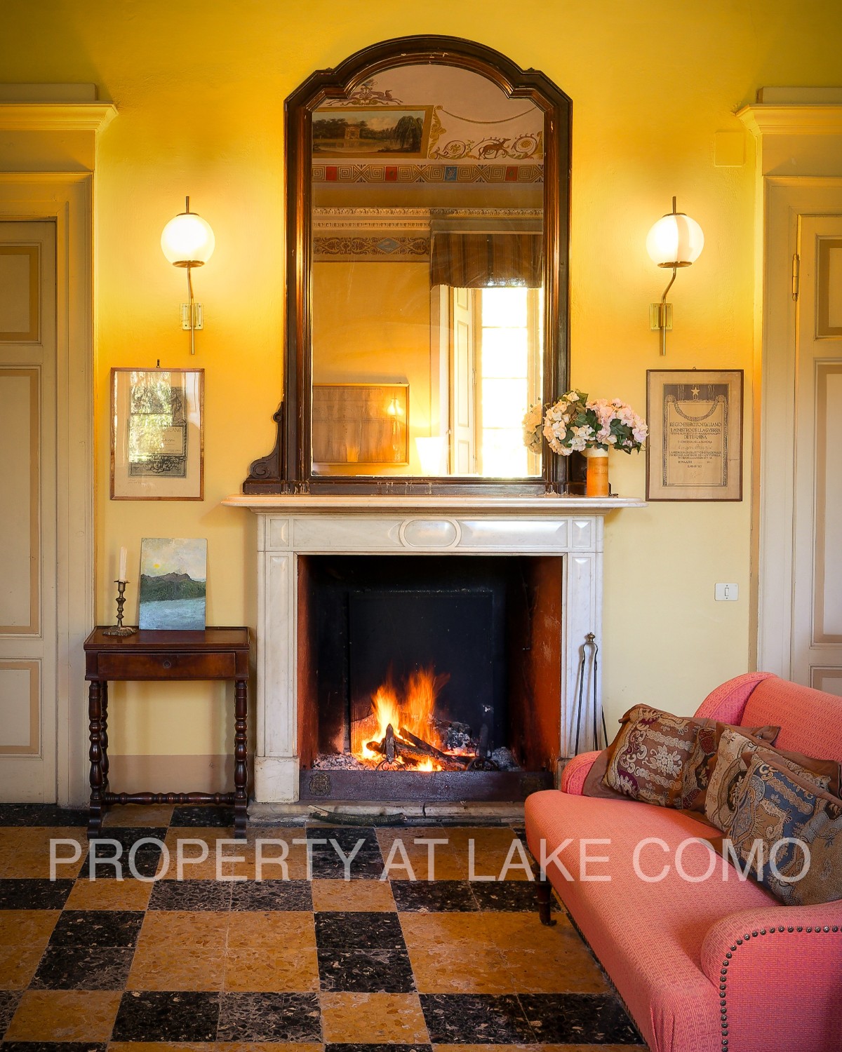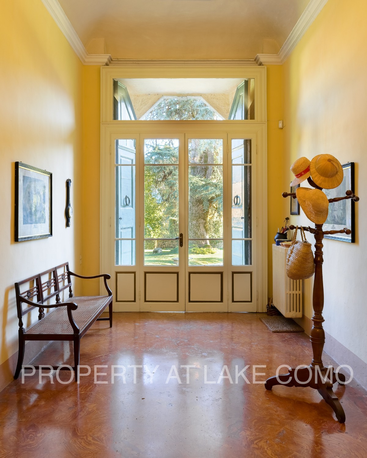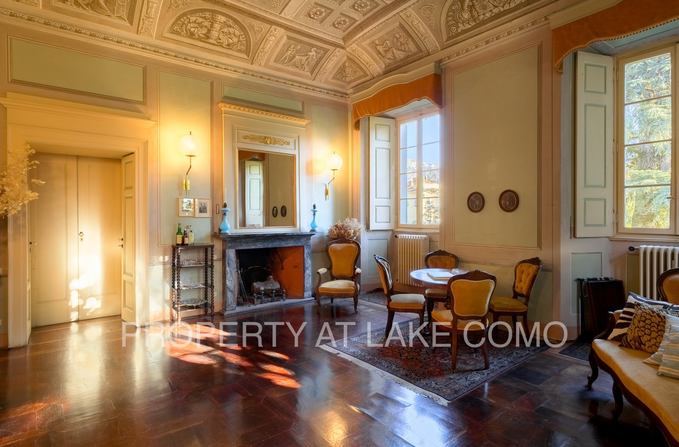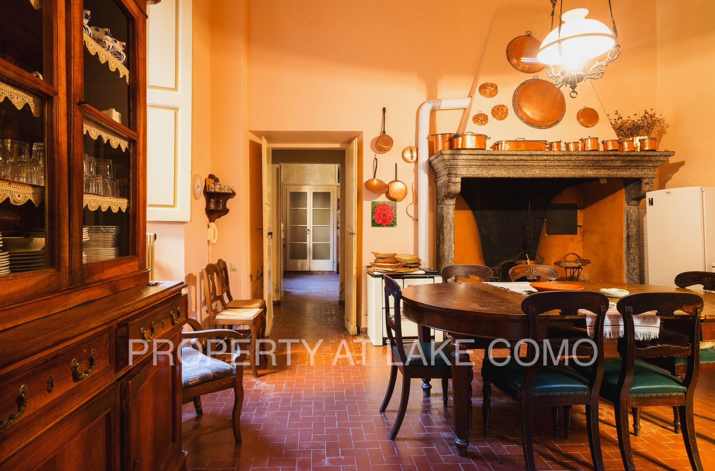 Z pięknej, żwirowej tarasy wchodzi się do imponującej i jasnej hali wejściowej z typową podłogą z cotto lombardzkiego. Parter składa się z trzech dużych salonów z otwartymi kominkami, jadalni, dużej kuchni z kominkiem i spiżarnią, biura oraz dwóch łazienek. Ten obszar charakteryzuje się historycznymi detalami, takimi jak wspaniałe freski na suficie, antyczne podłogi z drewna i weneckiego marmuru, oryginalne drzwi i kominki. Ściany łazienek pokryte są błyszczącym stiukiem, antycznym materiałem używanym w Pompejach.