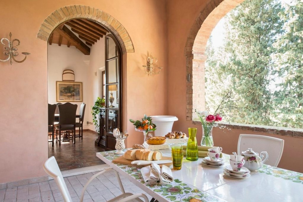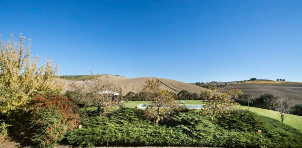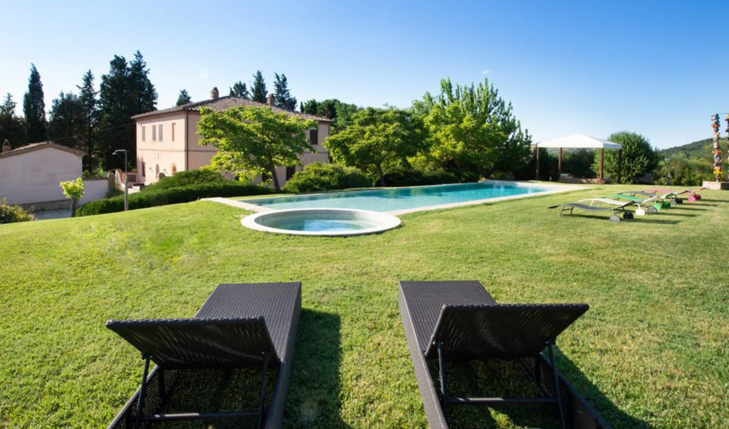 Na posesji o powierzchni około 6.000 m² znajduje się zadbany ogród oraz basen z hydromasażem i widokiem na wzgórza Val di Chiana. Weranda i loggia zapewniają nastrojowe miejsca do spędzania czasu na świeżym powietrzu.