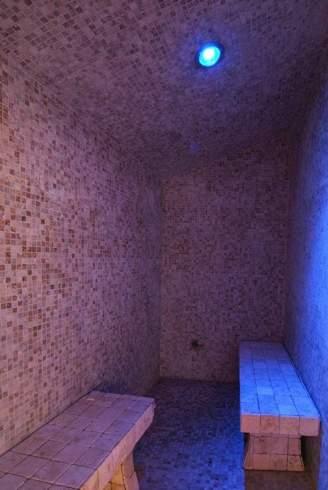 Budynek pomocniczy o powierzchni około 100 m², zlokalizowany przy dziedzińcu, pełni obecnie funkcję strefy wellness i fitness. Duże przeszklenia, prywatna łazienka oraz łaźnia parowa tworzą idealne miejsce do relaksu w otoczeniu przyrody.