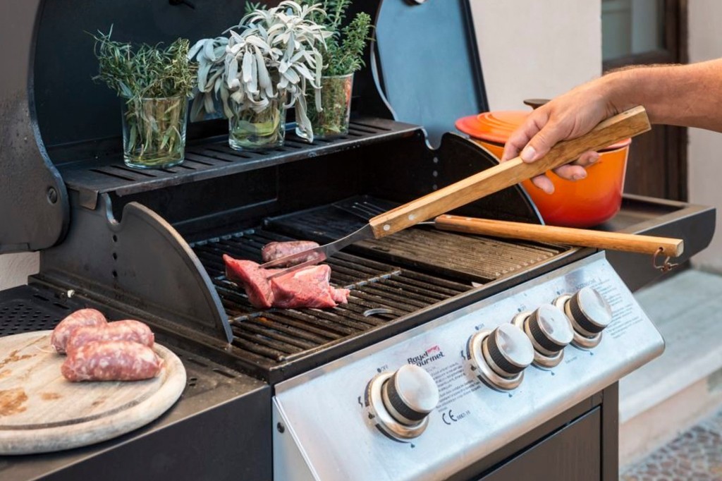 Zewnętrzne schody prowadzą na piętro, gdzie znajdują się kolejne przestrzenie mieszkalne z zabytkowymi kominkami, druga kuchnia z jadalnią oraz duży taras z panoramicznym widokiem. Trzy sypialnie z łazienkami zostały wykończone materiałami wysokiej jakości.
