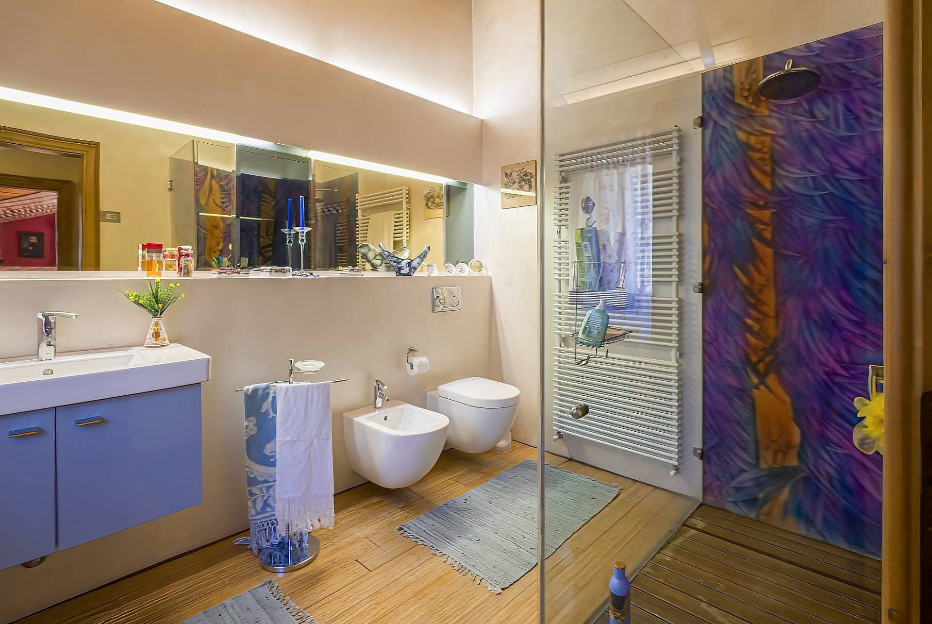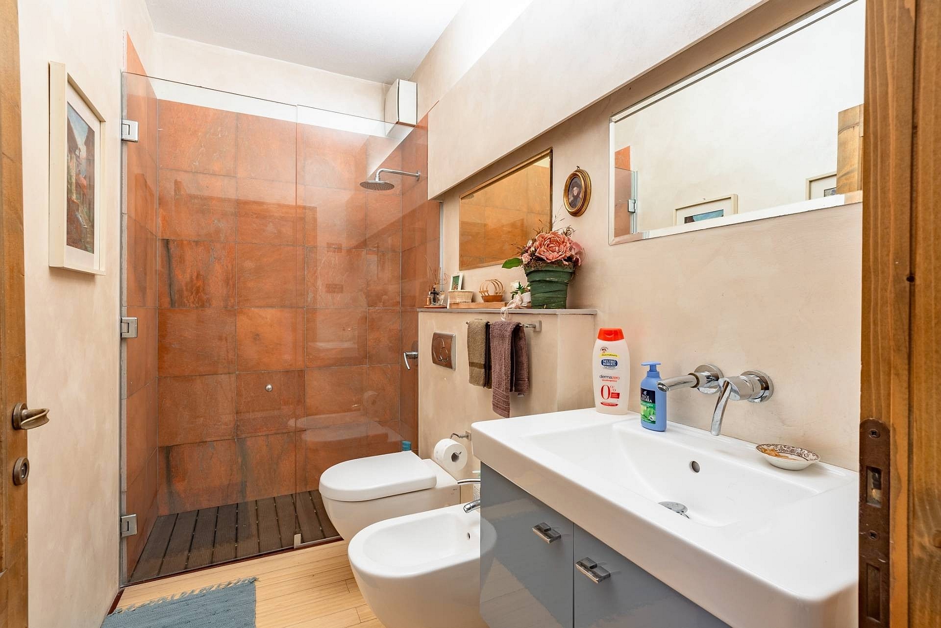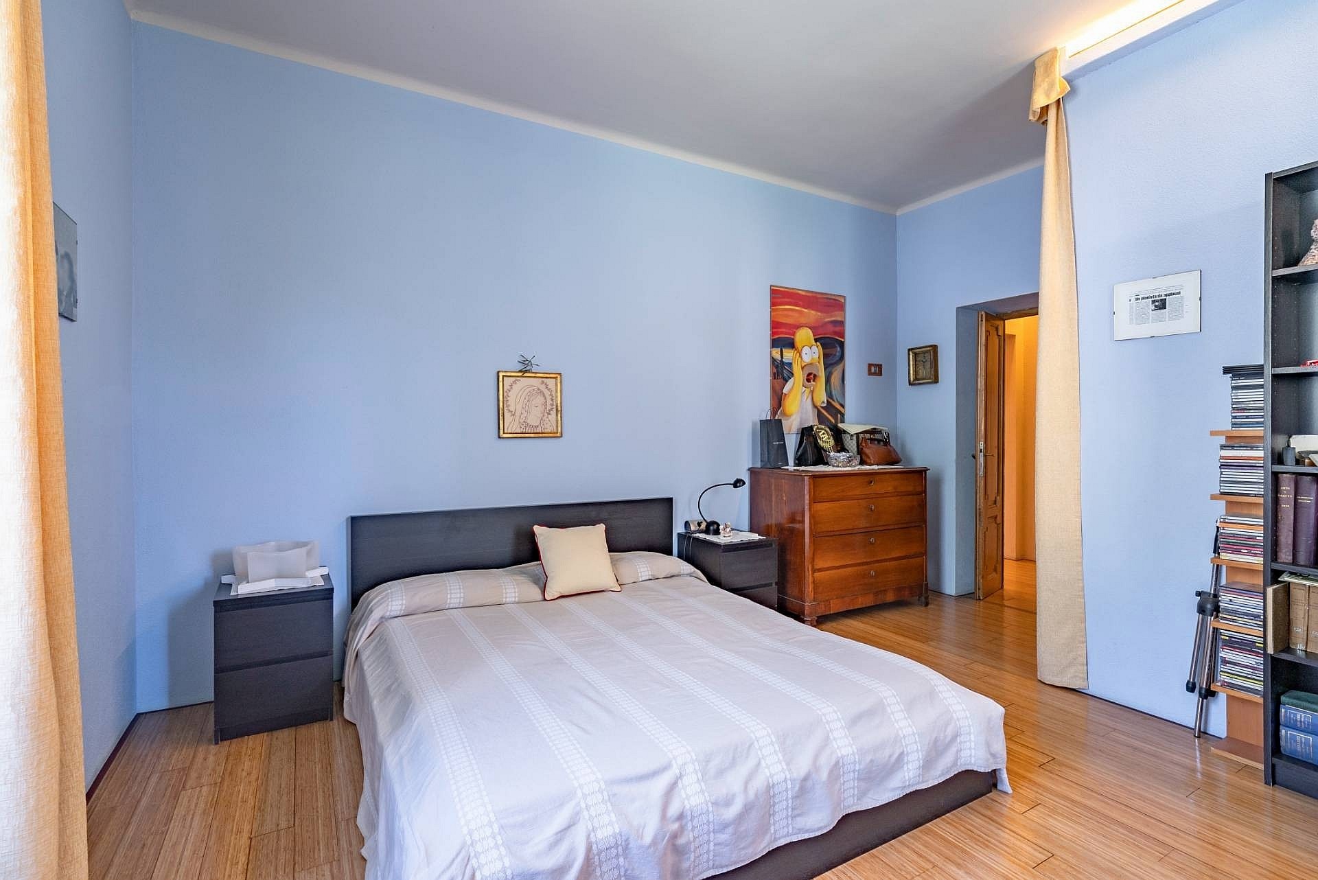 Apartament główny, ozdobiony freskami z początku XX wieku, posiada prywatną łazienkę z wanną z hydromasażem i prysznicem, garderobę oraz balkon z widokiem na ogród i jezioro. Sypialnie gościnne wyposażone są w łazienki z prysznicem, a jedna z nich posiada również własną łazienkę. Poddasze wyróżnia się wysokim sufitem z odsłoniętymi belkami stropowymi oraz przestronnym salonem z kominkiem, dwoma tarasami i prywatną łazienką. Taras dachowy oferuje widok na jezioro i może być wykorzystywany jako miejsce wypoczynku.