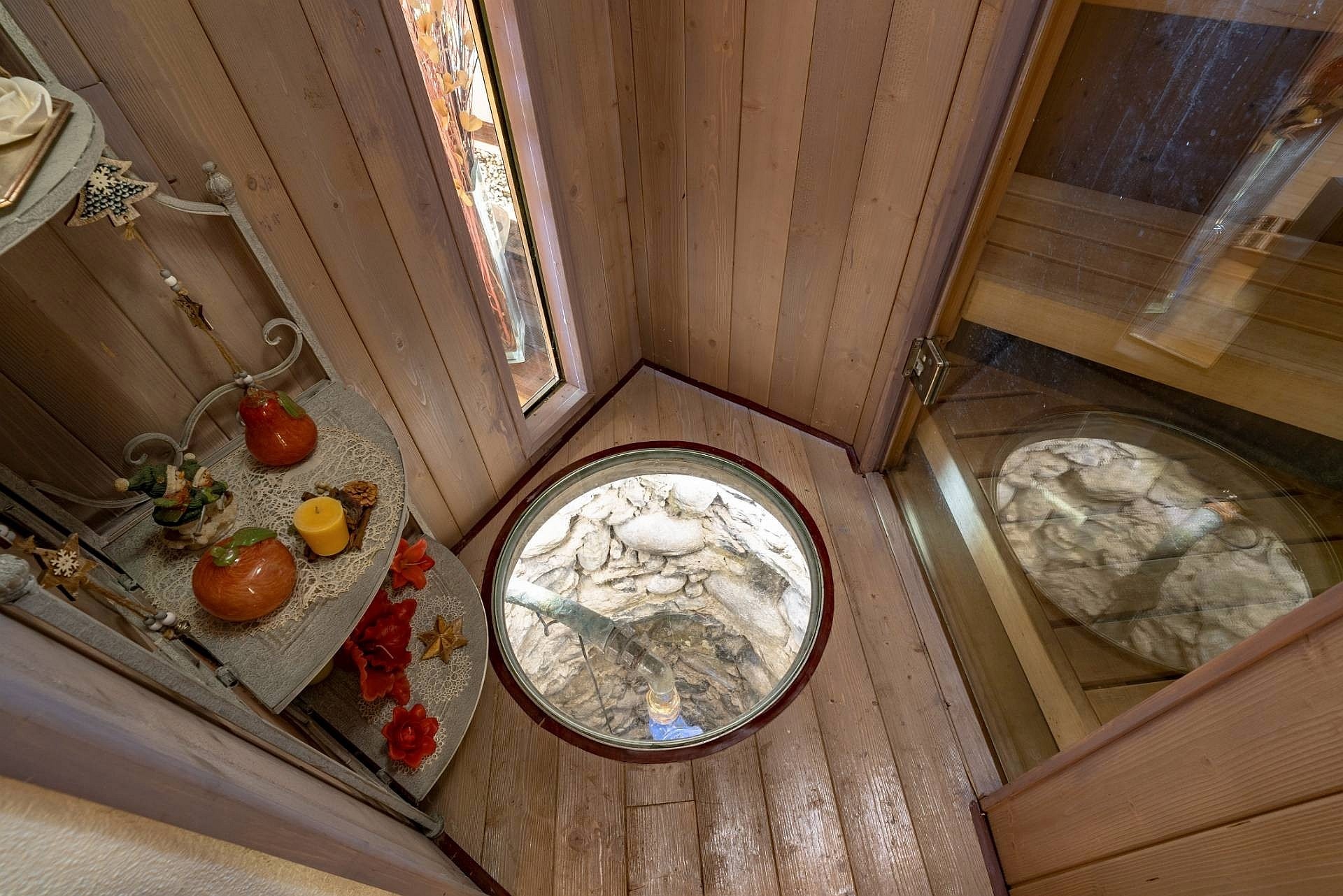 W piwnicy znajduje się pokój rekreacyjny, niewielkie spa z sauną dla 4–6 osób, prysznic oraz basen o długości 12 m i szerokości 3 m, wyposażony w przeciwprąd. Część wypoczynkowa pod ogrodem zapewnia prywatność. Wszystkie podłogi w domu wykonane są z bambusa, a elementy wykończenia obejmują marmurowe detale przy kolumnach zewnętrznych i kominkach.