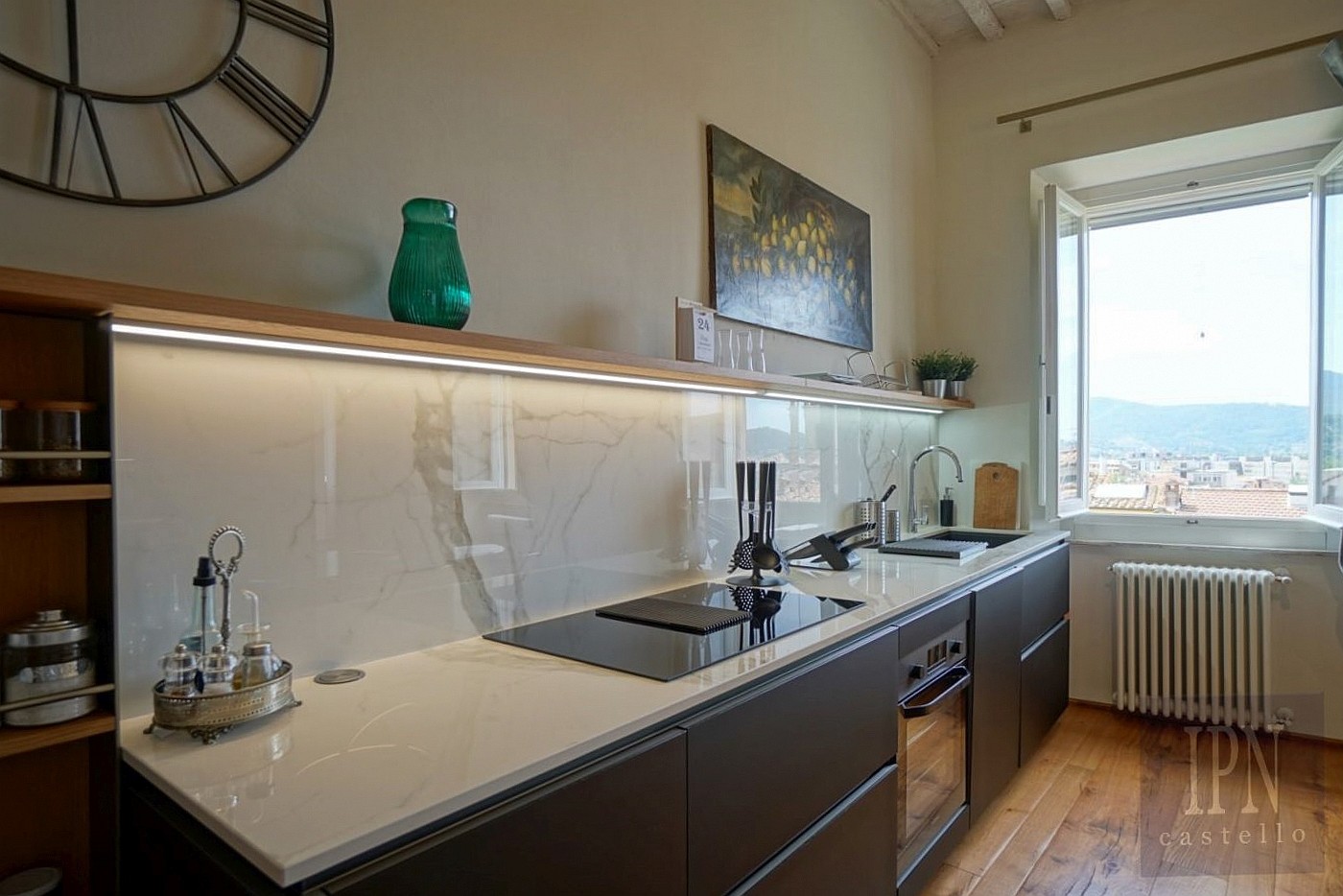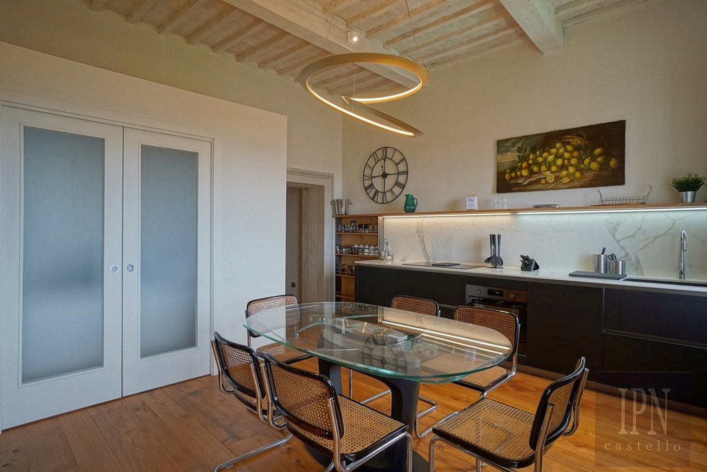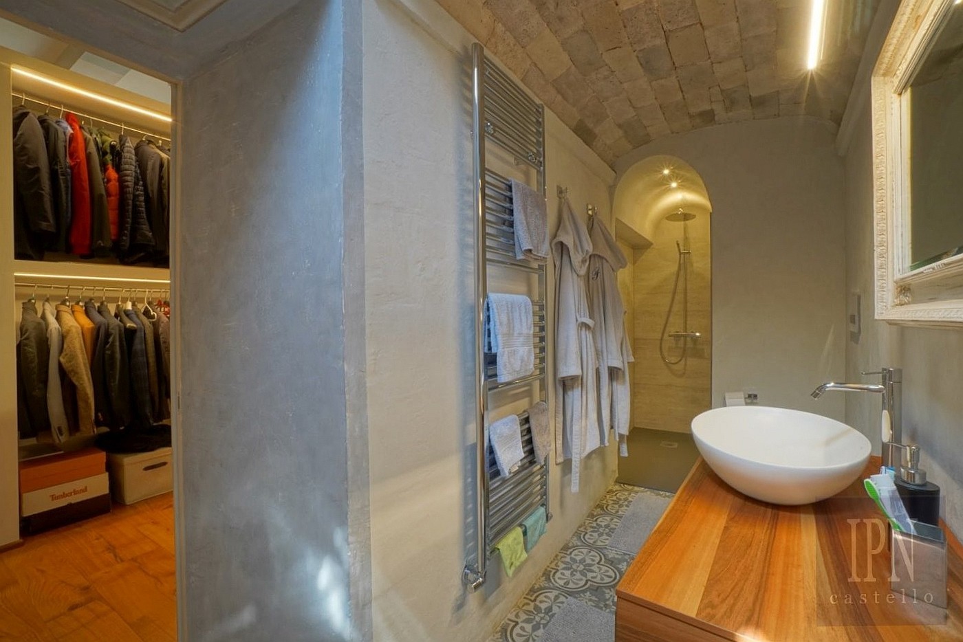 Mieszkanie posiada wysokowolutową kaplicę modlitewną z widocznymi freskami oraz duży salon z odrestaurowanymi dębowymi podłogami. Nowoczesna kuchnia i jadalnia łączą się z drugim salonem, który również zdobią wyjątkowe freski. Sypialnia zawiera freski oraz garderobę z nowoczesną łazienką z prysznicem.