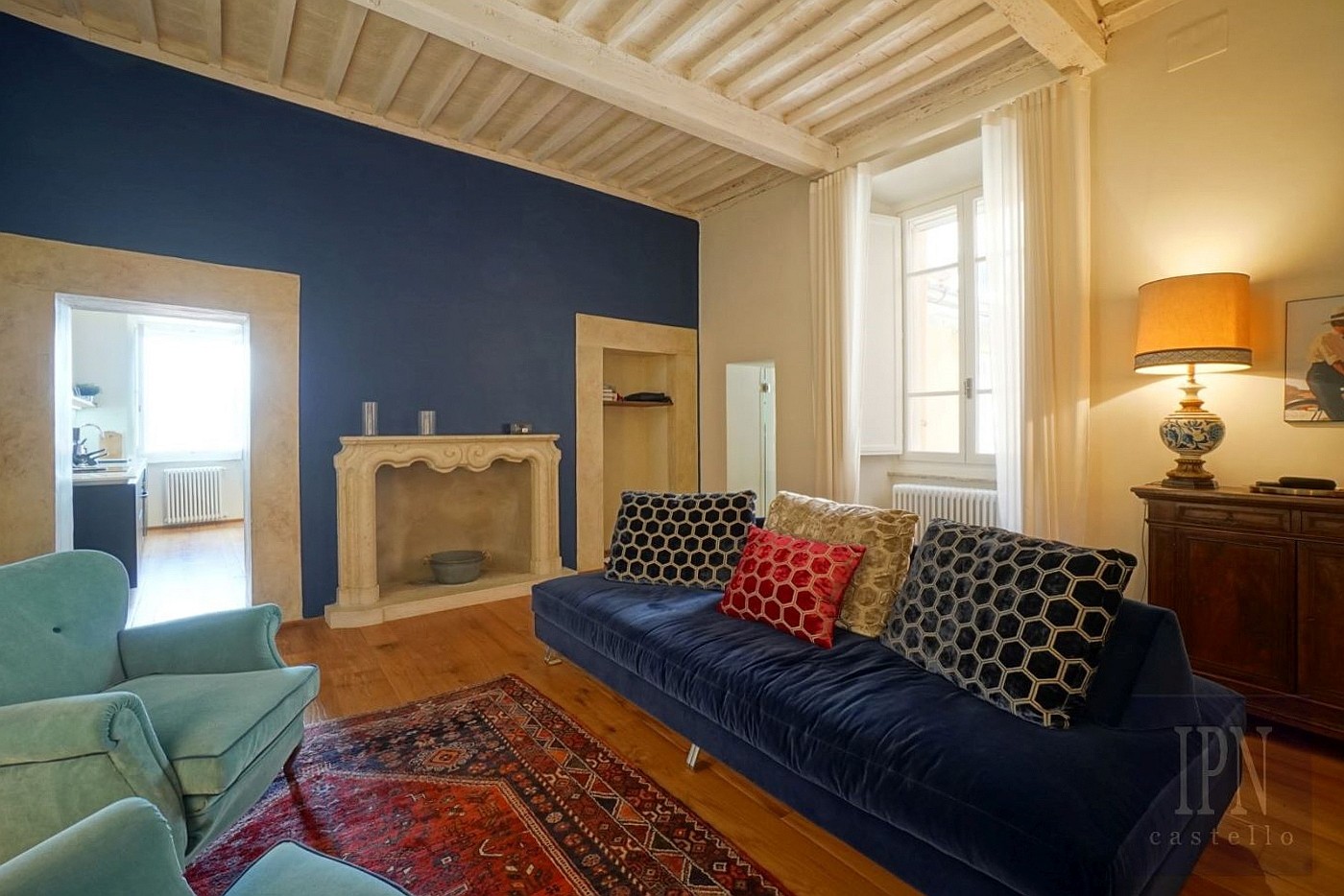 Często z zewnątrz nie dostrzega się cennego i wspaniałego wnętrza starych włoskich pałaców znajdujących się w centrach miast. Mieszkanie, znajdujące się na trzecim i ostatnim piętrze tego trzykondygnacyjnego pałacu, zorientowanego na południowy wschód, mieści się w spokojnej, wyższej części Via Mazzini, w samym sercu historycznego centrum Arezzo. Za niepozorną fasadą kryją się cenne wnętrza oraz wpisana do rejestru zabytków klatka schodowa. Kolejną szczególną cechą jest przylegający budynek sąsiadujący, będący domem narodzin słynnego włoskiego architekta dworskiego i malarza Giorgio Vasariego, który urodził się tutaj 30 lipca 1511 roku.
