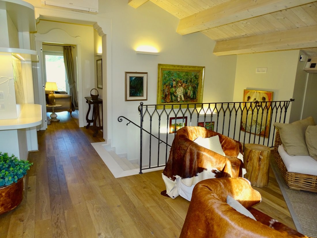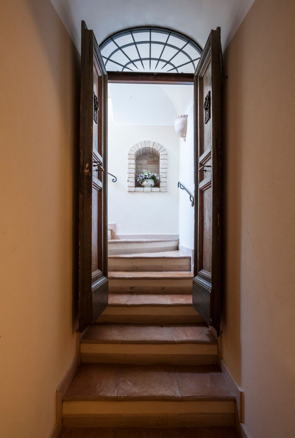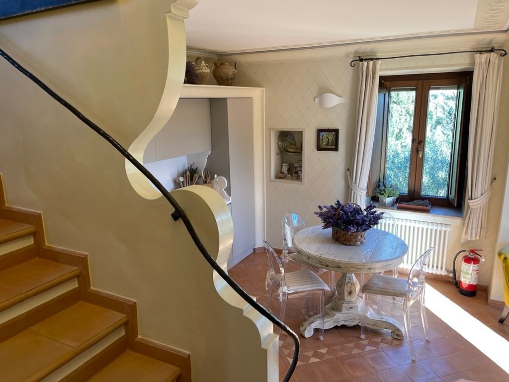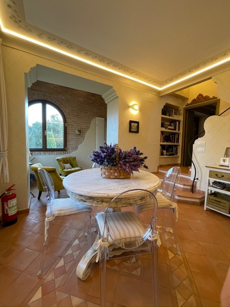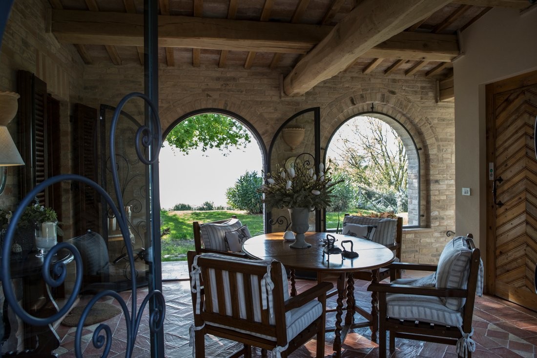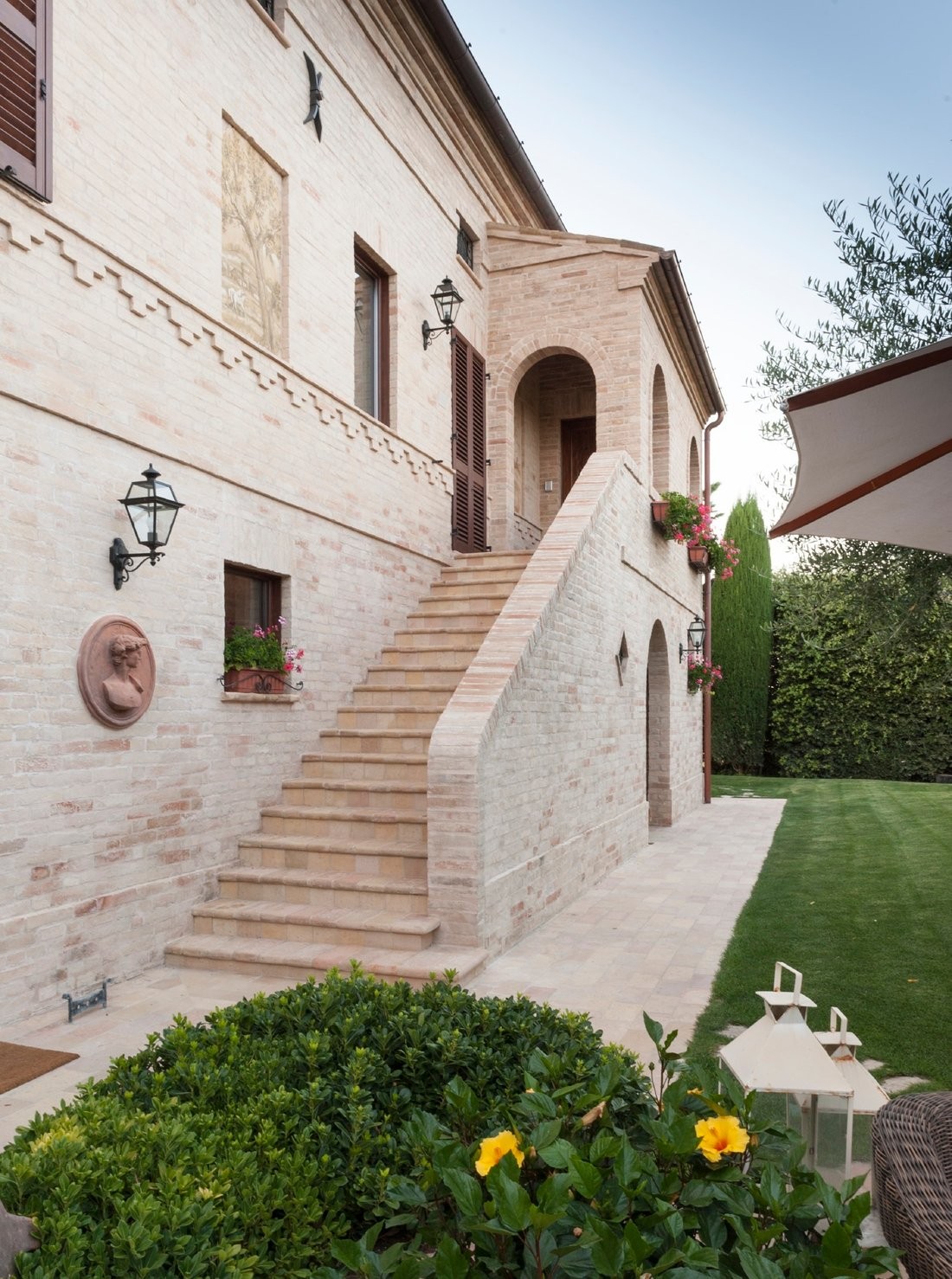 Dom główny został już wyremontowany. Rozciąga się na pięciu poziomach i obejmuje sześć sypialni, sześć łazienek, kilka pomieszczeń reprezentacyjnych, dwie w pełni wyposażone kuchnie, dziedziniec wewnętrzny, windę towarową, garaż podziemny, piwnicę na wino oraz saunę. Widok rozciąga się na krajobrazy regionu Marche aż po dachy Fermo. Na zewnątrz: prywatny gaj oliwny, zaprojektowane ogrody z altaną, tarasy, kuchnia zewnętrzna, grill z kamienia, jacuzzi i basen typu infinity.