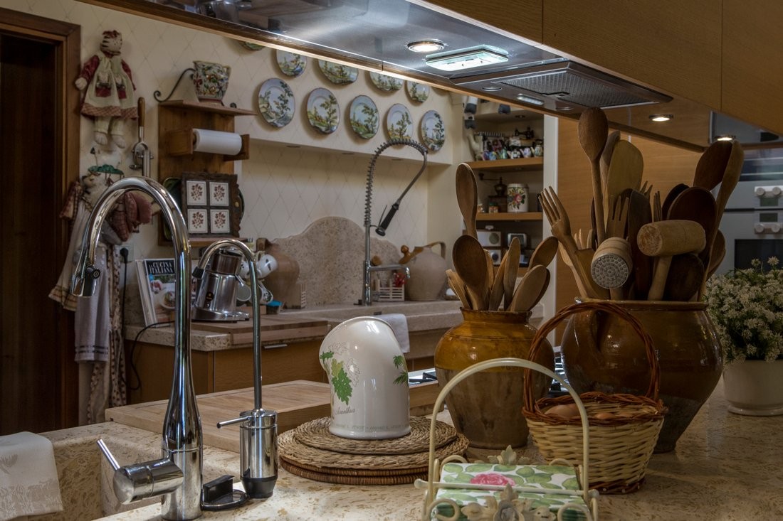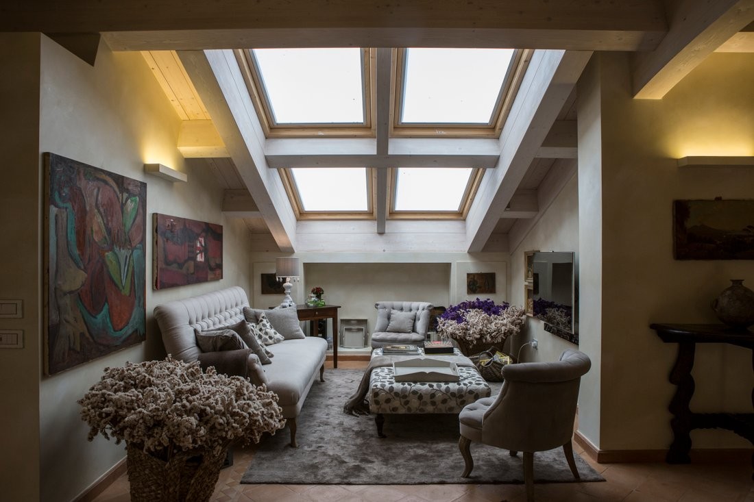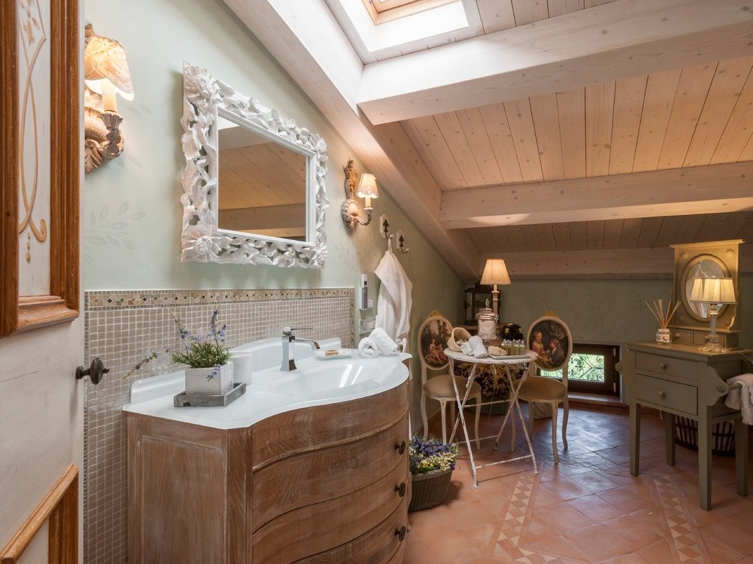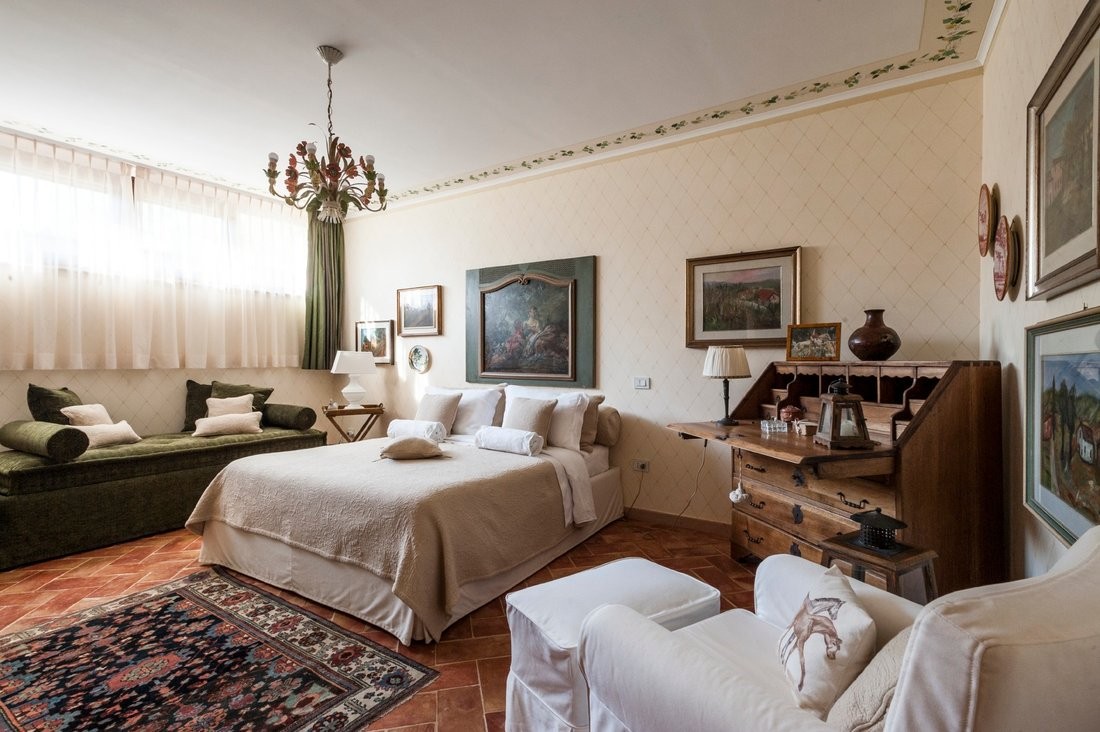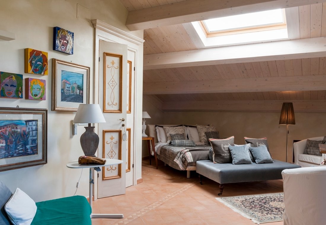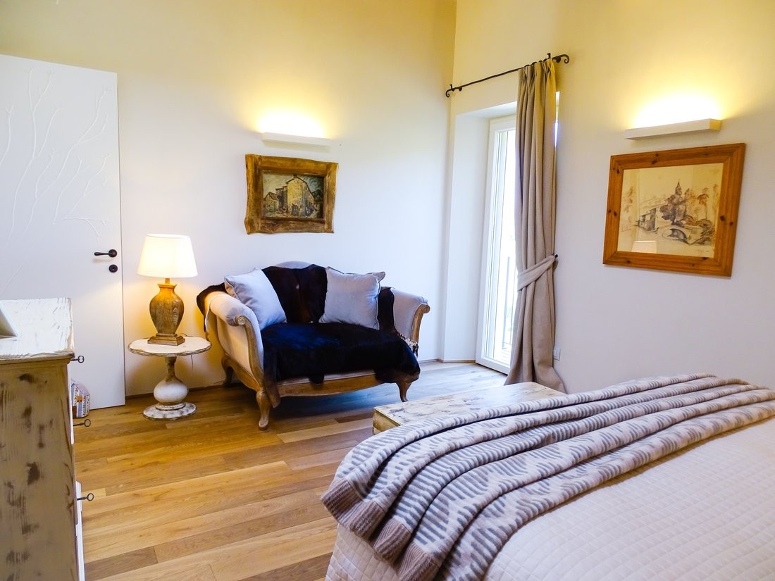 Dom główny został już wyremontowany. Rozciąga się na pięciu poziomach i obejmuje sześć sypialni, sześć łazienek, kilka pomieszczeń reprezentacyjnych, dwie w pełni wyposażone kuchnie, dziedziniec wewnętrzny, windę towarową, garaż podziemny, piwnicę na wino oraz saunę. Widok rozciąga się na krajobrazy regionu Marche aż po dachy Fermo. Na zewnątrz: prywatny gaj oliwny, zaprojektowane ogrody z altaną, tarasy, kuchnia zewnętrzna, grill z kamienia, jacuzzi i basen typu infinity.