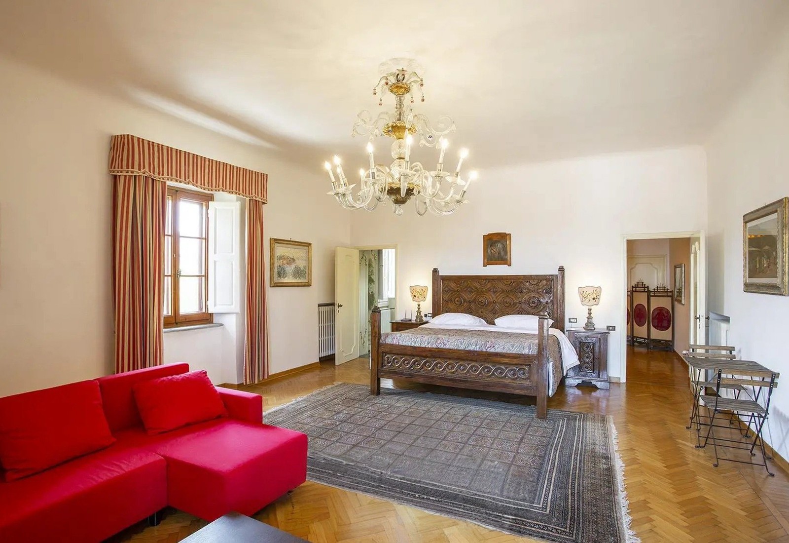 Willa obejmuje około 980 m² powierzchni mieszkalnej. Główna suite ma 70 m², z łazienką, garderobą i widokiem na Florencję; drugi pokój ma 35 m² i wychodzi na park; trzy niezależne apartamenty mają odpowiednio 80, 150 i 220 m². Największy apartament posiada prywatny taras z zadaszoną przestrzenią do spożywania posiłków na świeżym powietrzu. Wszystkie jednostki mają w pełni wyposażone kuchnie, łazienki i niezależną klimatyzację. Układ pomieszczeń pozwala zarówno na spójną rezydencję, jak i modułowe wykorzystanie dla gości bez potrzeby ingerencji w konstrukcję.