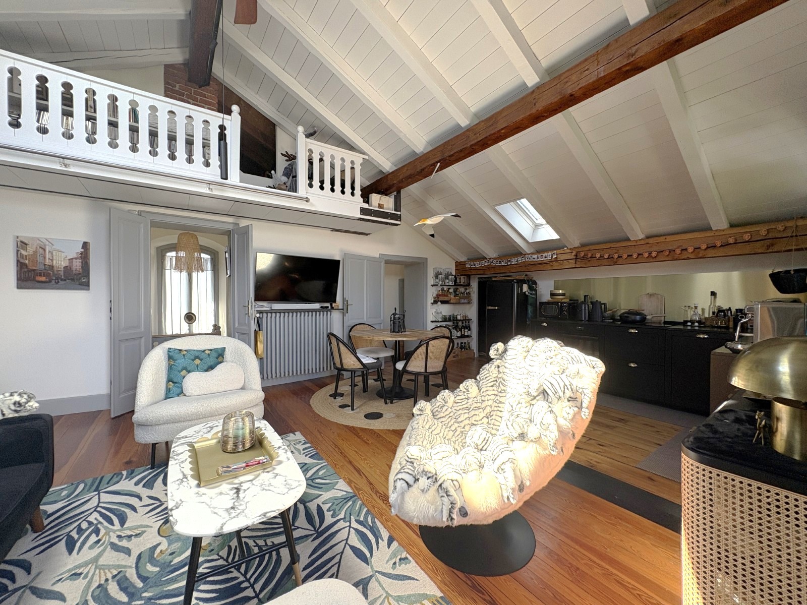 Strych (odnowiony w 2023 roku): Niezależny apartament z widocznymi belkami, balkonem z widokiem na jezioro, otwartą przestrzenią dzienną i kuchnią, dwoma sypialniami, łazienką, prywatną sauną i dodatkową przestrzenią.