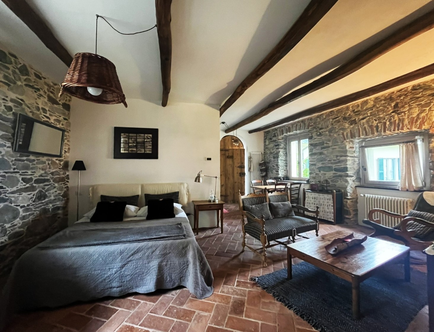 Posiadłość obejmuje główną willę, zależny budynek z kamienia oraz zadbany ogród z wiekowymi drzewami. Willa główna składa się z dwóch jednostek połączonych, ale również dostępnych oddzielnie, co sprawia, że nadaje się zarówno na prywatną rezydencję, jak i dom gościnny.