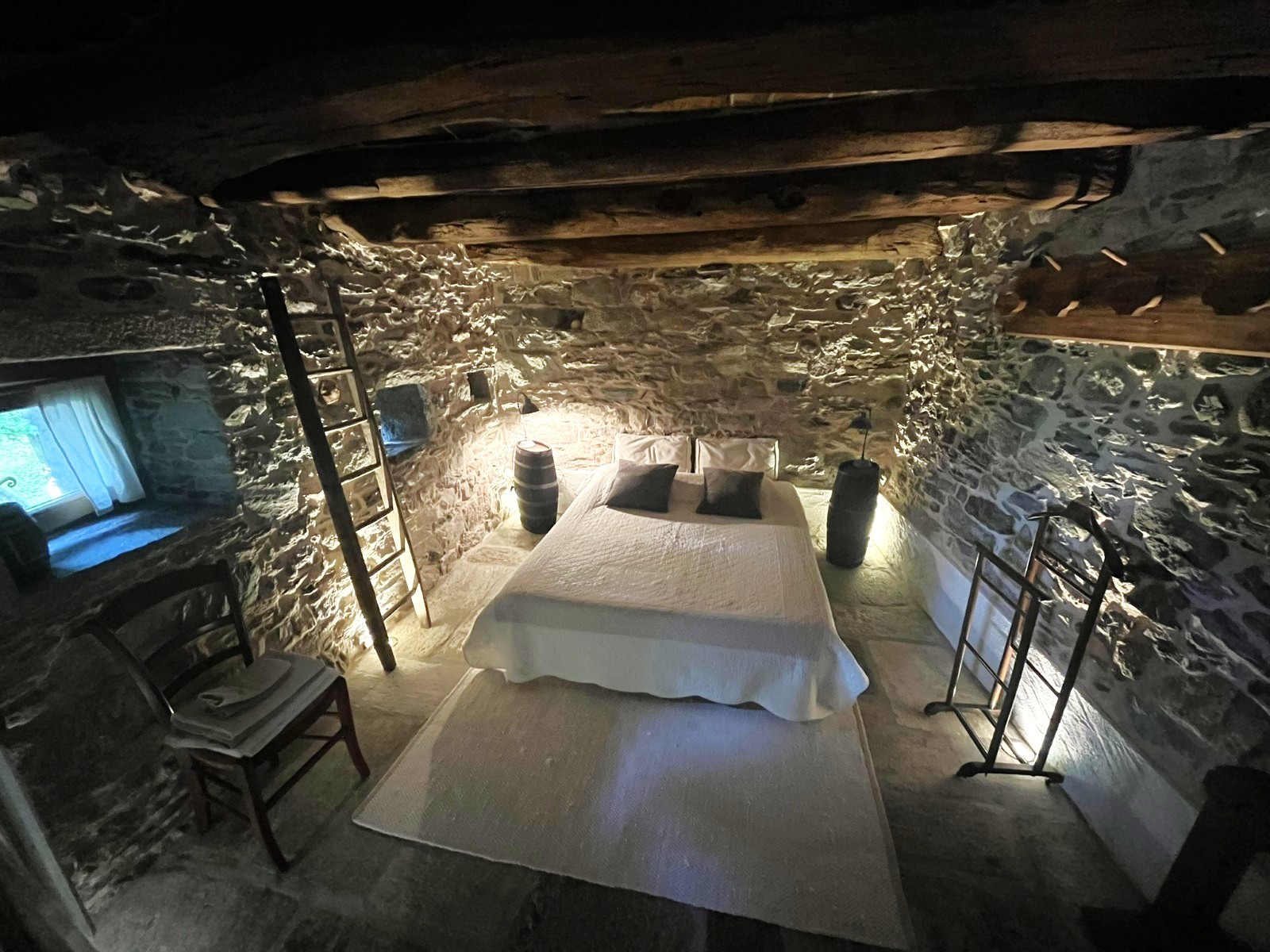 • Zależny budynek: Dwie jednostki – parter: studio z łazienką i naturalną grotą; piętro: loft z kamiennymi ścianami, częścią dzienną z kuchnią, sypialnią, łazienką, antresolą i panoramicznym tarasem z widokiem na jezioro.