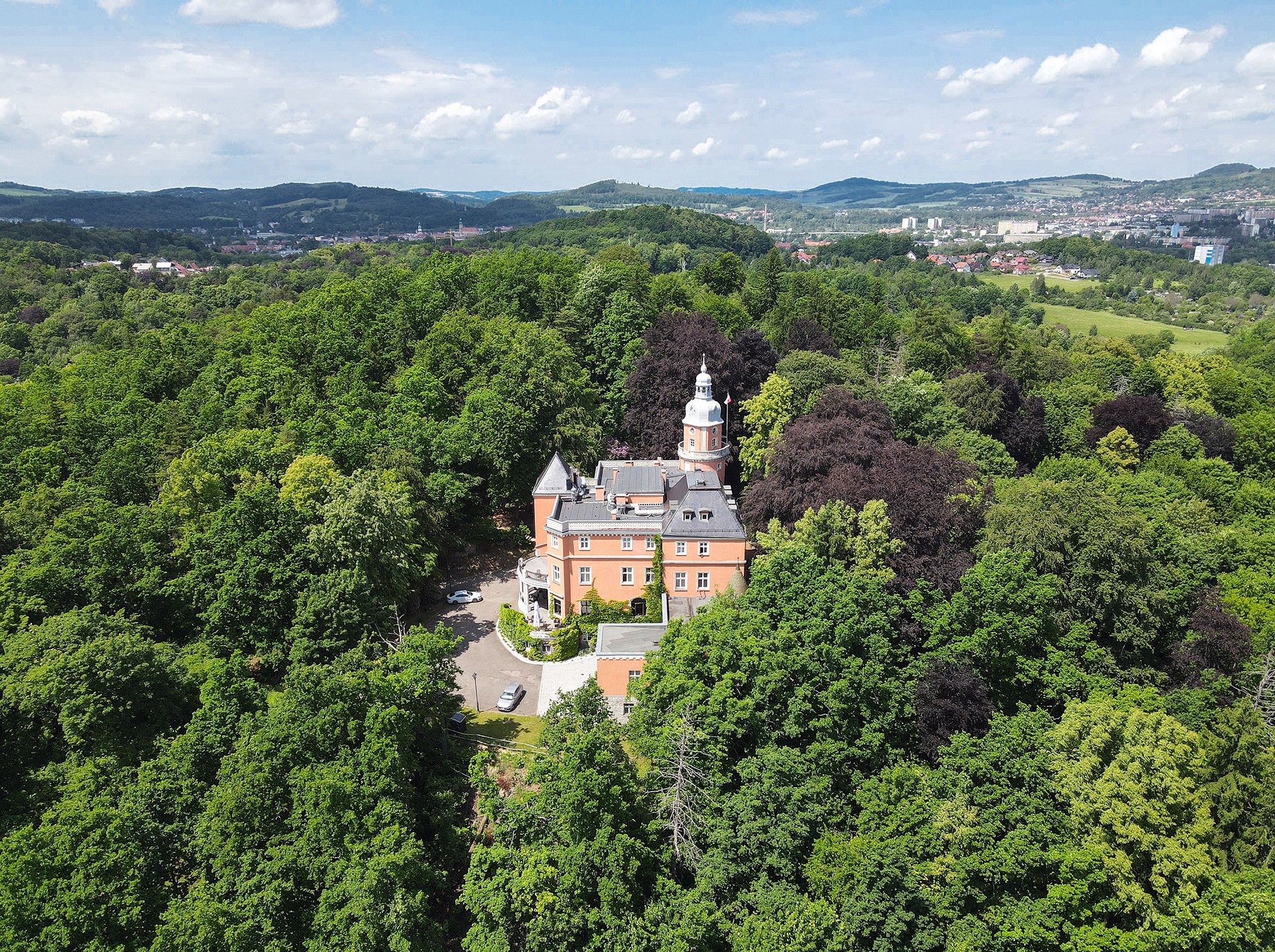Park jest położony u podnóża wzgórza, na szczycie którego góruje pałac – strażnik otoczenia. Górski klimat i aura tego miejsca gwarantują idealny wypoczynek – zarówno aktywny, jak i bierny. Liczne tarasy, ścieżki piesze i rowerowe, bliskość ośrodków narciarskich oraz malownicze widoki na pasma górskie to dodatkowe zalety.